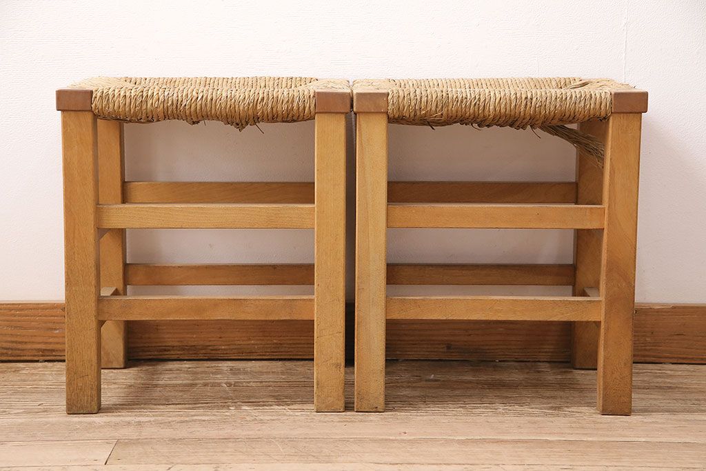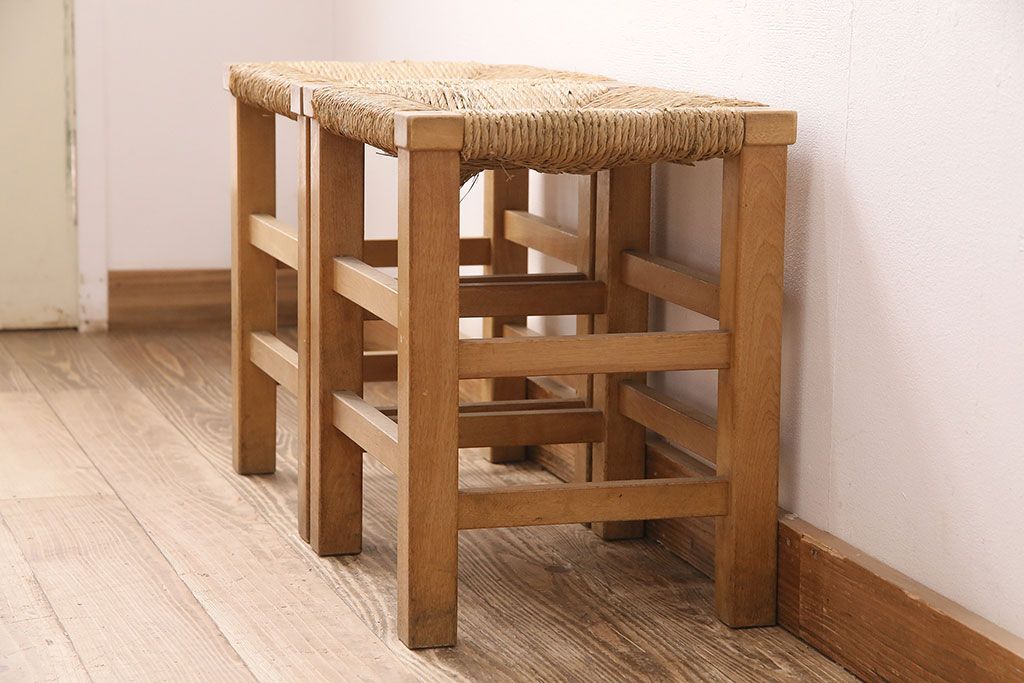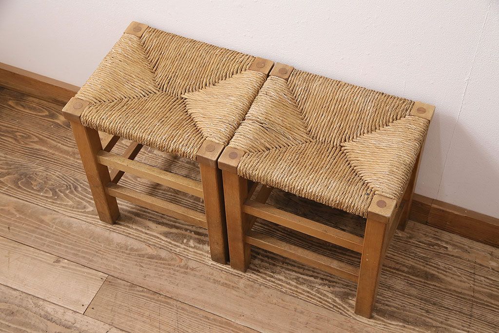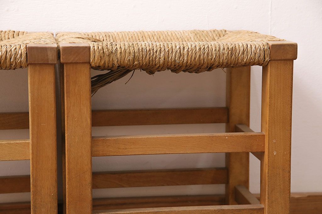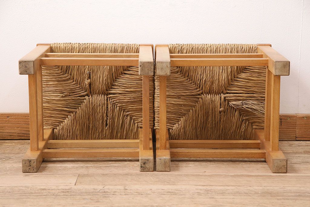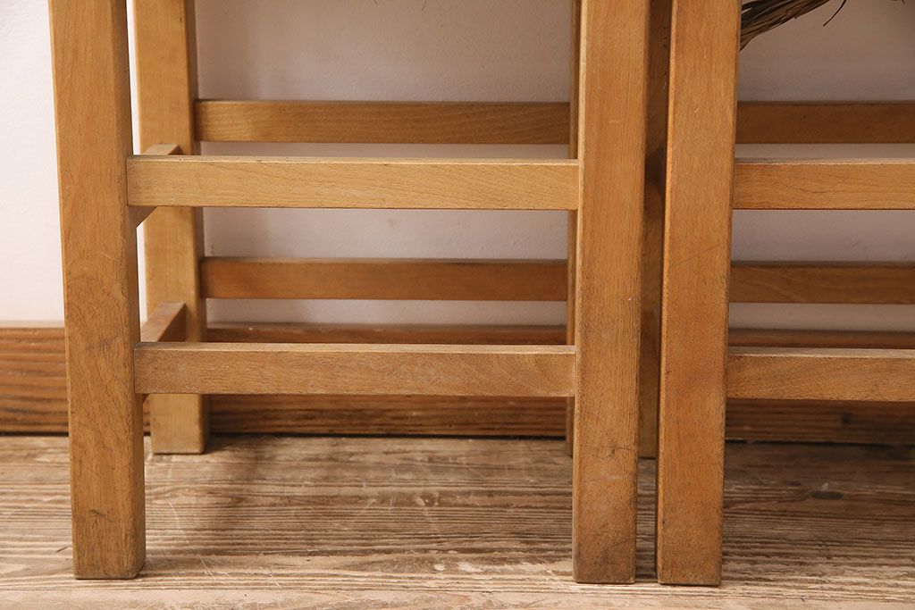 民芸家具 > 【簡易リペア限定品】ヴィンテージ 松本民芸家具 初期モデル ラッシ座面がおしゃれ!素朴な木肌が味わい深いスツール2脚セット(チェア、椅子、イス、ビンテージ、バラ売り可能)(R-048694)