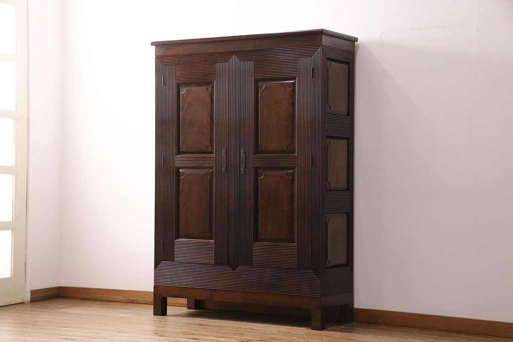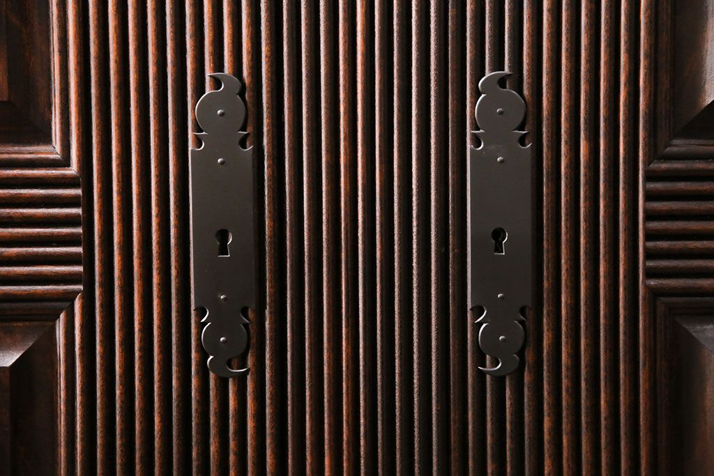 民芸家具 > 中古 極美品 松本民芸家具 直線的なデザインが美しく高級感を漂わせるリード型カップボード(定価96万円)(収納棚、戸棚、キャビネット)(R-049818)