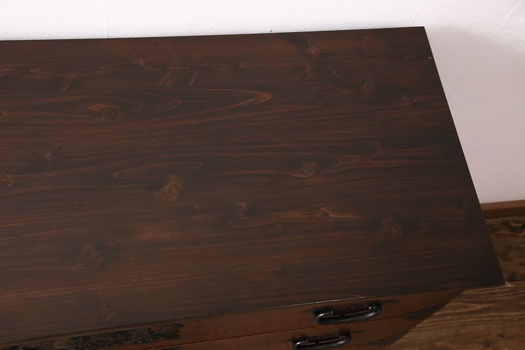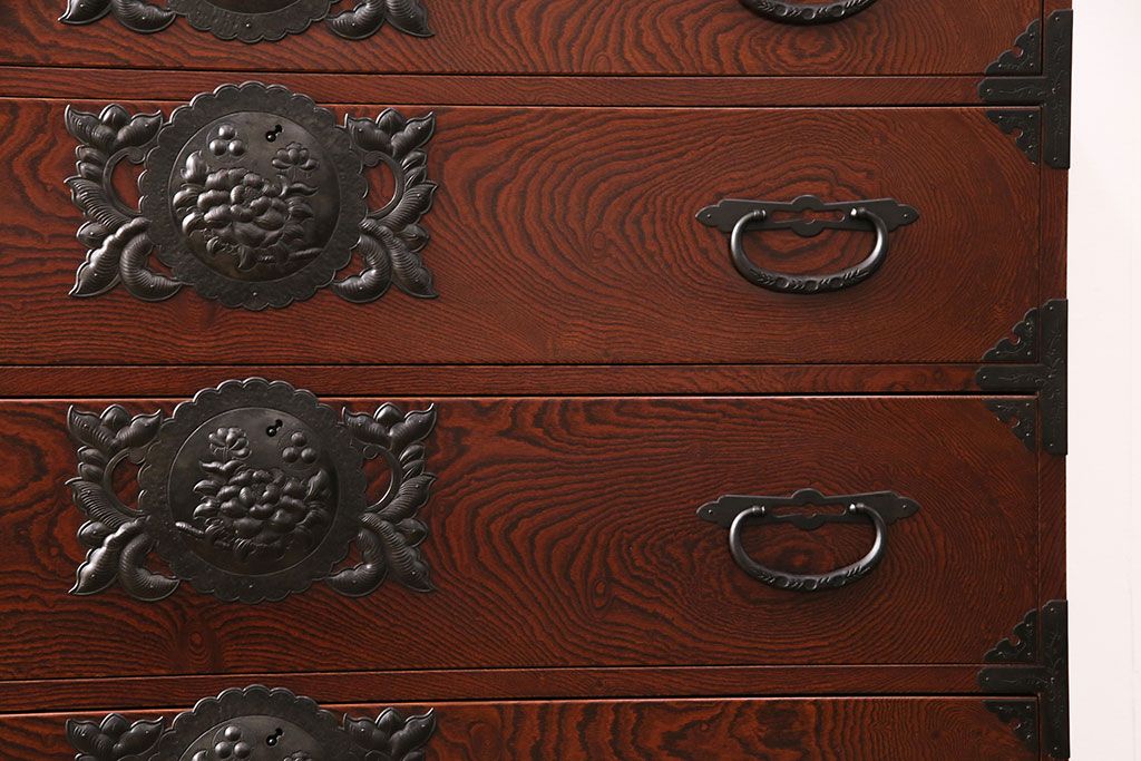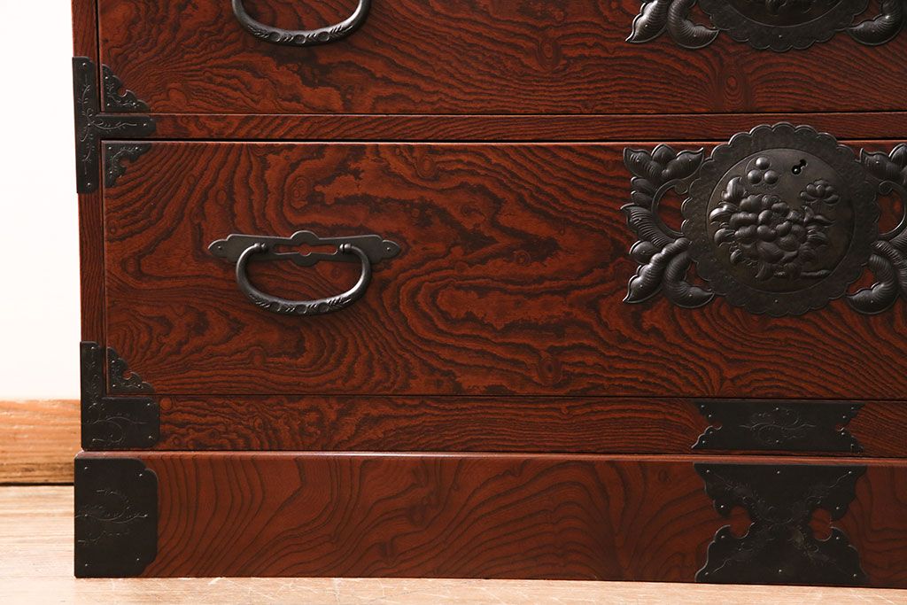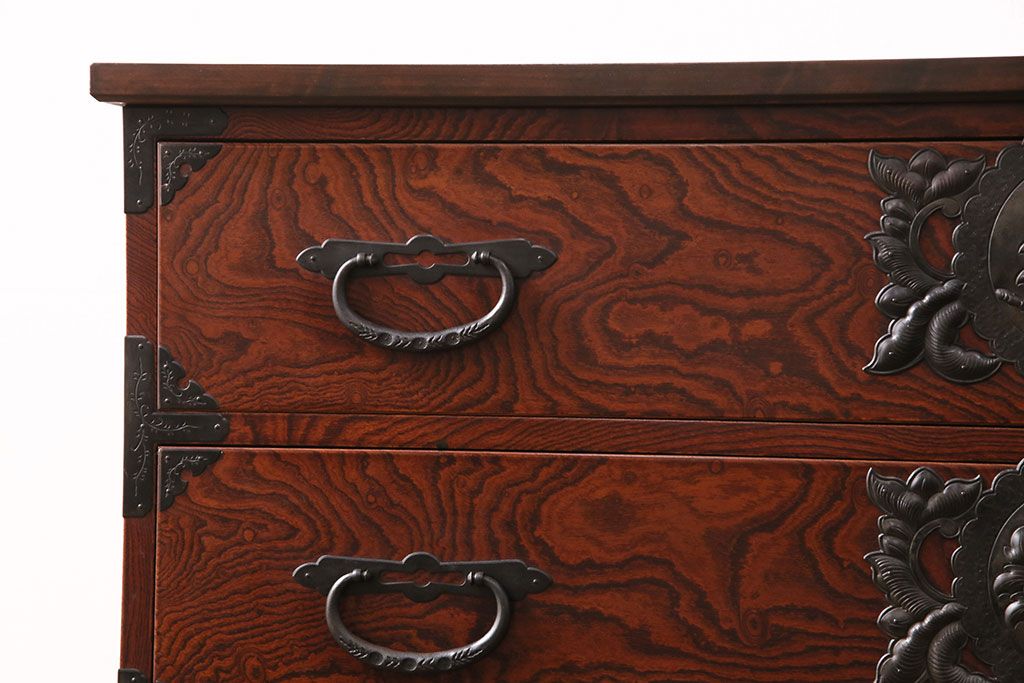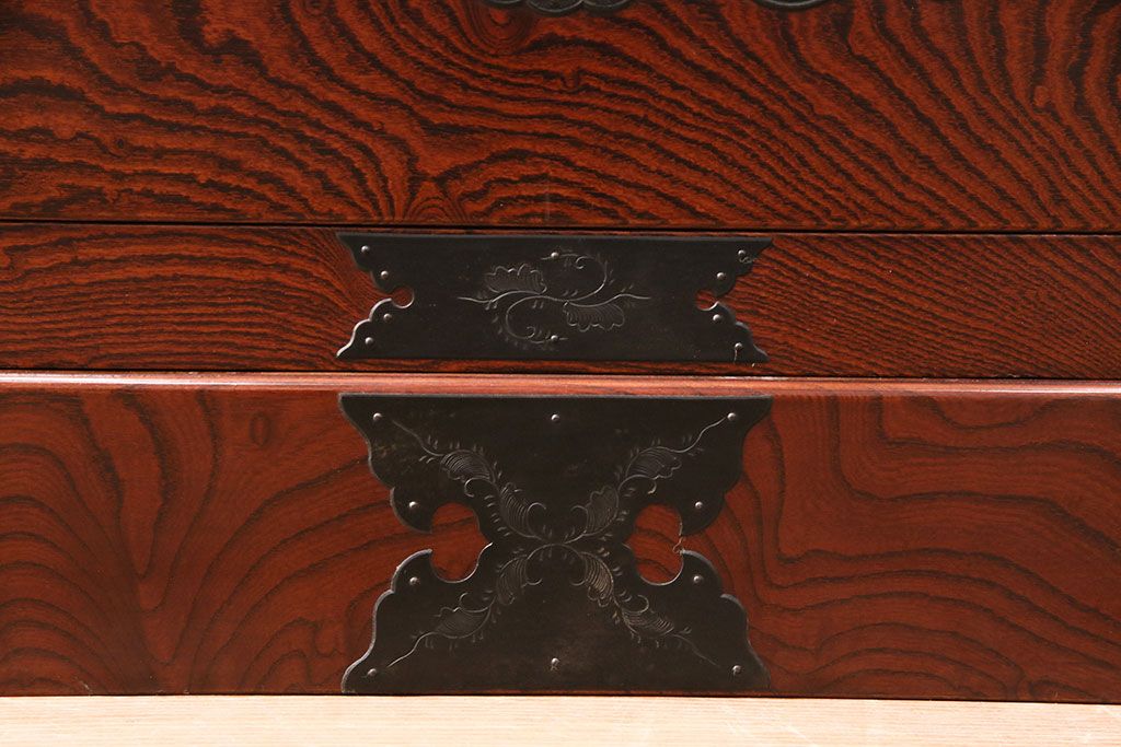 和箪笥 > 中古 美品 天板リメイク・ヒノキ材 躍動感ある木目が目を引く仙台箪笥(収納タンス、衣装箪笥和タンス、引き出し)(R-049780)