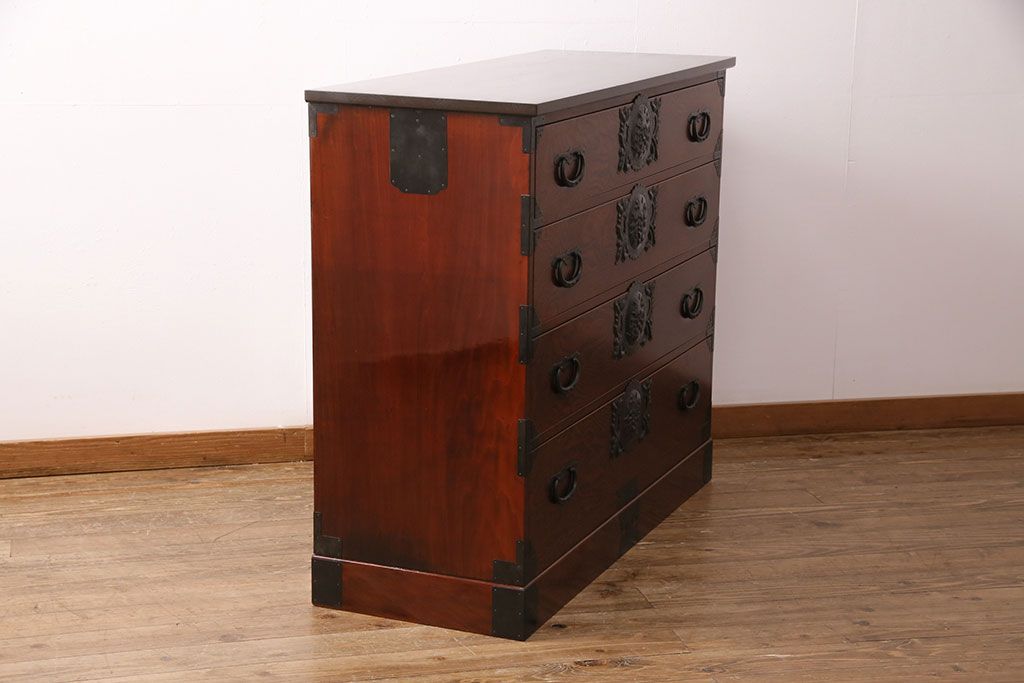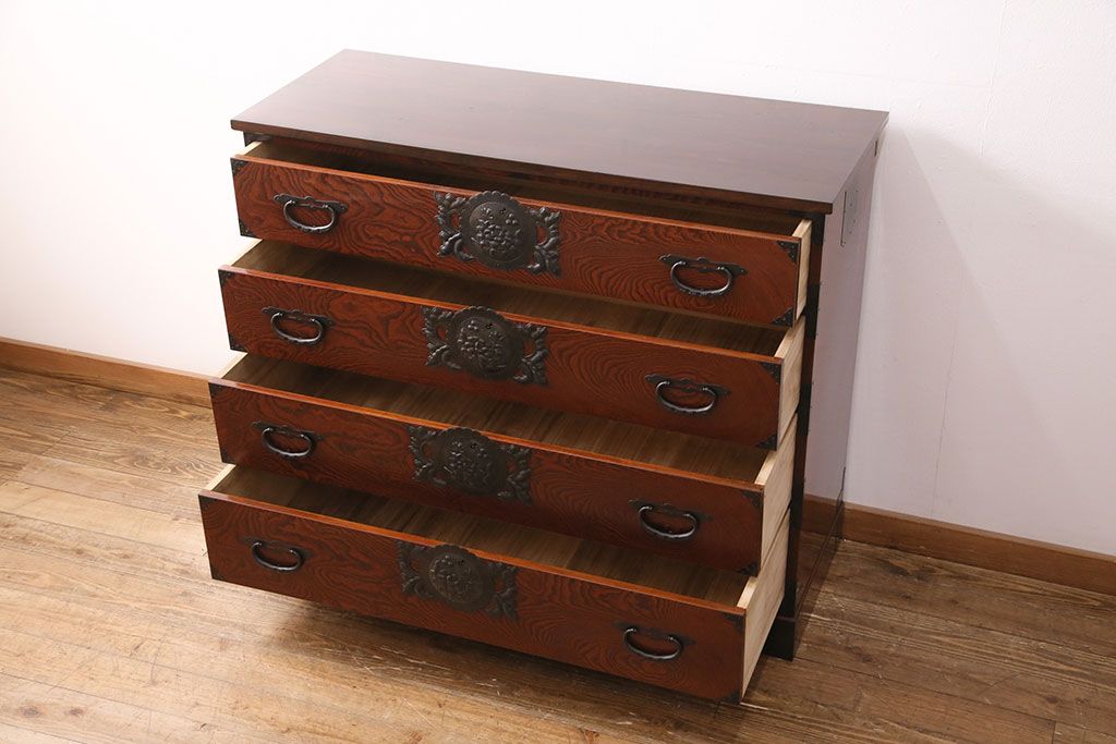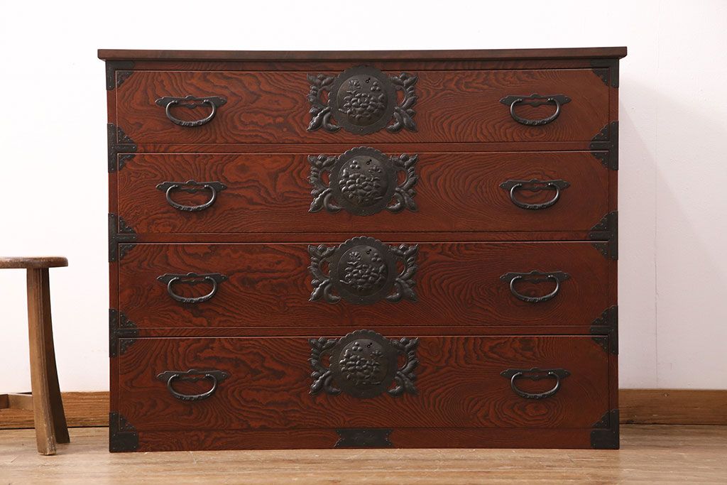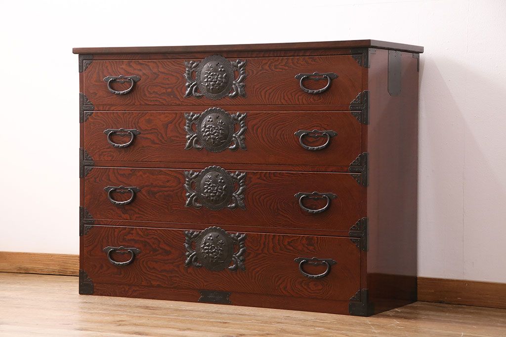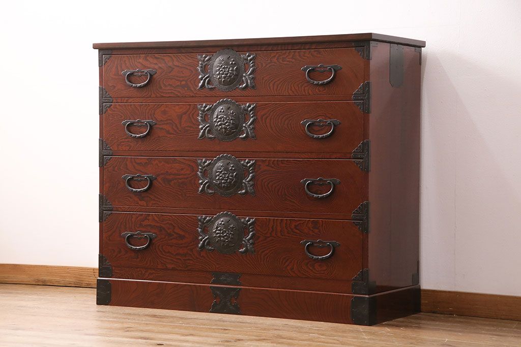 和箪笥 > 中古 美品 天板リメイク・ヒノキ材 躍動感ある木目が目を引く仙台箪笥(収納タンス、衣装箪笥和タンス、引き出し)(R-049780)