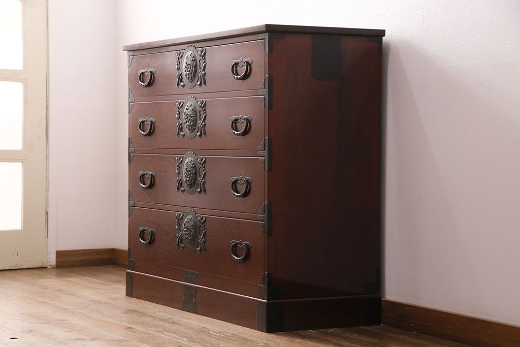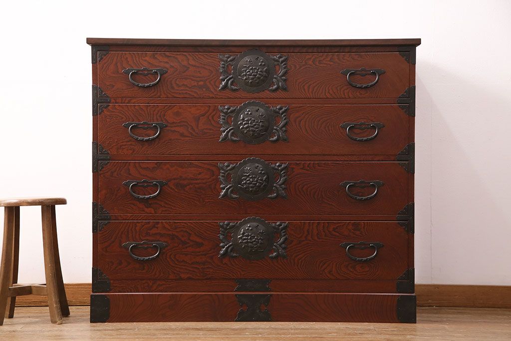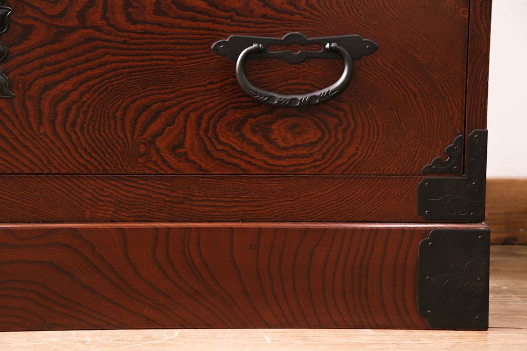 和箪笥> 衣装箪笥 > 中古 美品 天板リメイク・ヒノキ材 躍動感ある木目が目を引く仙台箪笥(収納タンス、衣装箪笥和タンス、引き出し)(R-049780)
