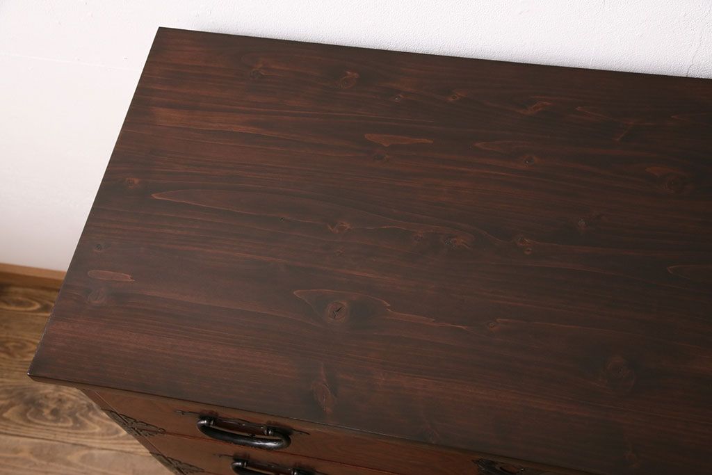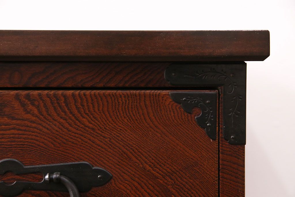民芸家具 > 中古 美品 天板リメイク・ヒノキ材 躍動感ある木目が目を引く仙台箪笥(収納タンス、衣装箪笥和タンス、引き出し)(R-049780)