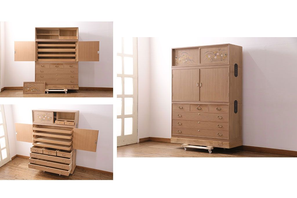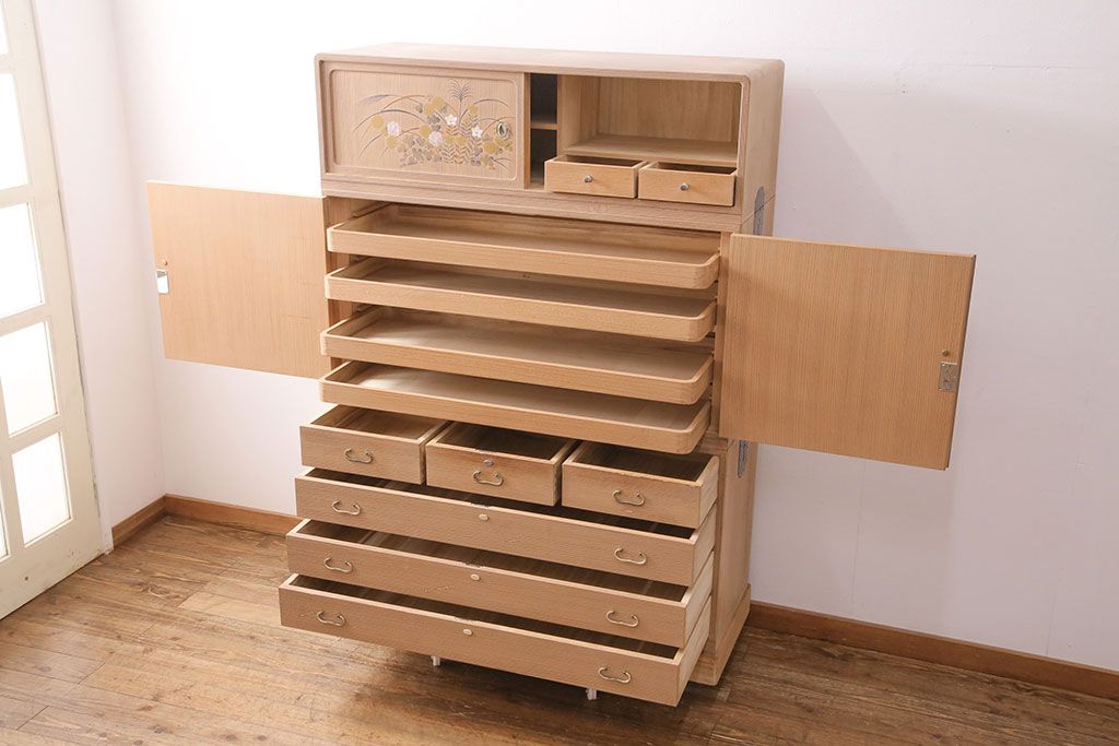 和箪笥 > 中古 国産 蒔絵・螺鈿入り 上質な和の空間を演出する高級総桐箪笥(並厚、着物箪笥、衣装箪笥、和タンス、桐たんす)(定価約98万円)(R-049595)