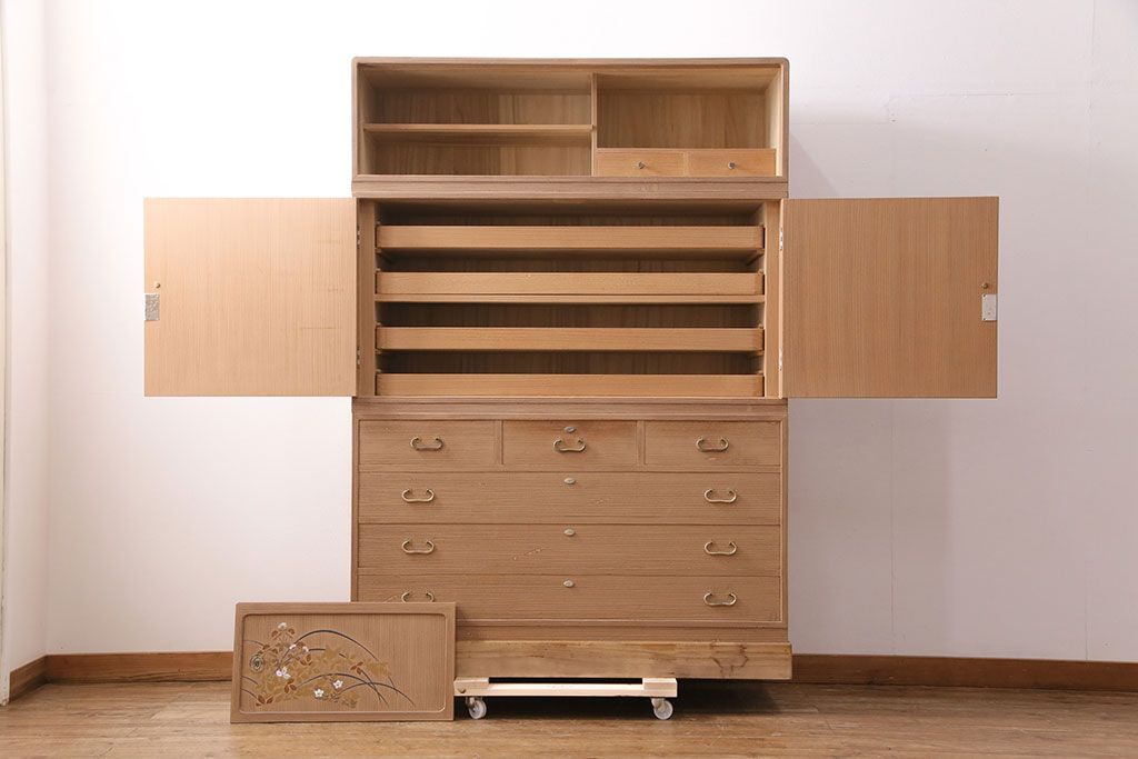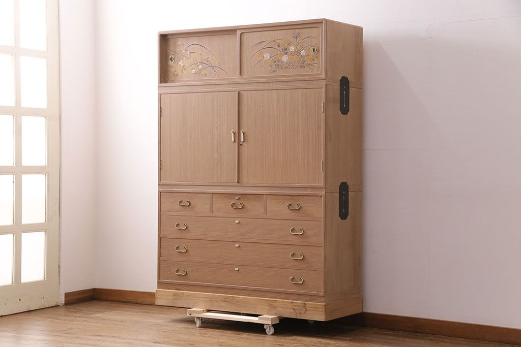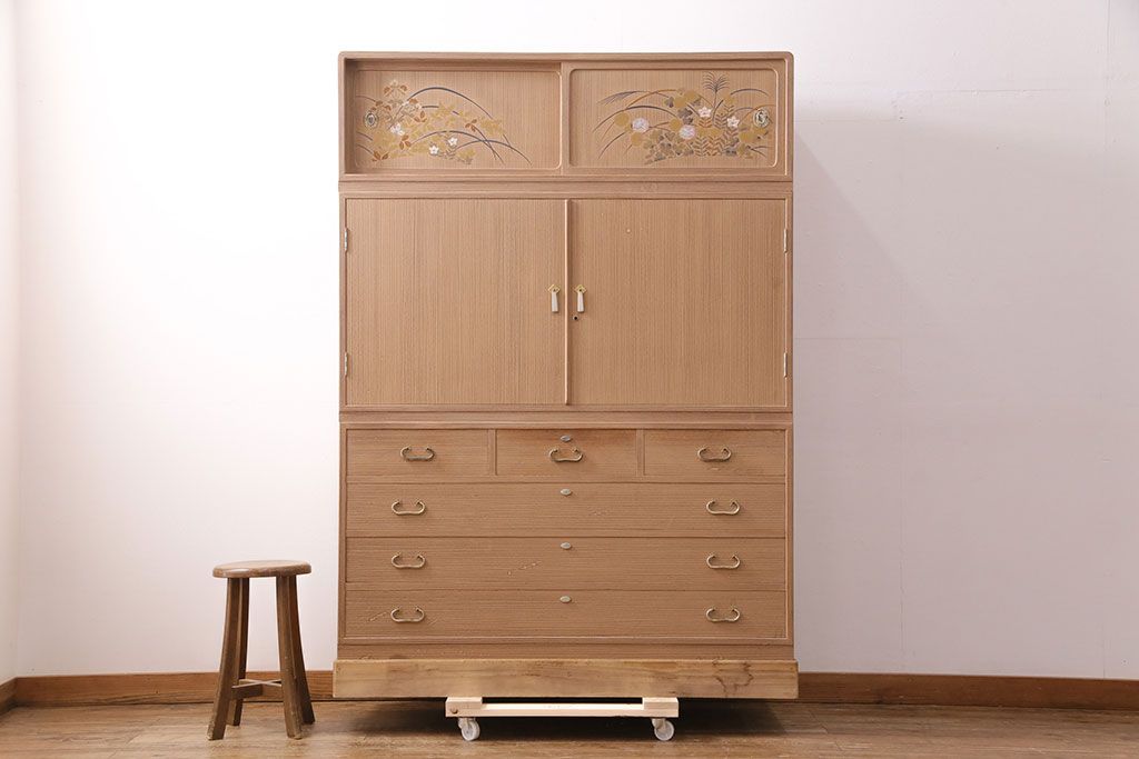和箪笥> 衣装箪笥 > 中古 国産 蒔絵・螺鈿入り 上質な和の空間を演出する高級総桐箪笥(並厚、着物箪笥、衣装箪笥、和タンス、桐たんす)(定価約98万円)(R-049595)