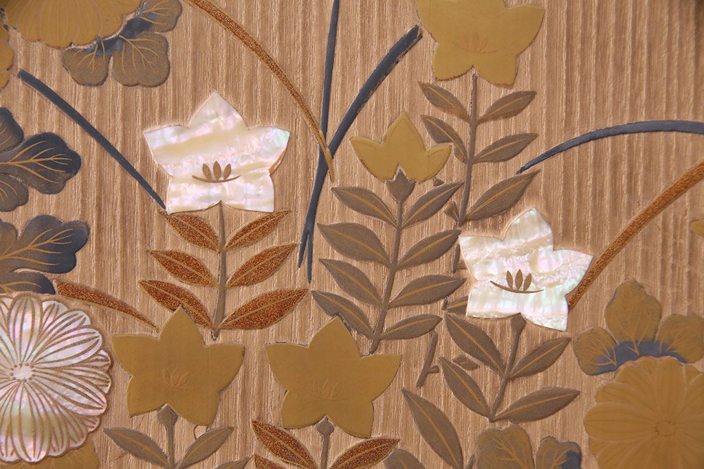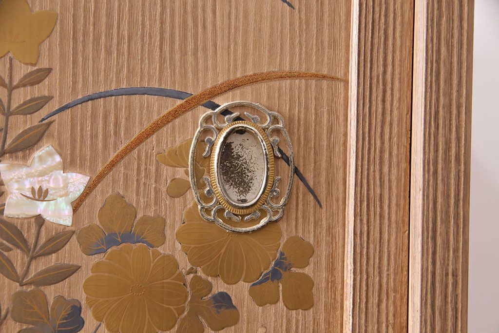引き戸には蒔絵や螺鈿の意匠が施され、