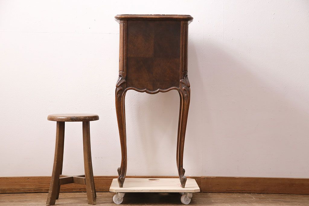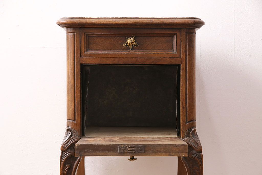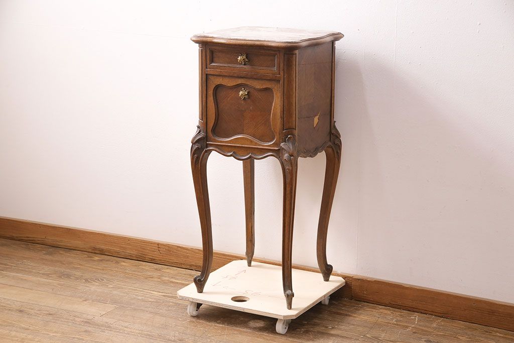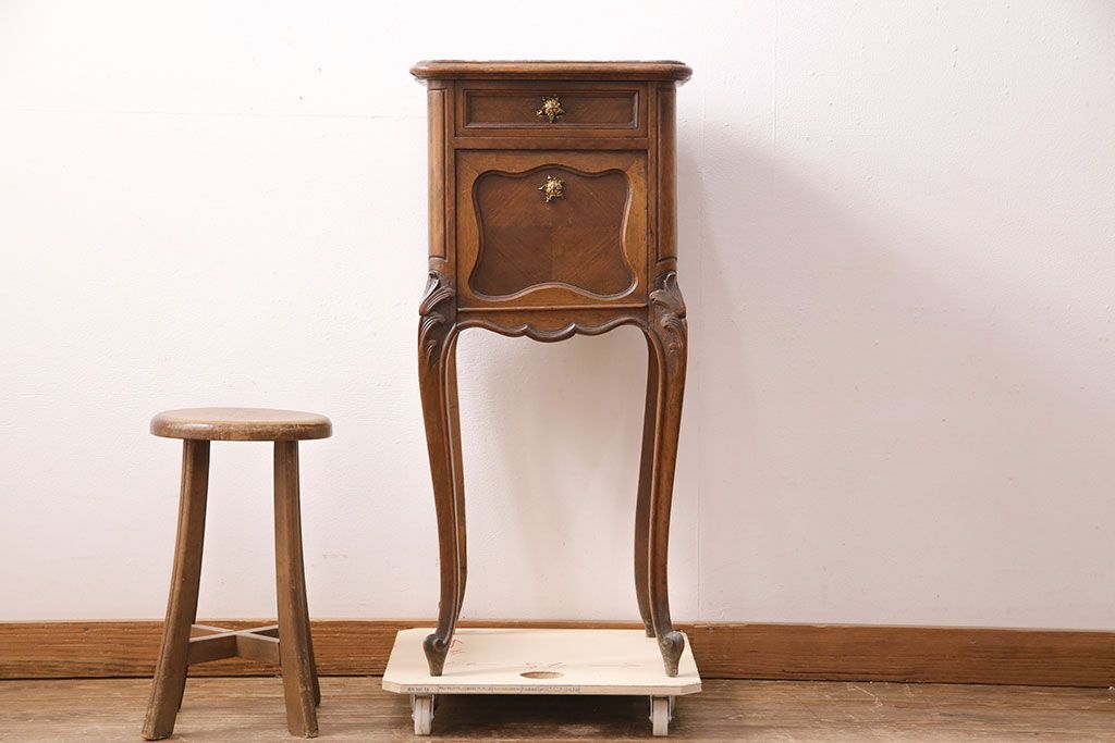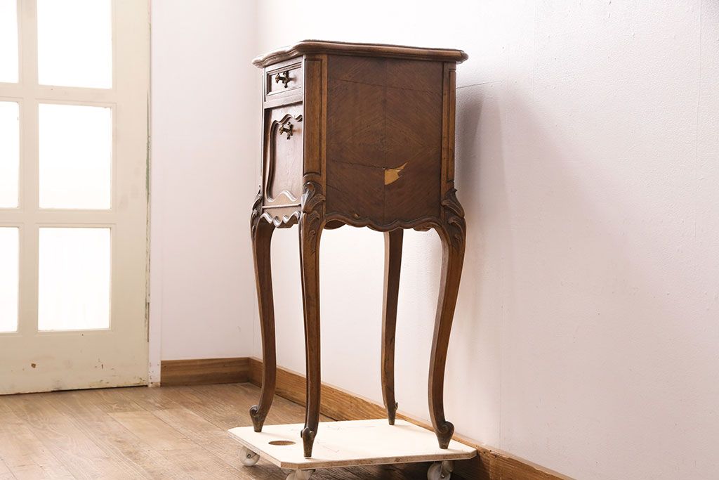 花台・飾り台 > フランスアンティーク ウォールナット材 サイドテーブル(ナイトテーブル、電話台、飾り台、花台)(R-049858)