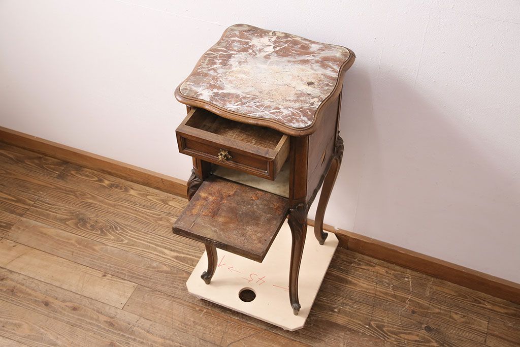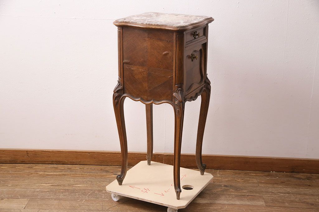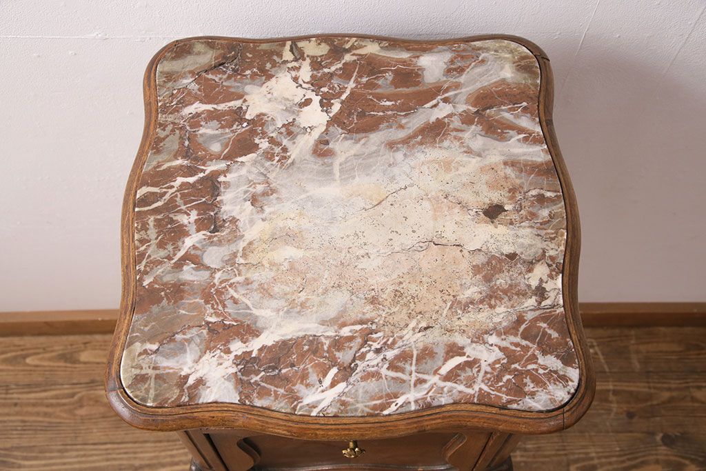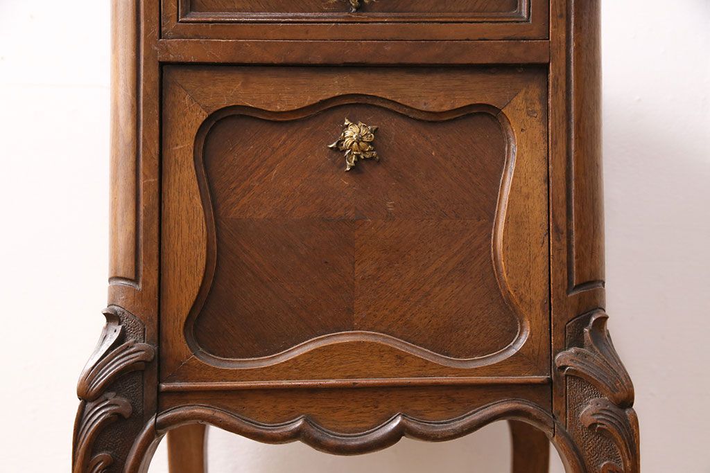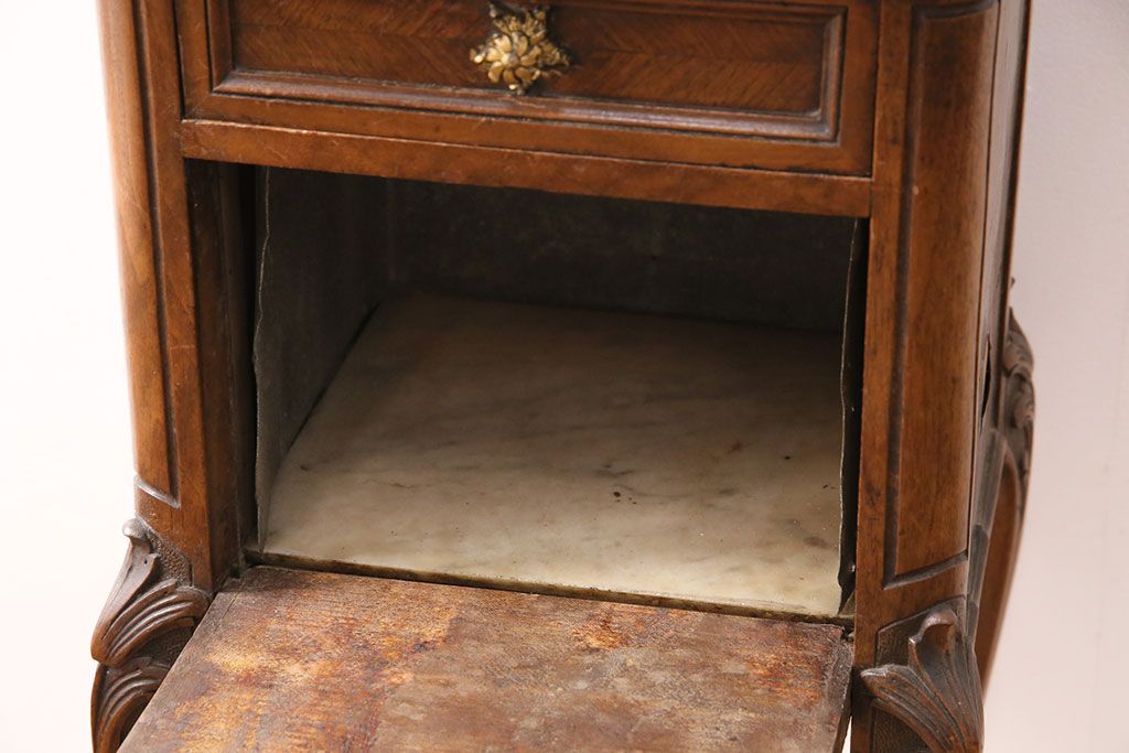 花台・飾り台 > フランスアンティーク ウォールナット材 サイドテーブル(ナイトテーブル、電話台、飾り台、花台)(R-049858)