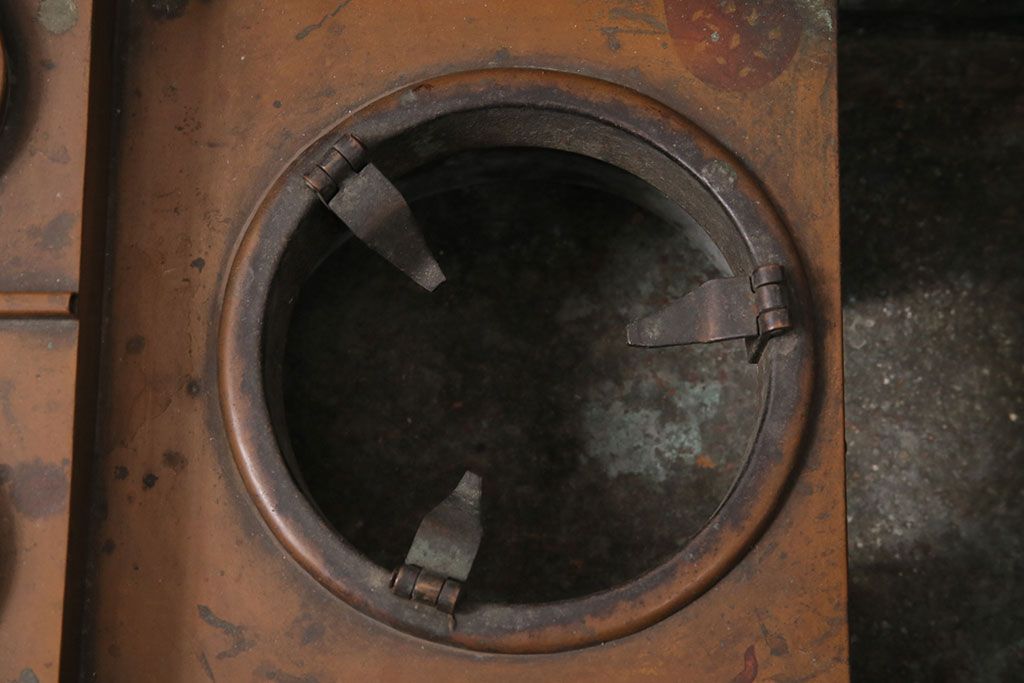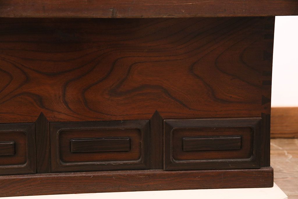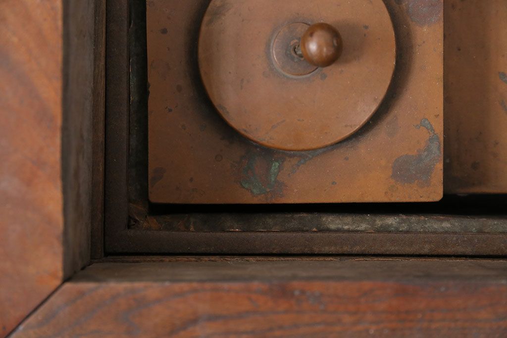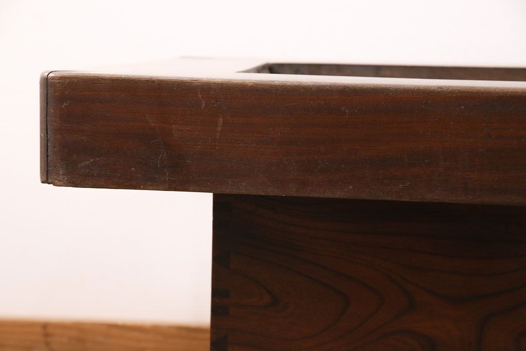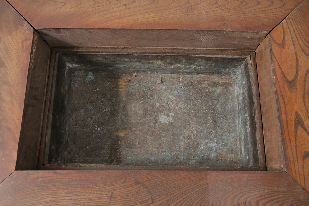 火鉢> 長火鉢 > 和製アンティーク 銅壺(銅壷)付き! 重厚な総ケヤキ材製の関西火鉢(木製火鉢、囲炉裏)(R-049802)