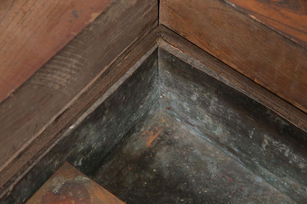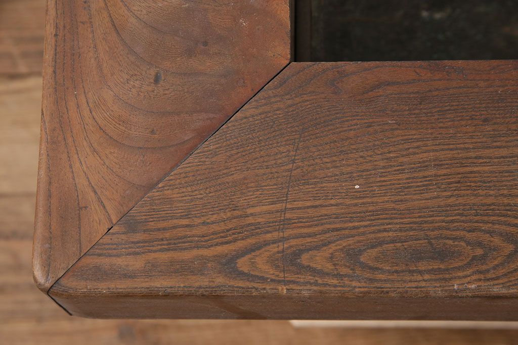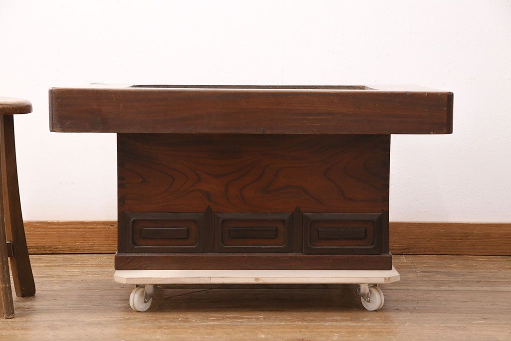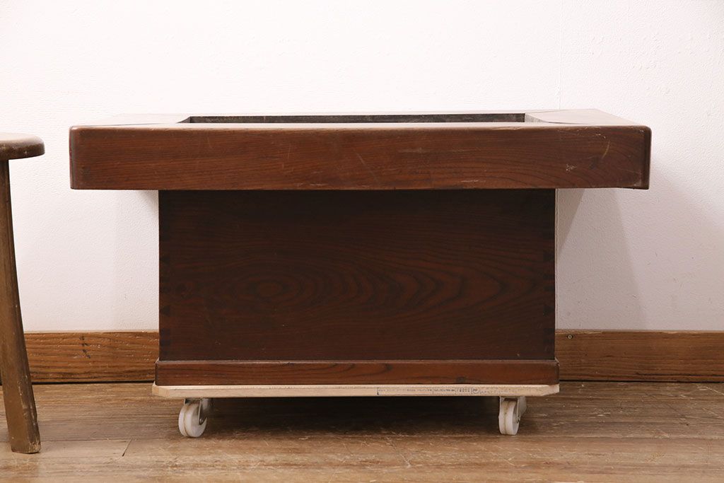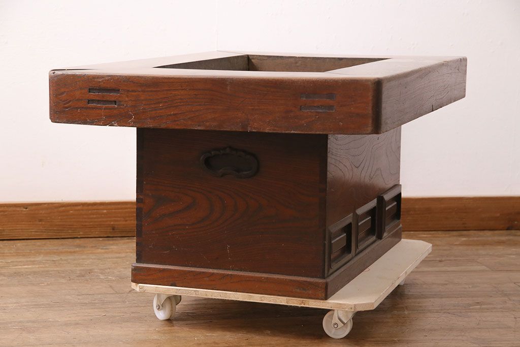 火鉢> 木製火鉢 > 和製アンティーク 銅壺(銅壷)付き! 重厚な総ケヤキ材製の関西火鉢(木製火鉢、囲炉裏)(R-049802)