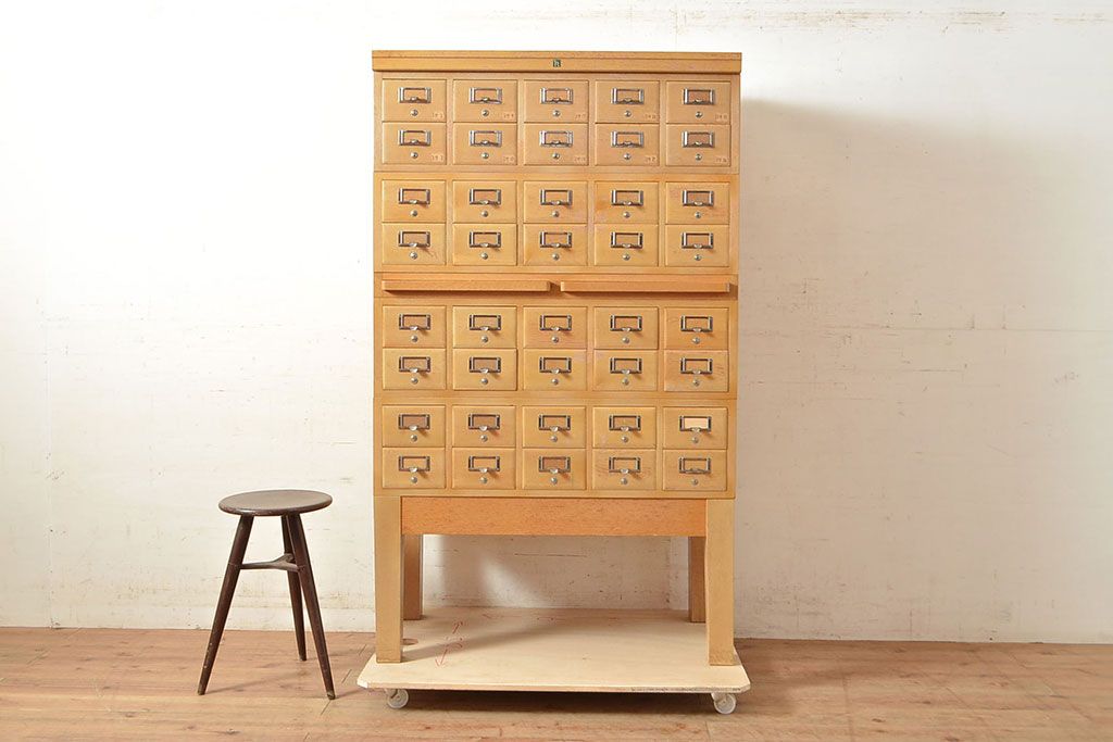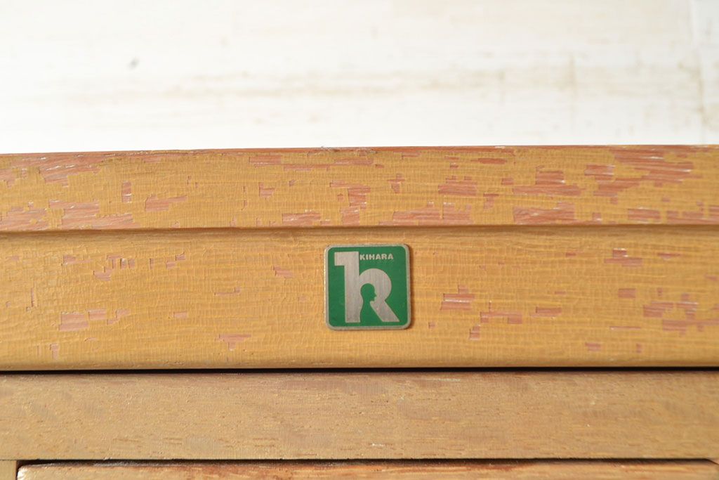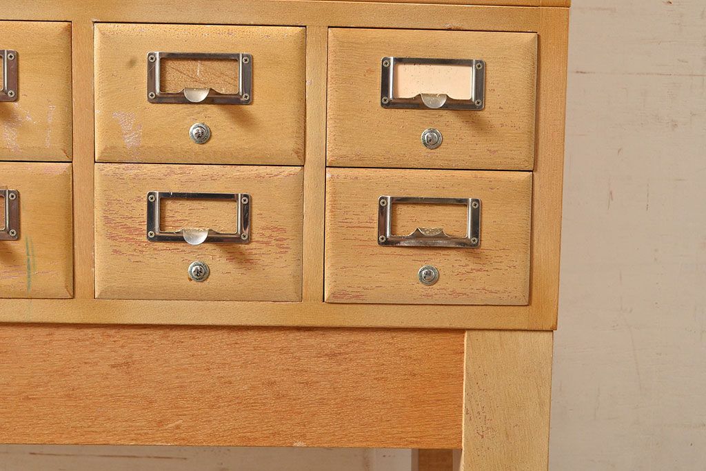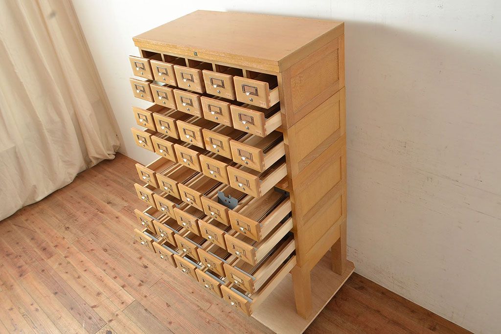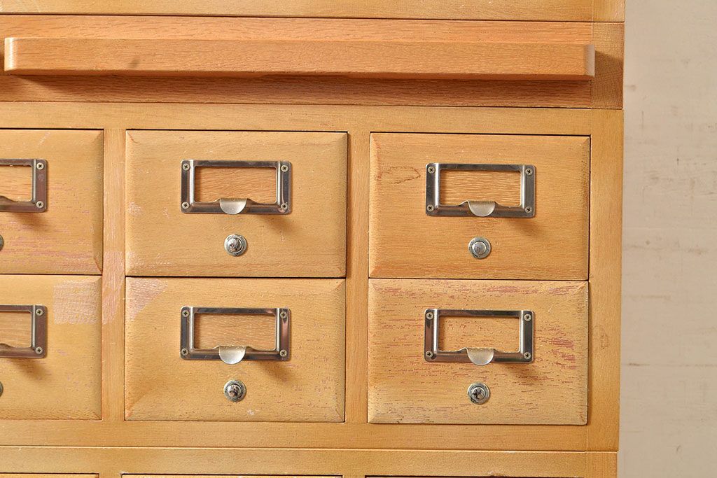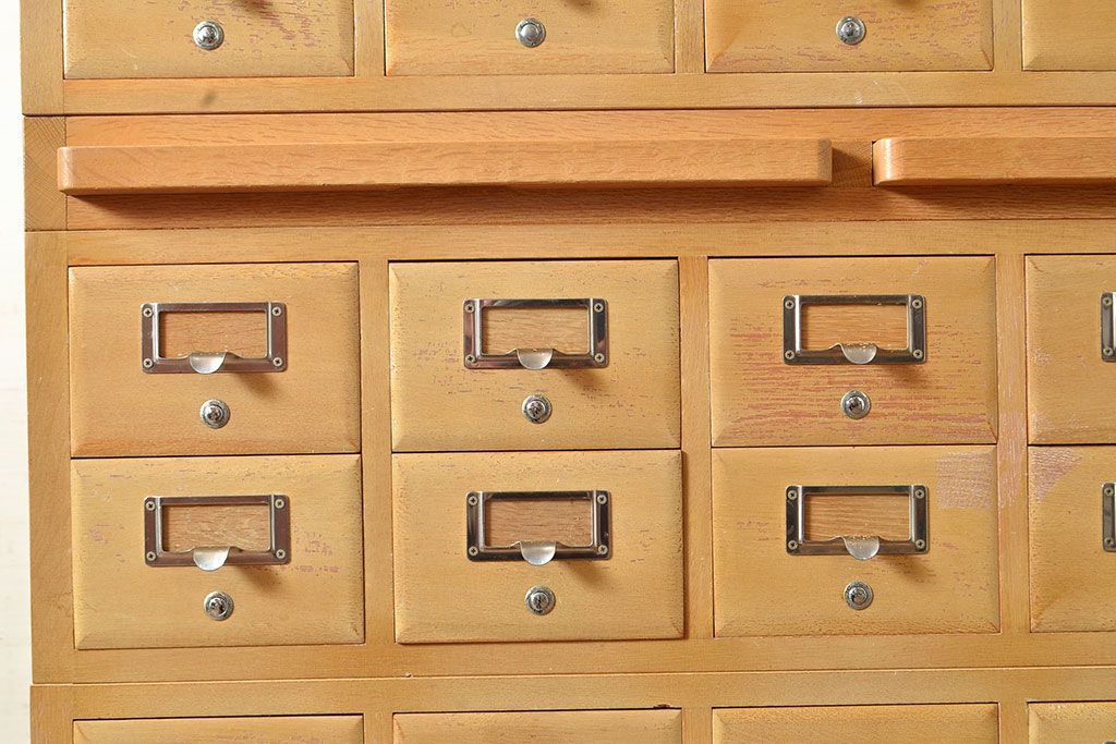 キャビネット・戸棚 > 【簡易リペア限定品】レトロ家具 昭和レトロ KIHARA ナラ材製 作業台が付いた、ネームプレート付きカードケース(引き出し、チェスト、図書館、図書室)(R-049497)