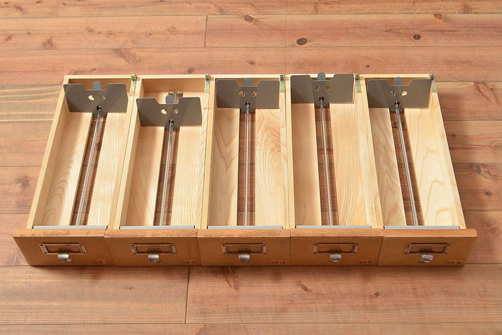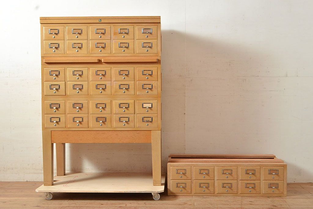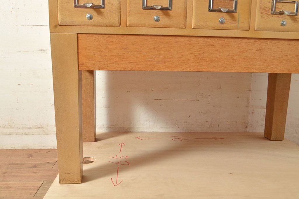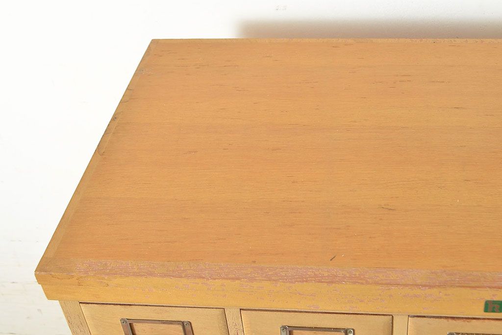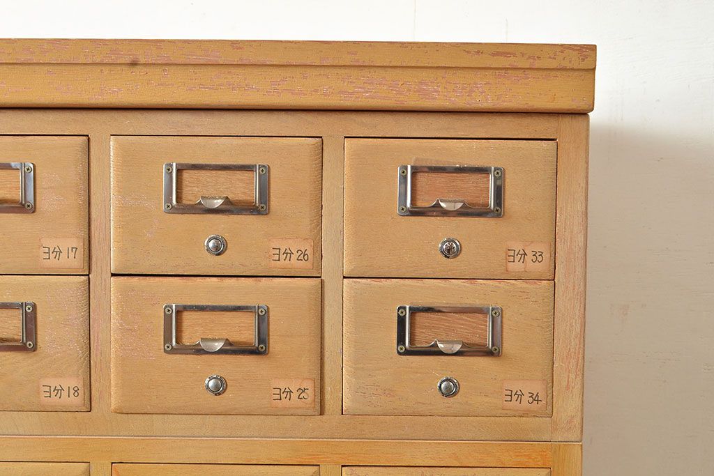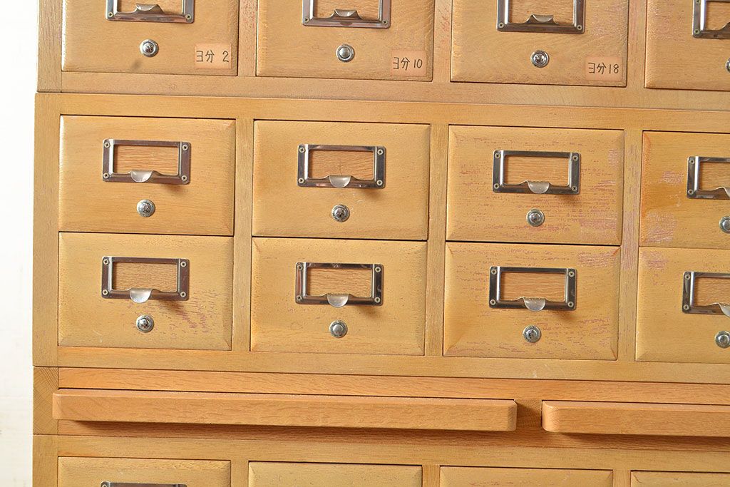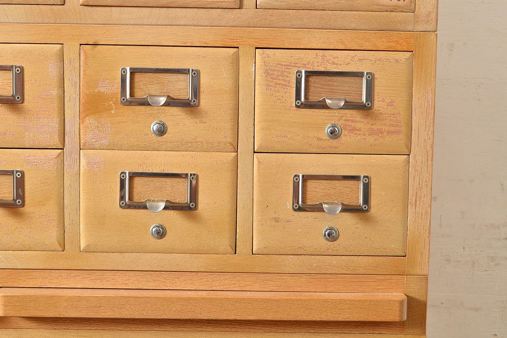 キャビネット・戸棚 > 【簡易リペア限定品】レトロ家具 昭和レトロ KIHARA ナラ材製 作業台が付いた、ネームプレート付きカードケース(引き出し、チェスト、図書館、図書室)(R-049497)