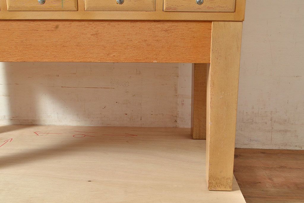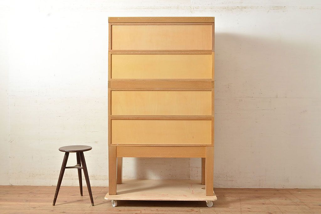 【簡易リペア限定品】レトロ家具 昭和レトロ KIHARA ナラ材製 作業台が付いた、ネームプレート付きカードケース(引き出し、チェスト、図書館、図書室)(R-049497)