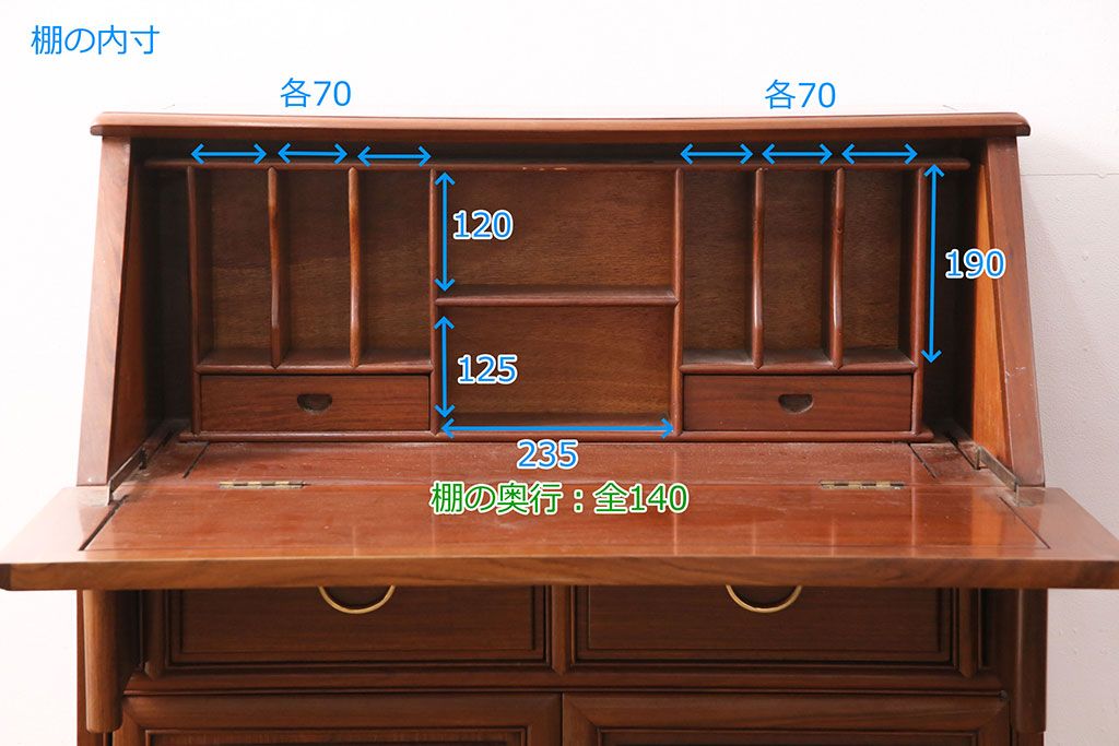 中古 高級唐木家具 ライティングビューロー(簿記机、デスク)(R-049753)です。