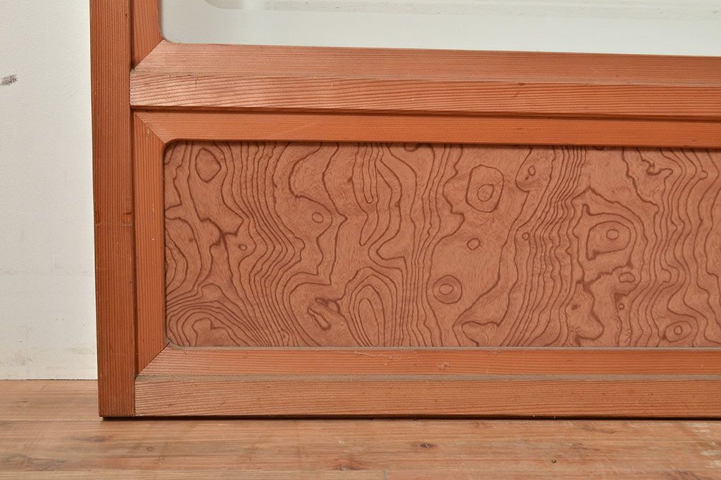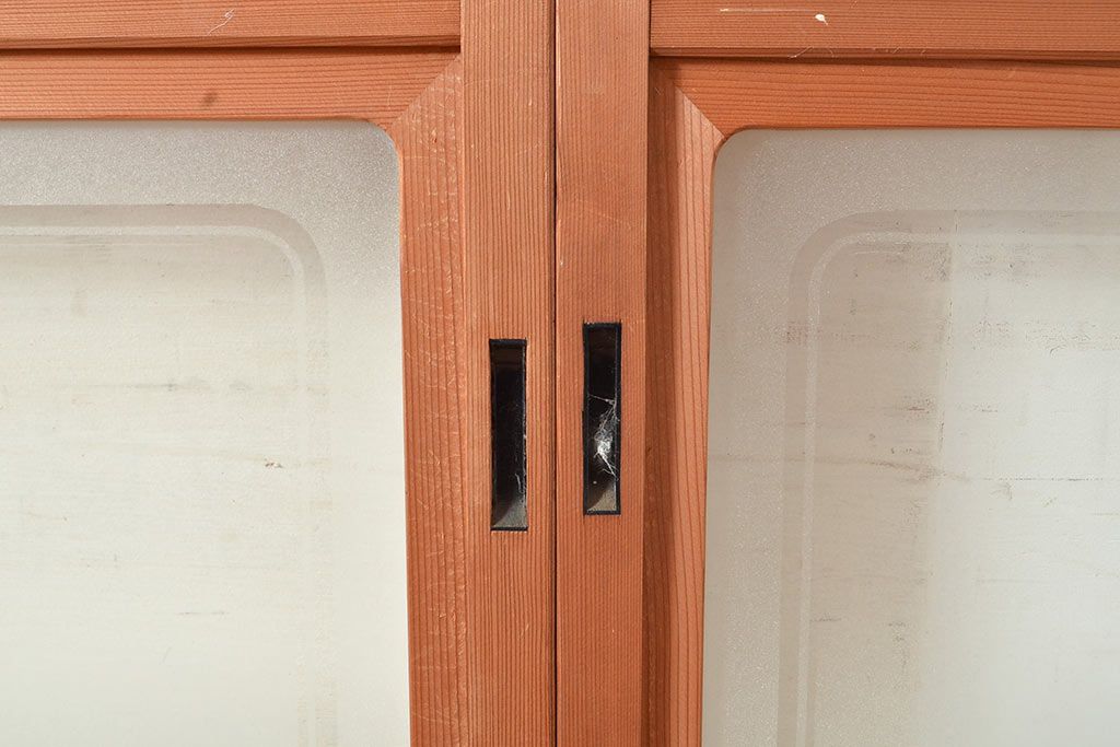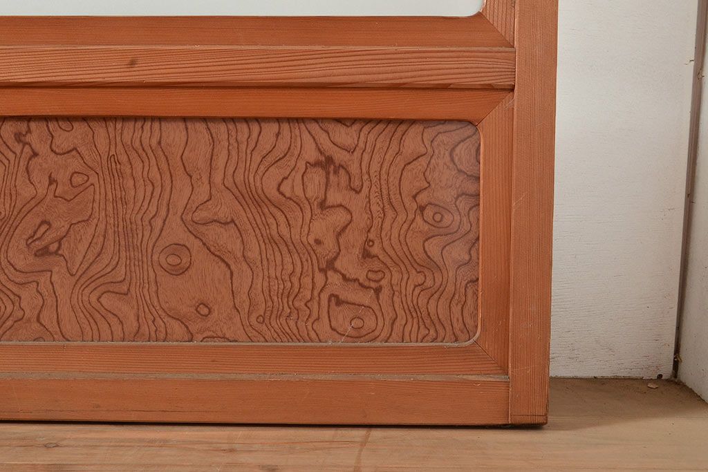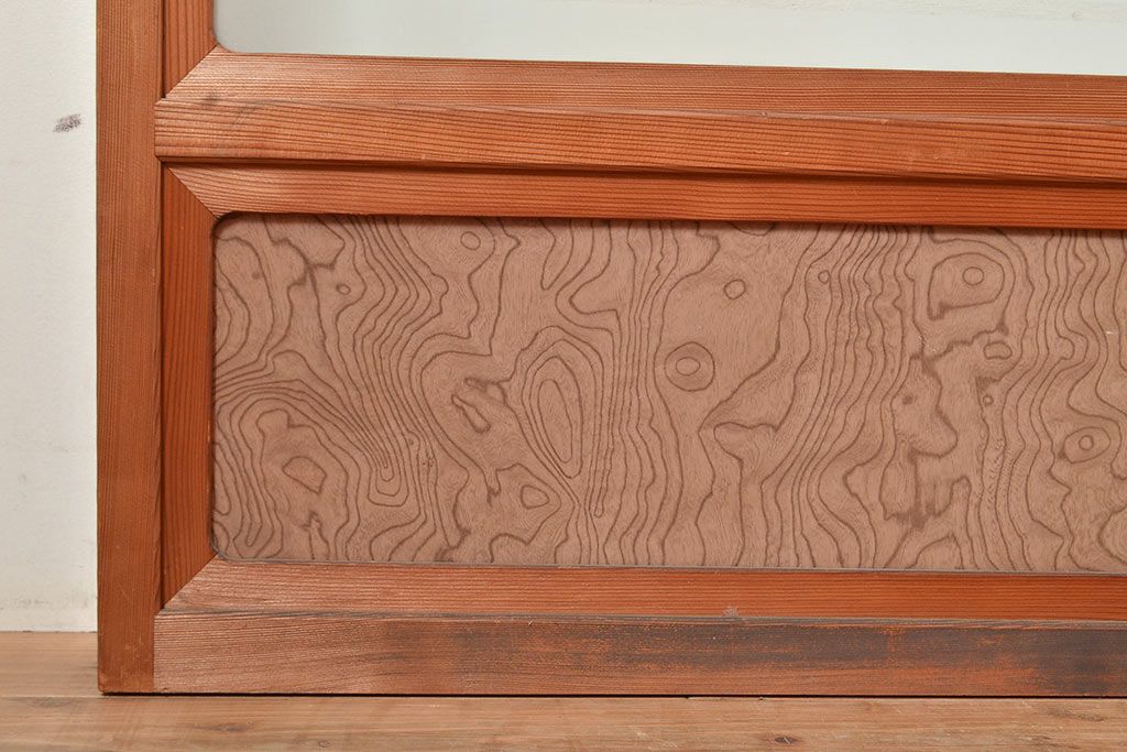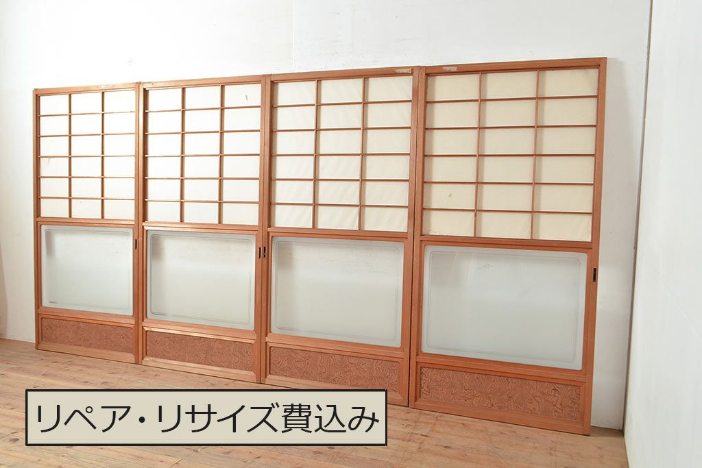 アンティーク建具 昭和中期 レトロガラス入り 腰板の木目がおしゃれなアクセントの障子戸4枚セット(建具、引き戸)(R-049481)