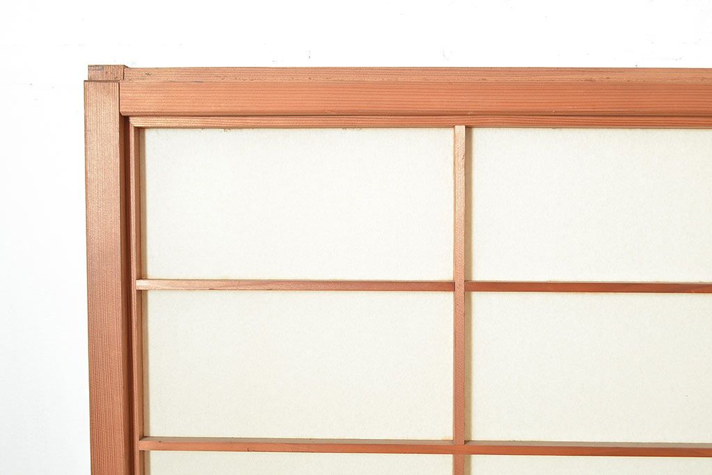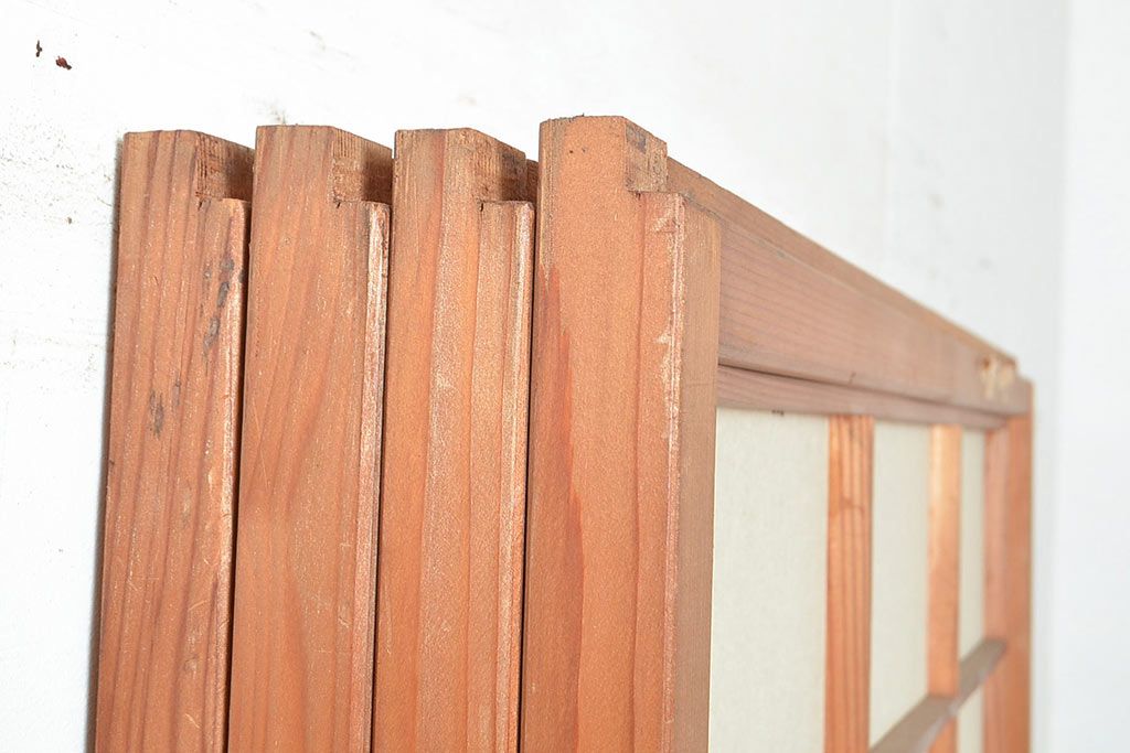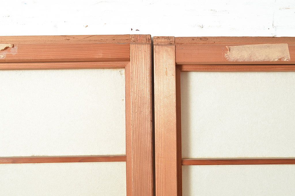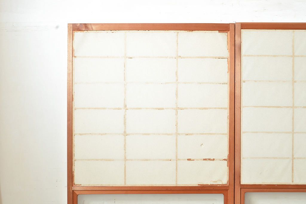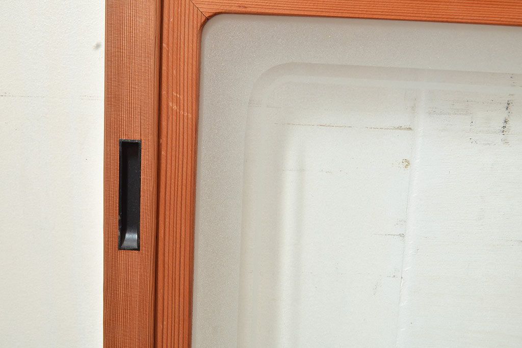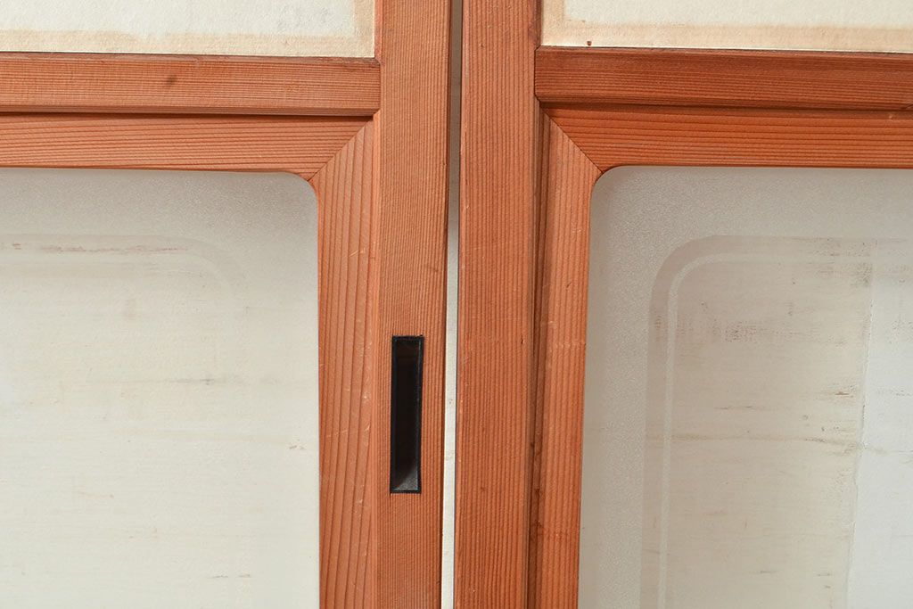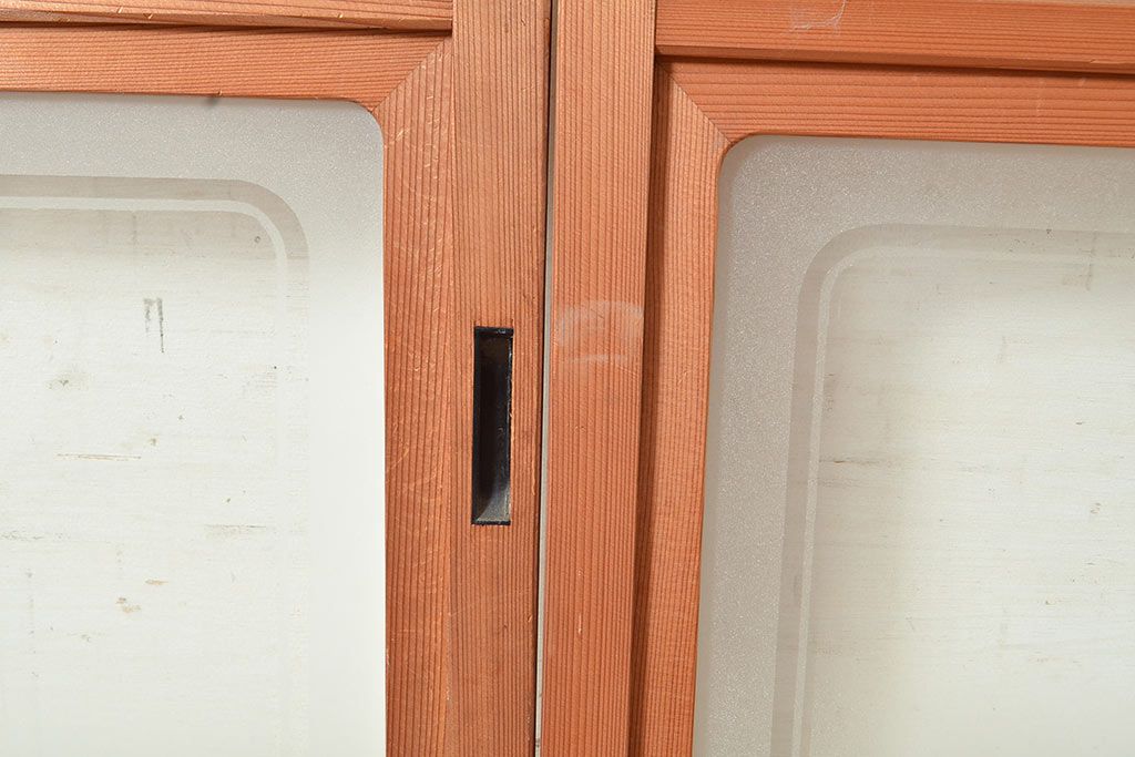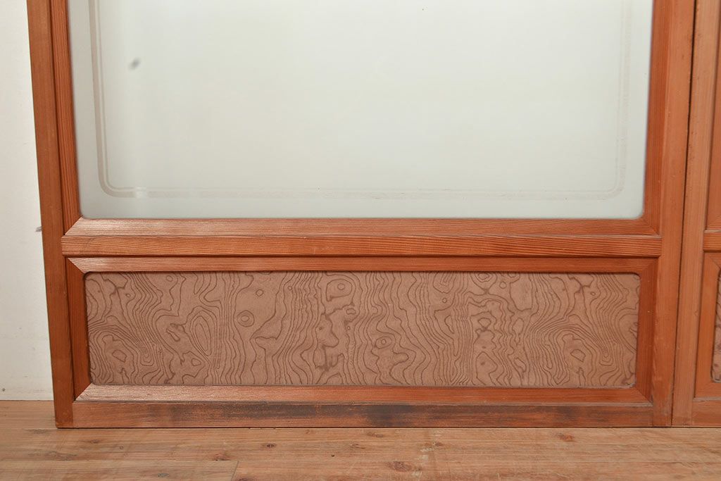ラフジュ工房> ドア・建具> ガラス戸 > アンティーク建具 昭和中期 レトロガラス入り 腰板の木目がおしゃれなアクセントの障子戸4枚セット(建具、引き戸)(R-049481)