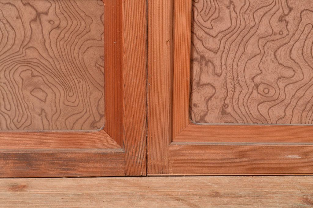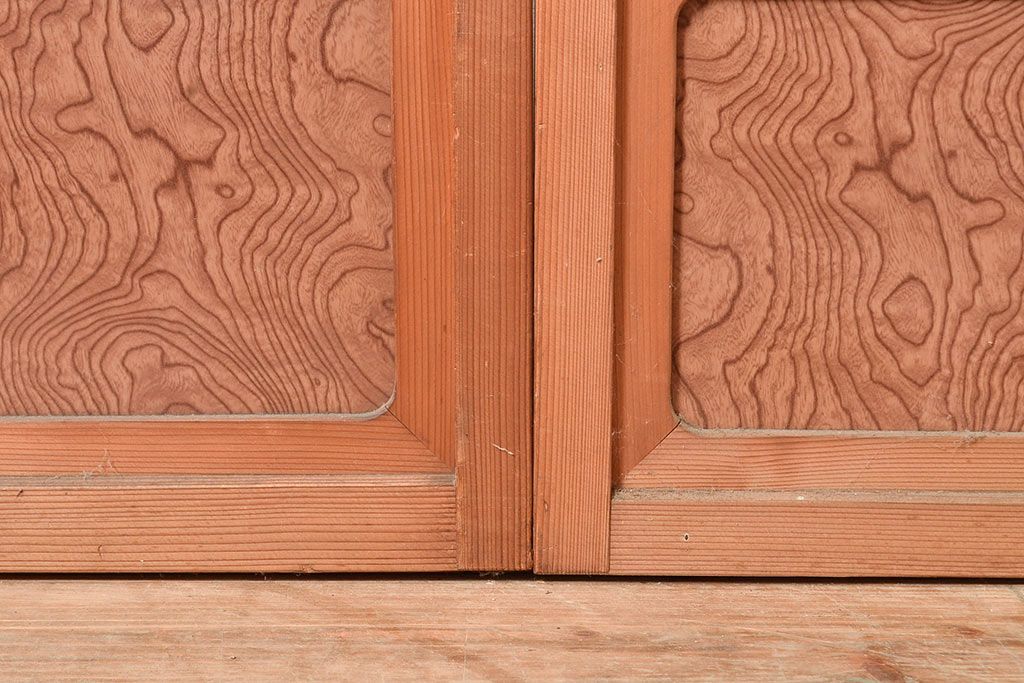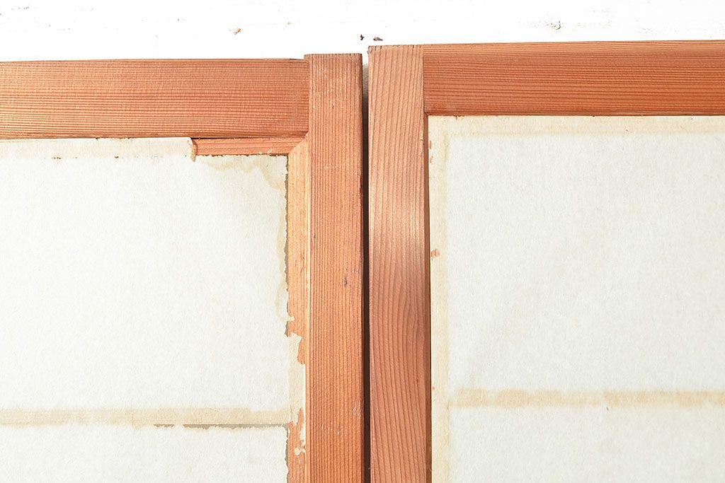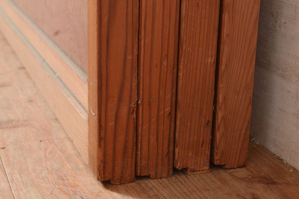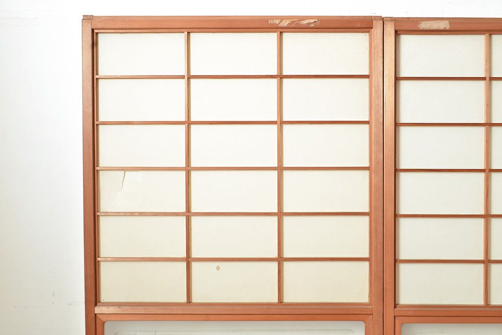 ラフジュ工房> ドア・建具> 引き戸 > アンティーク建具 昭和中期 レトロガラス入り 腰板の木目がおしゃれなアクセントの障子戸4枚セット(建具、引き戸)(R-049481)