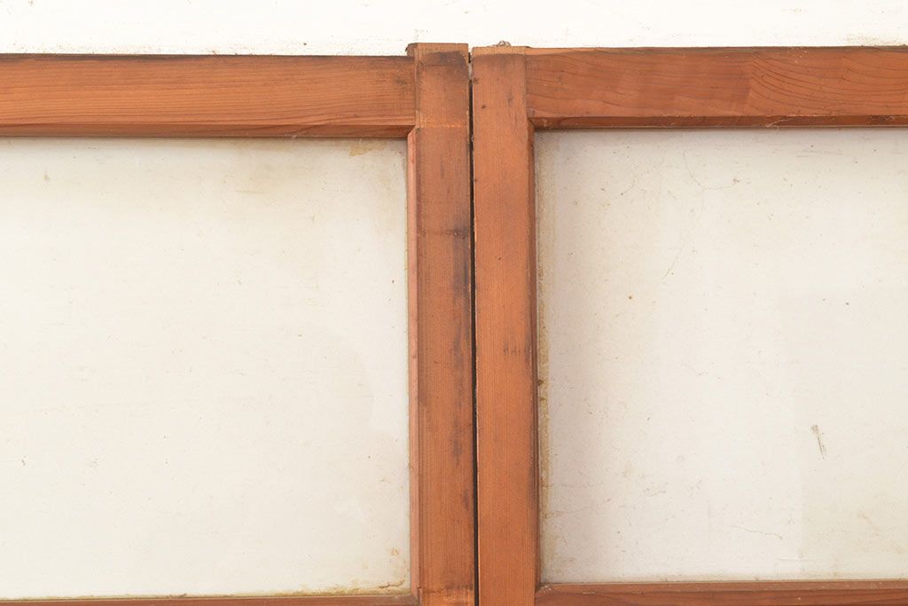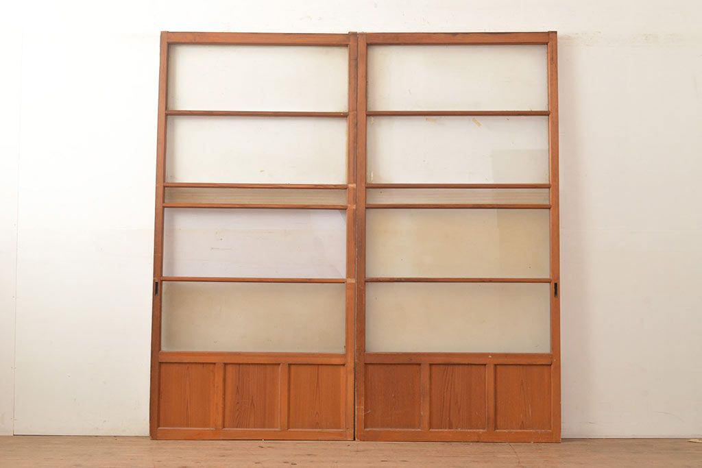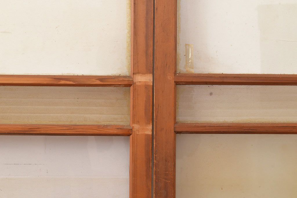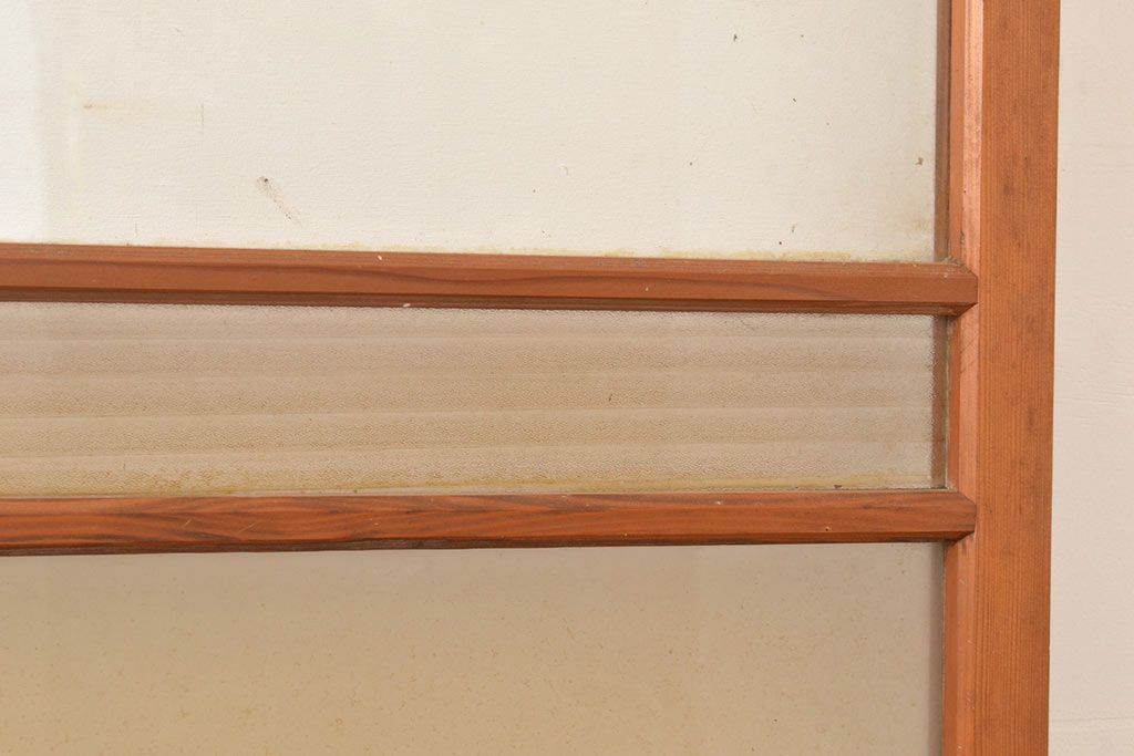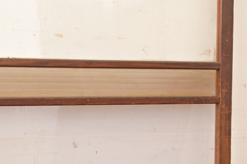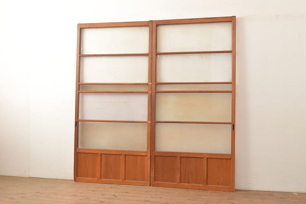 ドア・建具> ガラス戸 > アンティーク建具 昭和中期 すりガラス・銀モールガラス 光を優しく取り込む、ノスタルジックな雰囲気のガラス戸2枚セット(引き戸、建具)(R-049467)