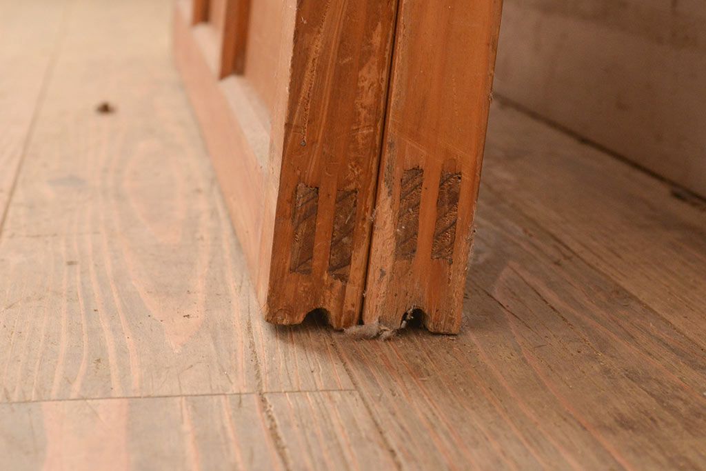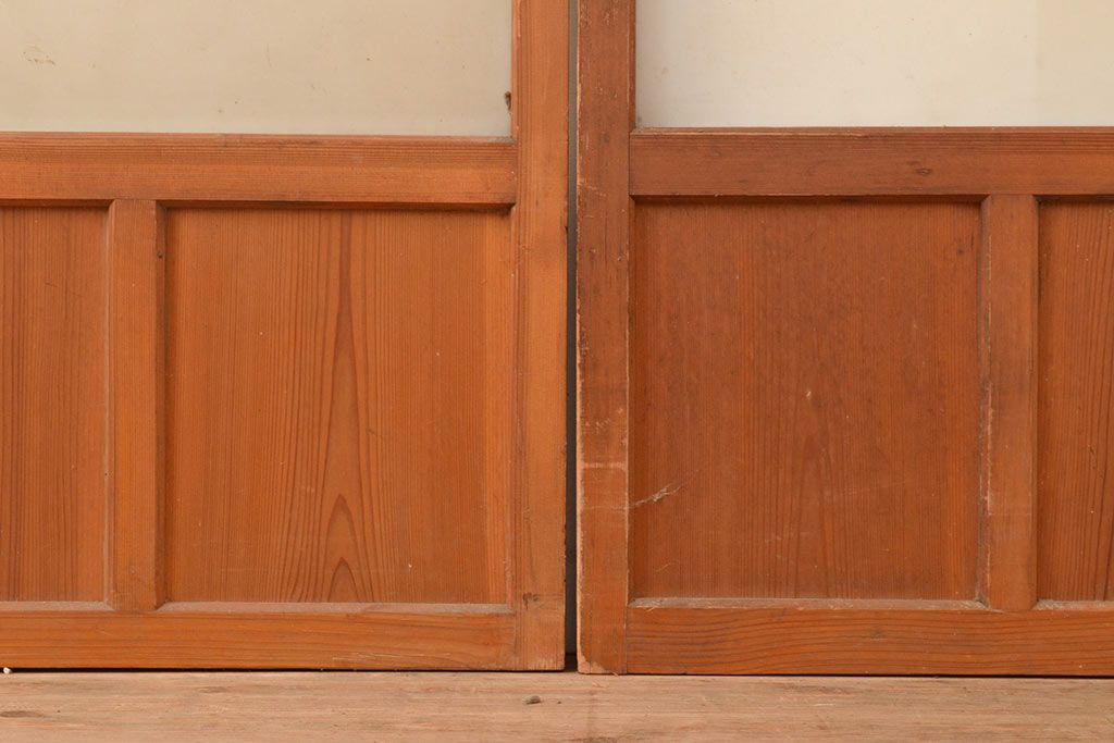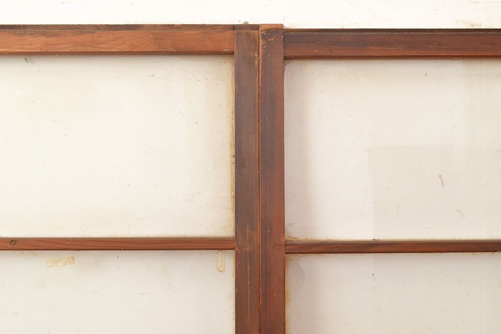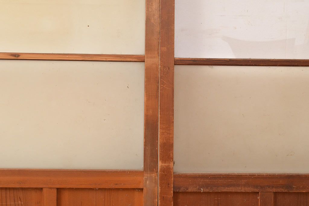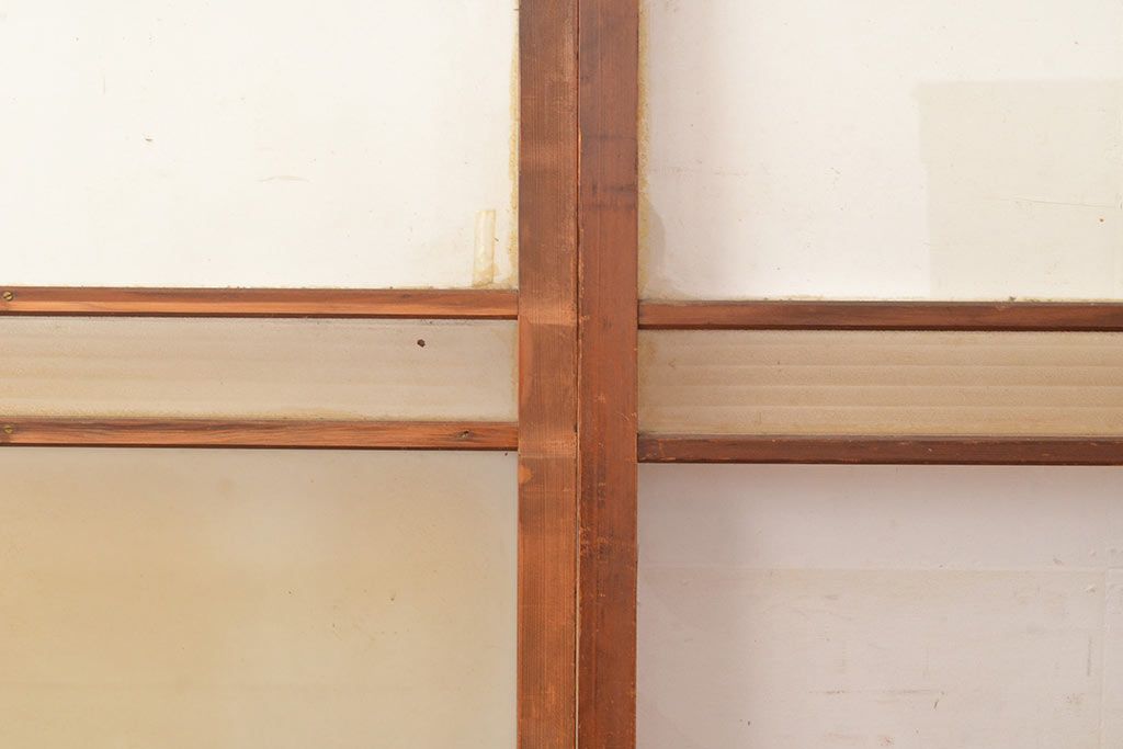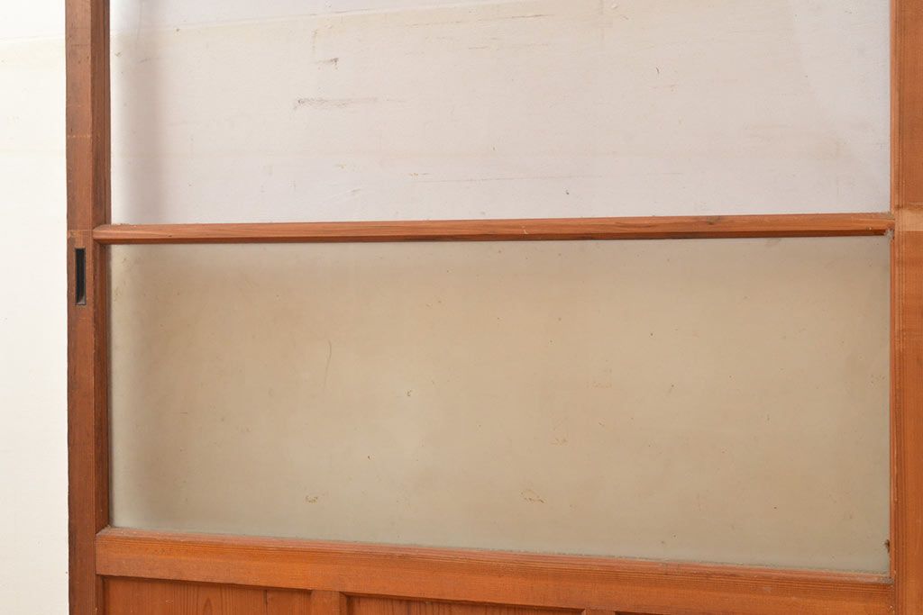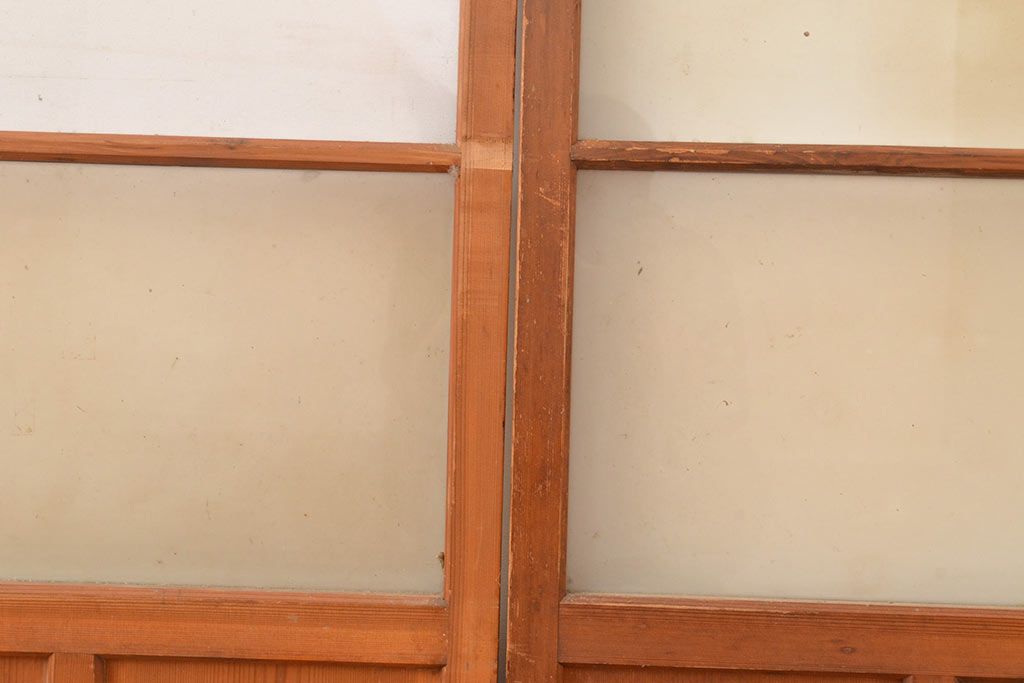 ドア・建具> 引き戸 > アンティーク建具 昭和中期 すりガラス・銀モールガラス 光を優しく取り込む、ノスタルジックな雰囲気のガラス戸2枚セット(引き戸、建具)(R-049467)