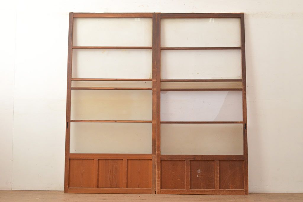 ドア・建具> 2枚・3枚セット > アンティーク建具 昭和中期 すりガラス・銀モールガラス 光を優しく取り込む、ノスタルジックな雰囲気のガラス戸2枚セット(引き戸、建具)(R-049467)