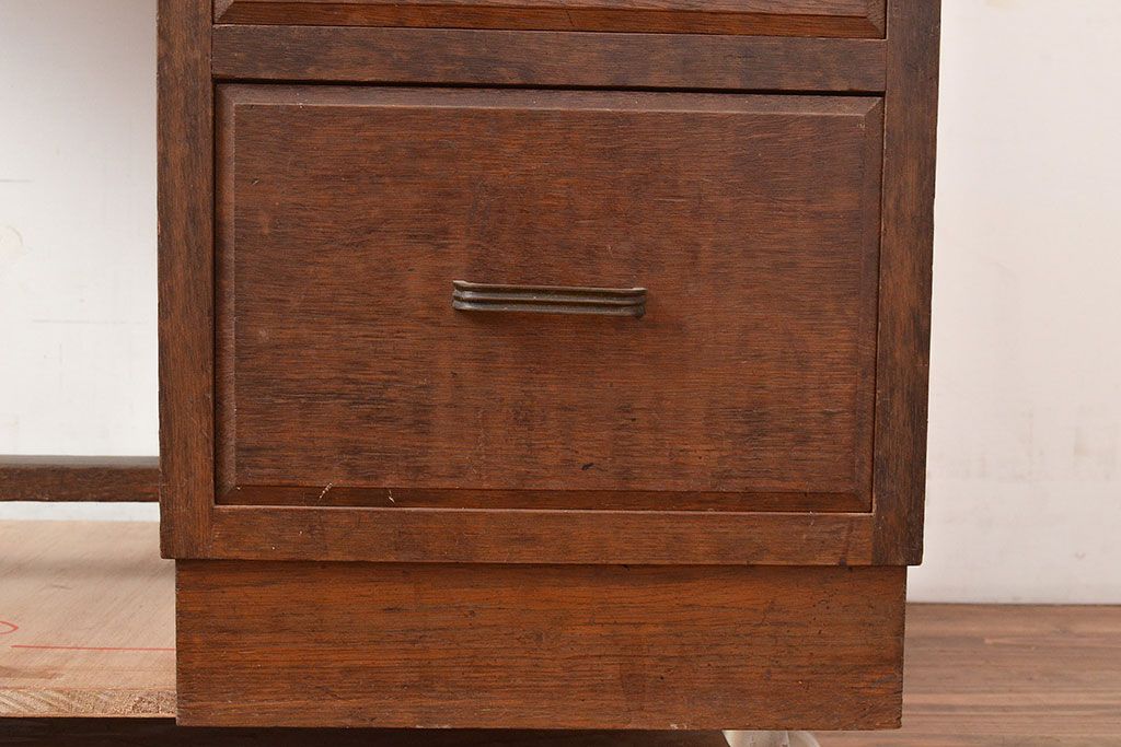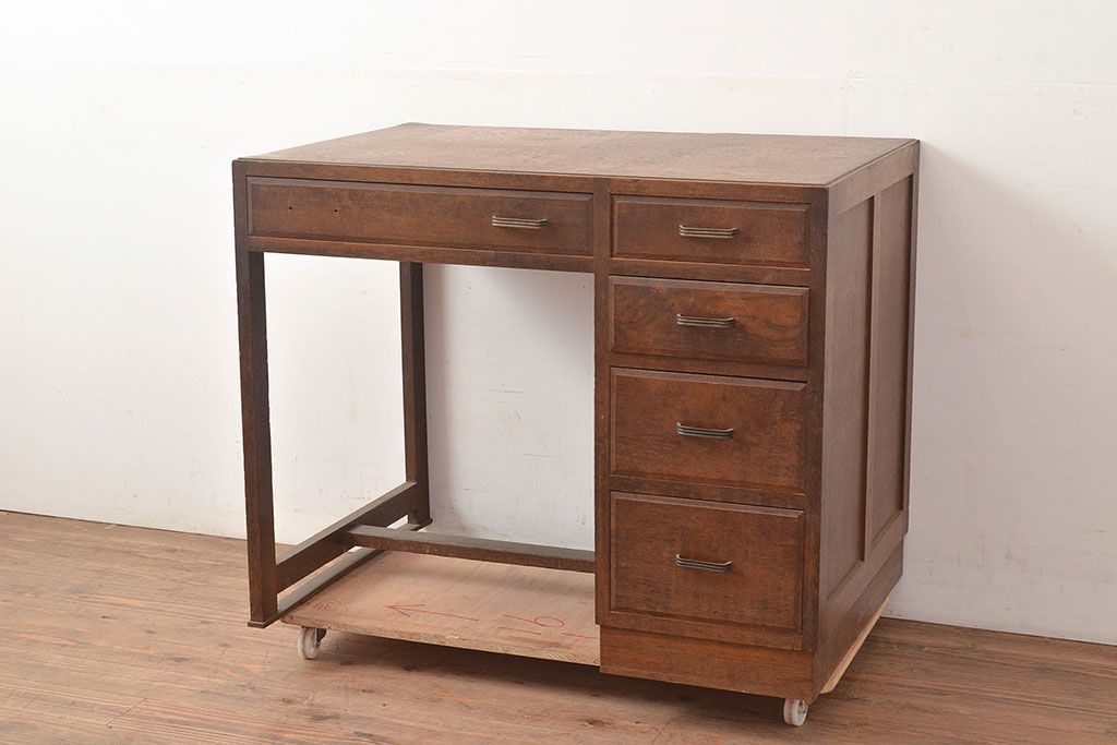 和製アンティーク 昭和中期 ナラ材 天板突板 レトロな片袖机(ワークデスク、平机、在宅ワーク、在宅用学習机)(R-048322)