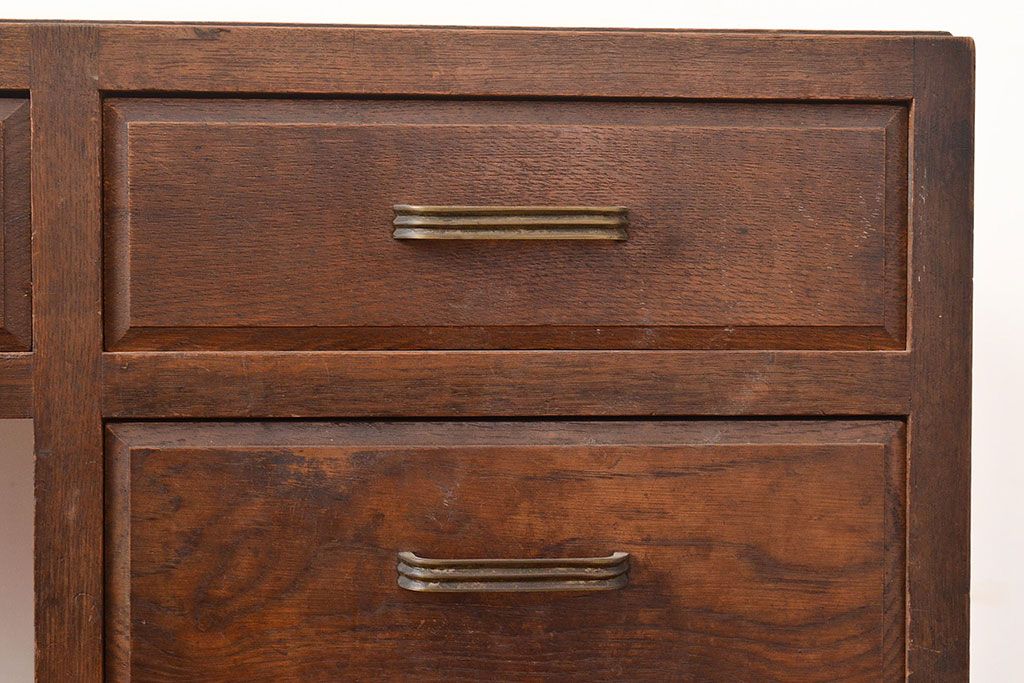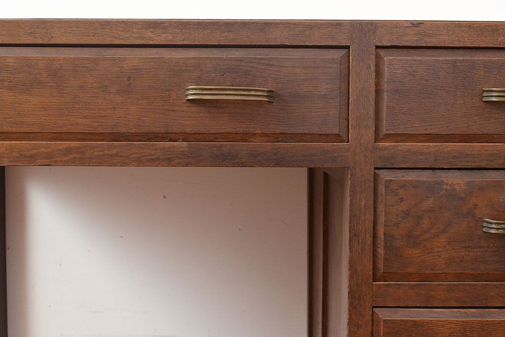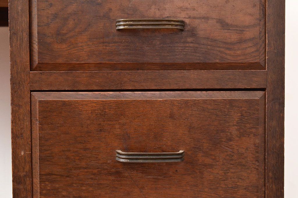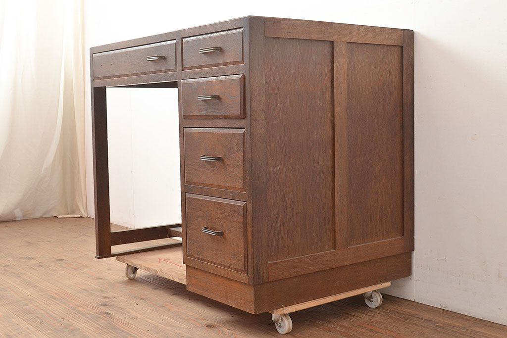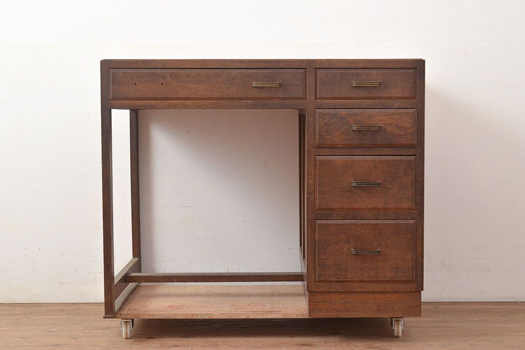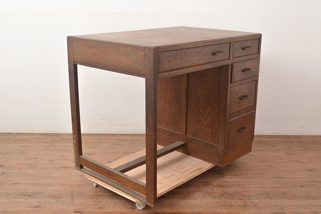 ラフジュ工房> デスク> ワークデスク > 和製アンティーク 昭和中期 ナラ材 天板突板 レトロな片袖机(ワークデスク、平机、在宅ワーク、在宅用学習机)(R-048322)