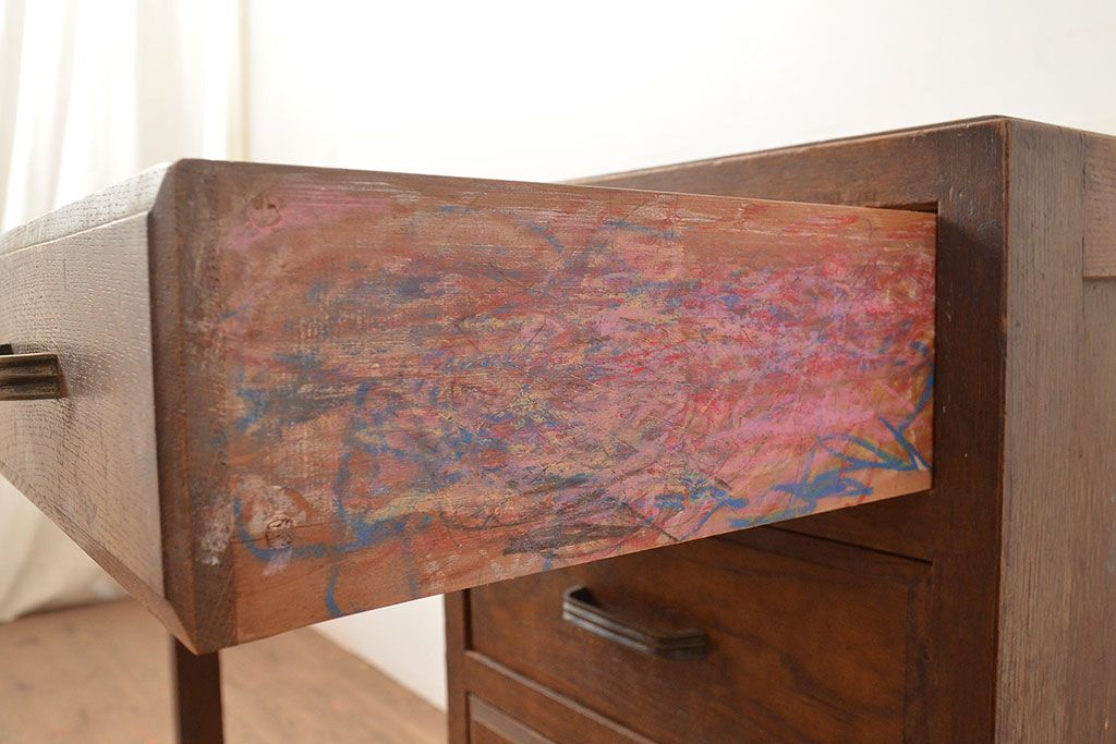 ラフジュ工房> デスク> 片袖机・両袖机 > 和製アンティーク 昭和中期 ナラ材 天板突板 レトロな片袖机(ワークデスク、平机、在宅ワーク、在宅用学習机)(R-048322)