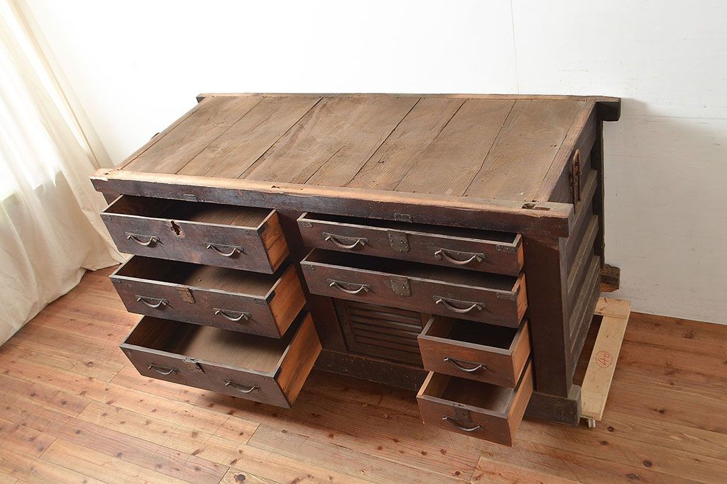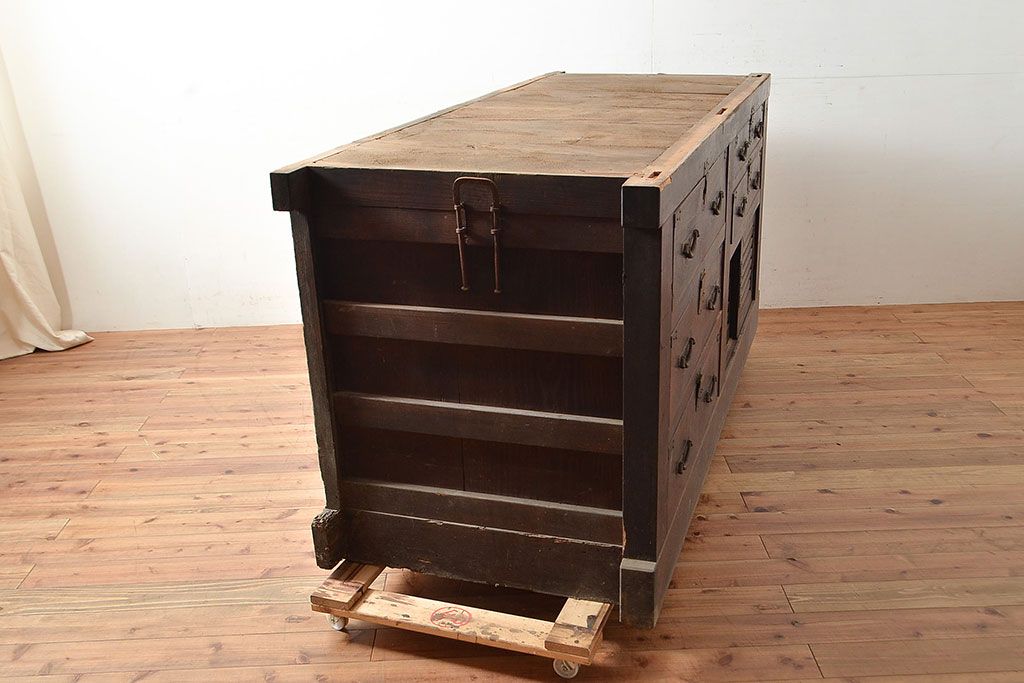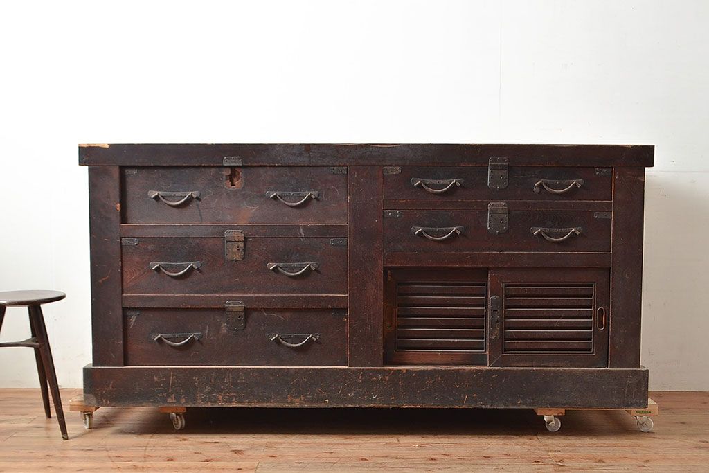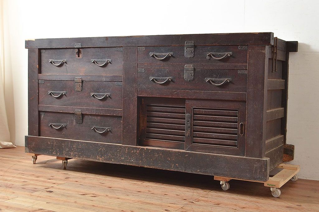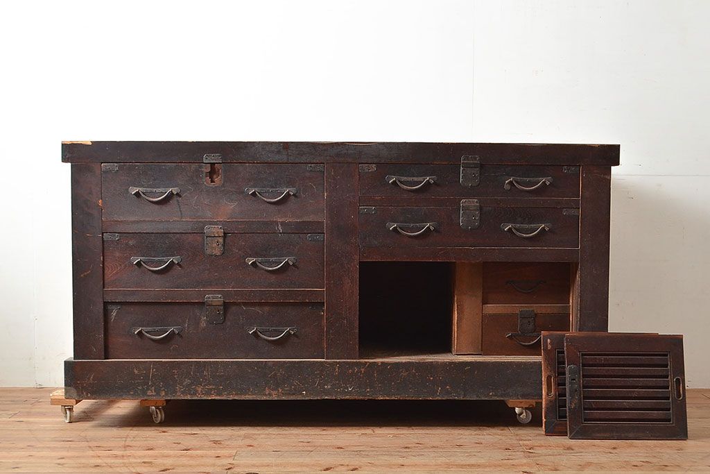 和製アンティーク 前面ヒノキ材・ケヤキ材 サイドボード(ローボード、テレビ台)(R-048509)