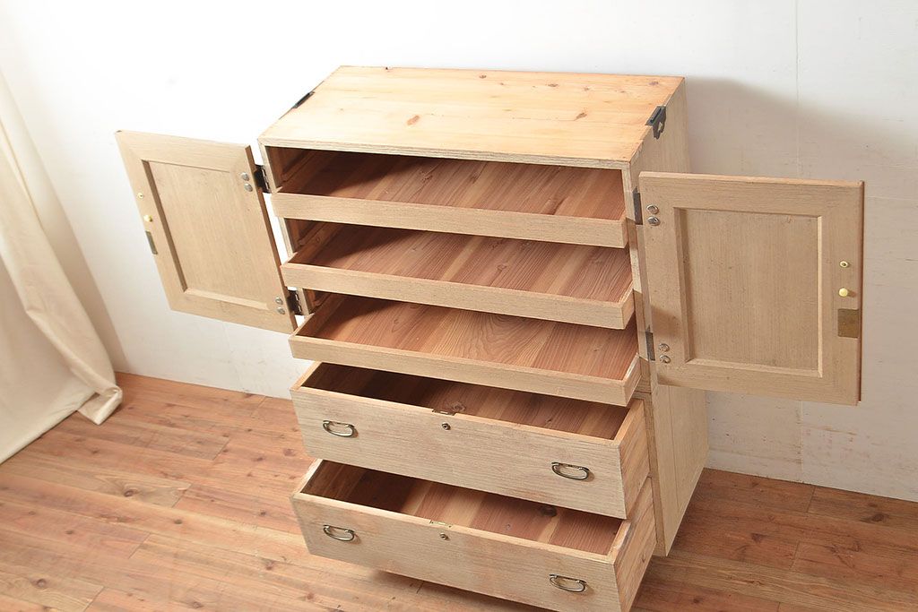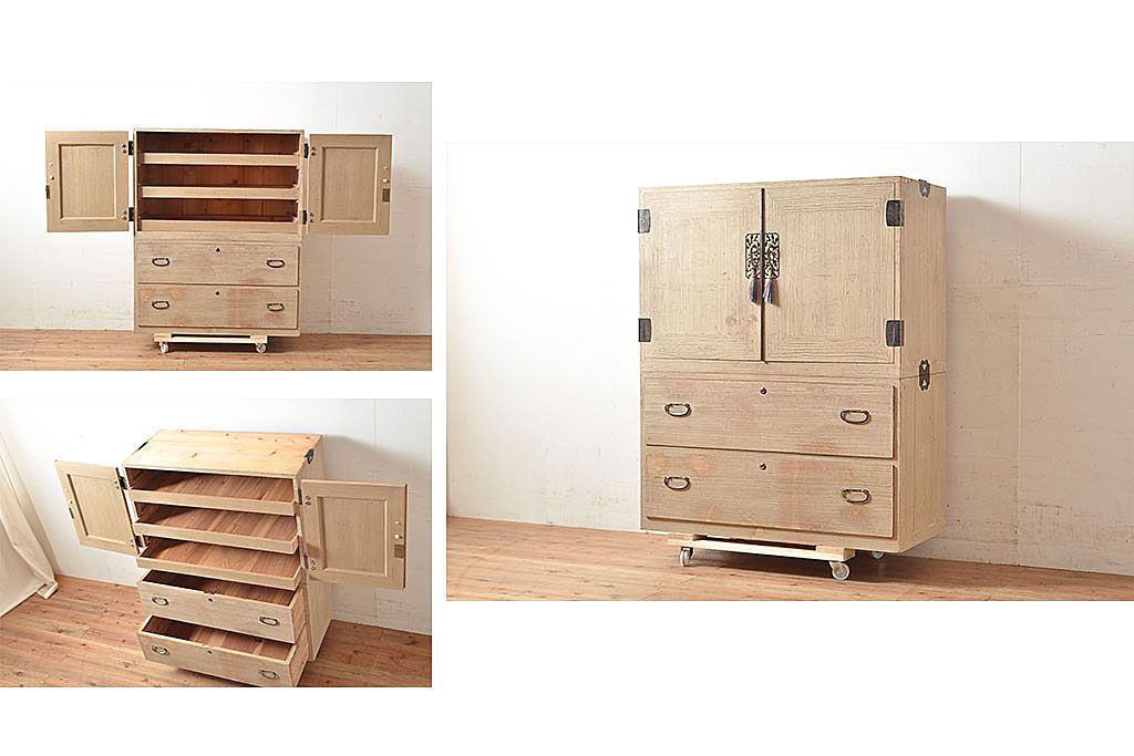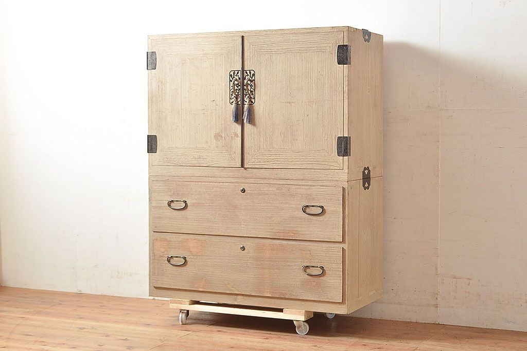 和箪笥				> 和製アンティーク 前面桐材 衣装盆付き 桐箪笥(着物箪笥、引き出し、和タンス、衣装箪笥)(R-048506)