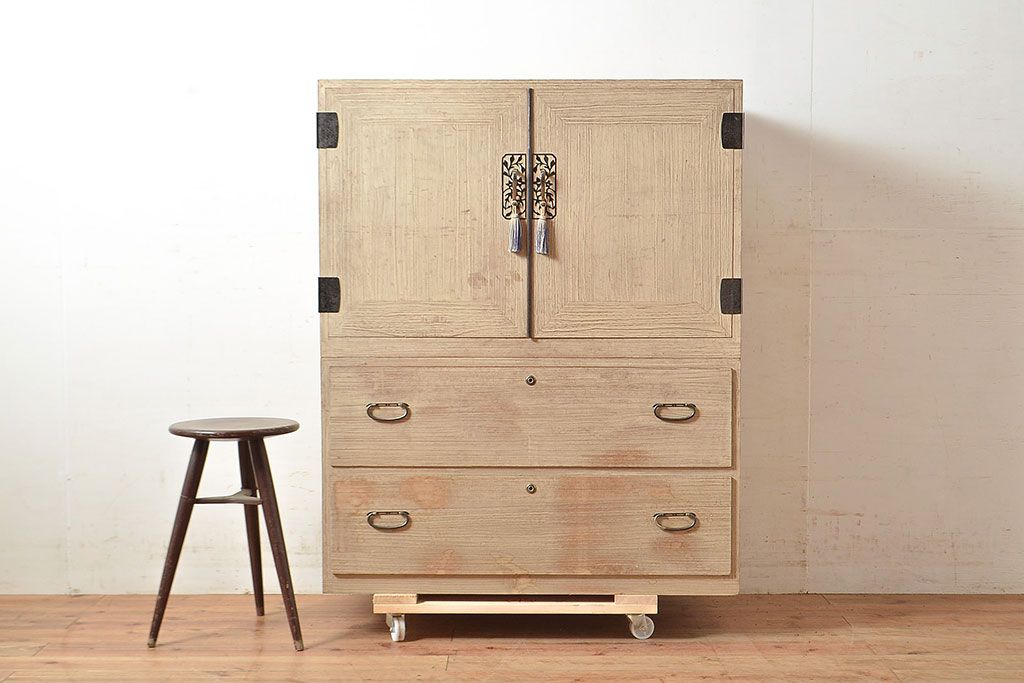 和製アンティーク 前面桐材 衣装盆付き 桐箪笥(着物箪笥、引き出し、和タンス、衣装箪笥)(R-048506)