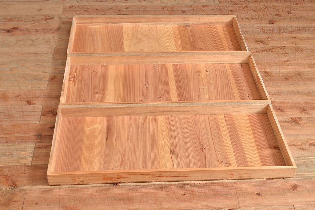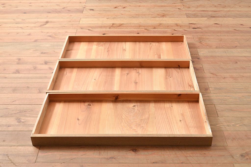 お問い合わせいただければ、優先してアップいたします。和製アンティーク 前面桐材 衣装盆付き 桐箪笥(着物箪笥、引き出し、和タンス、衣装箪笥)(R-048506)です。 ■引き出しの内寸 深さ 各200mm/幅 各810mm/奥行 各350mm ■衣装盆の内寸 深さ 各50mm/幅 各825mm/奥行 各330mm ■重量 約63kg こちらは仕上げ前商品です。 受注を受けてからリペアを行います。 受注が入りましたら、他の商品より優先してリペアいたします。 納期についてご希望ある場合はお申し付けください。 ![]() ※追加料金が必要な有料オプションとその価格に関しては、以下のページをご覧くださいセミオーダータンスの有料オプション一覧はこちらから ![]() ![]() ![]() ![]() ![]() ![]() ![]() ![]()