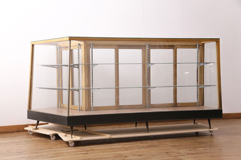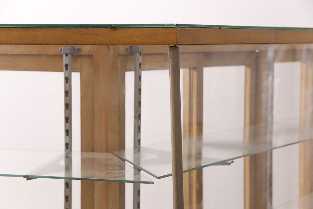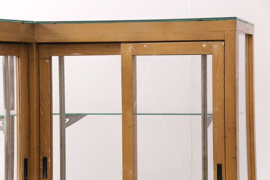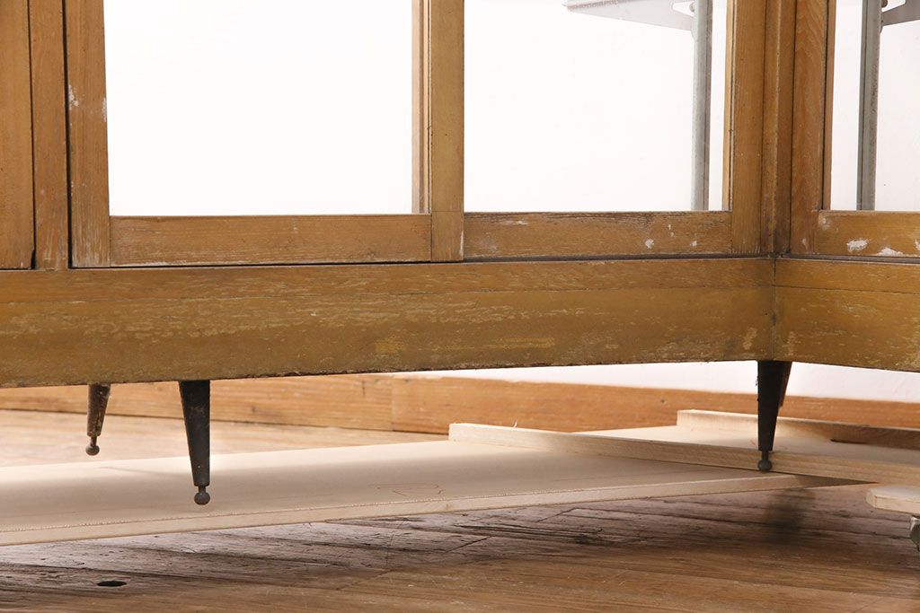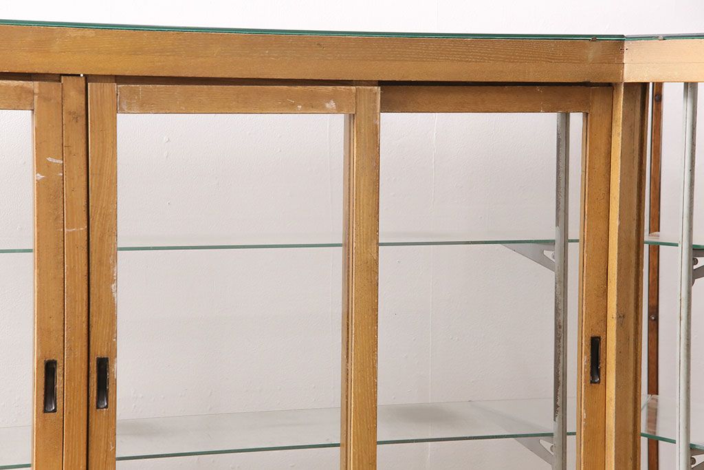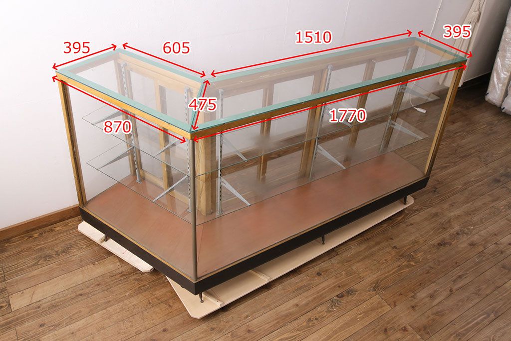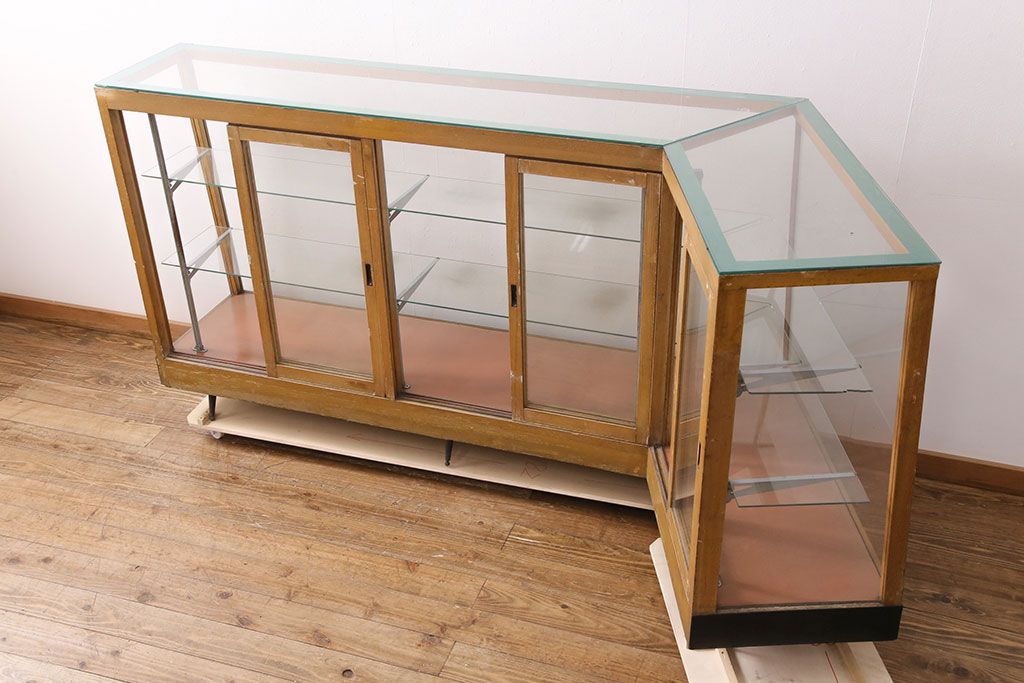 ラフジュ工房> 店舗什器 > 和製アンティーク ナラ材 激レアデザイン! 斜めL字型のガラスケース(ショーケース、陳列棚)(R-049580)