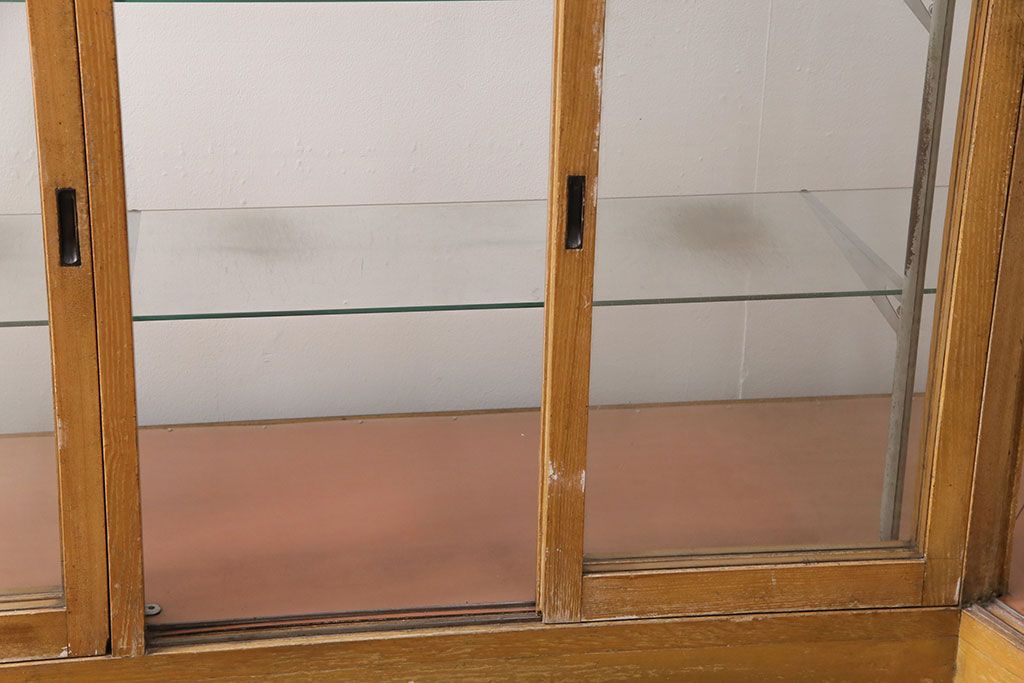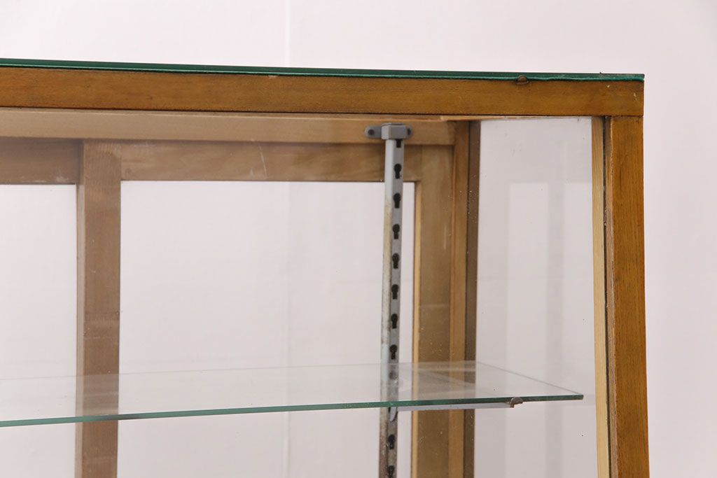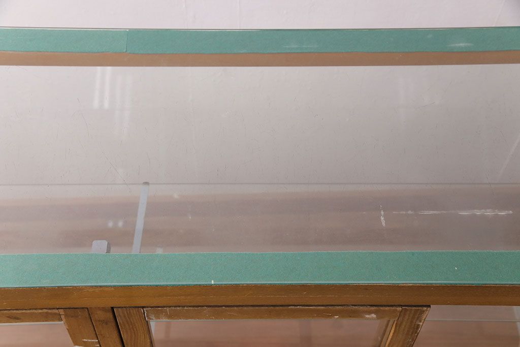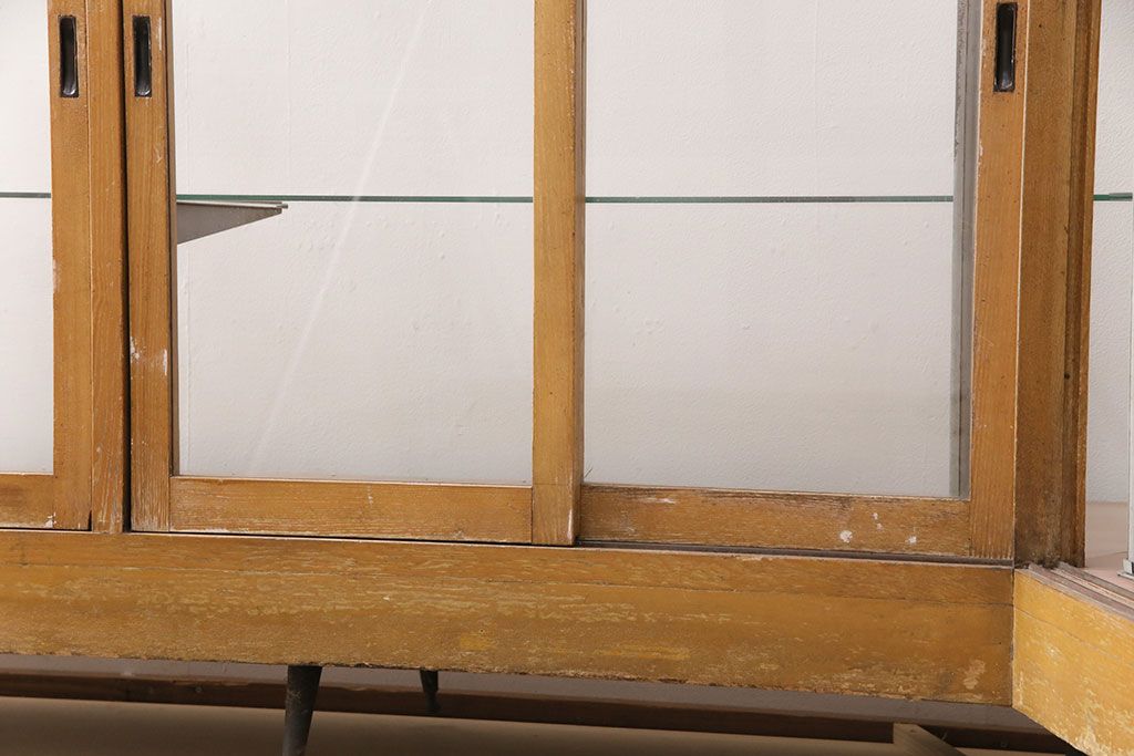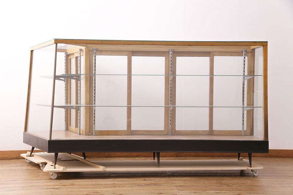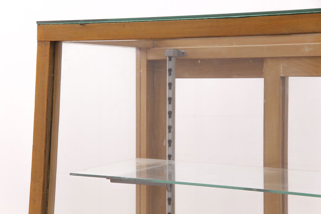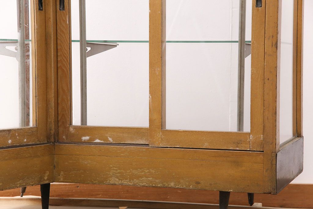 ラフジュ工房> 店舗什器 > 和製アンティーク ナラ材 激レアデザイン! 斜めL字型のガラスケース(ショーケース、陳列棚)(R-049580)