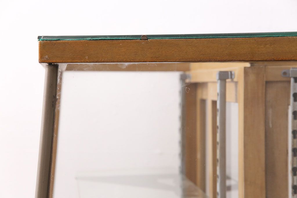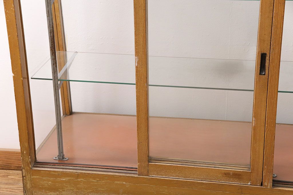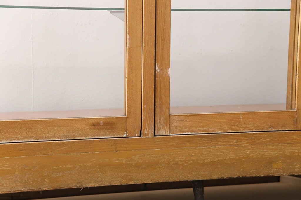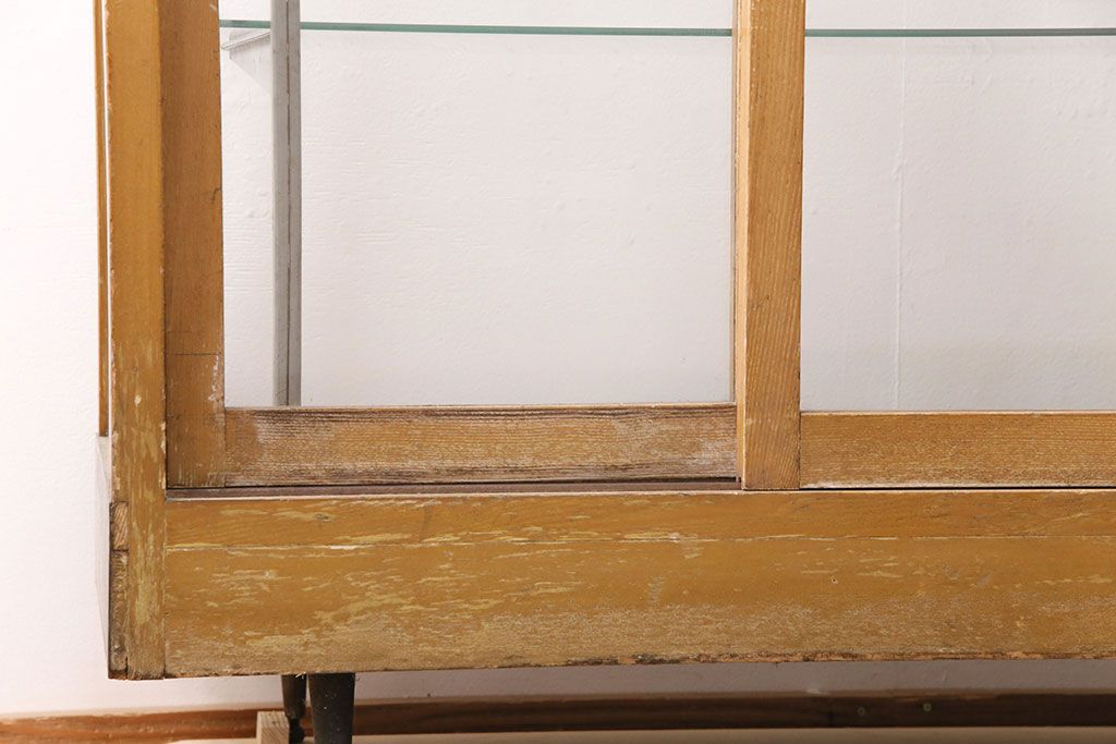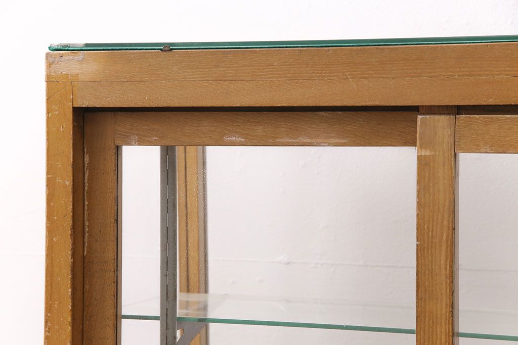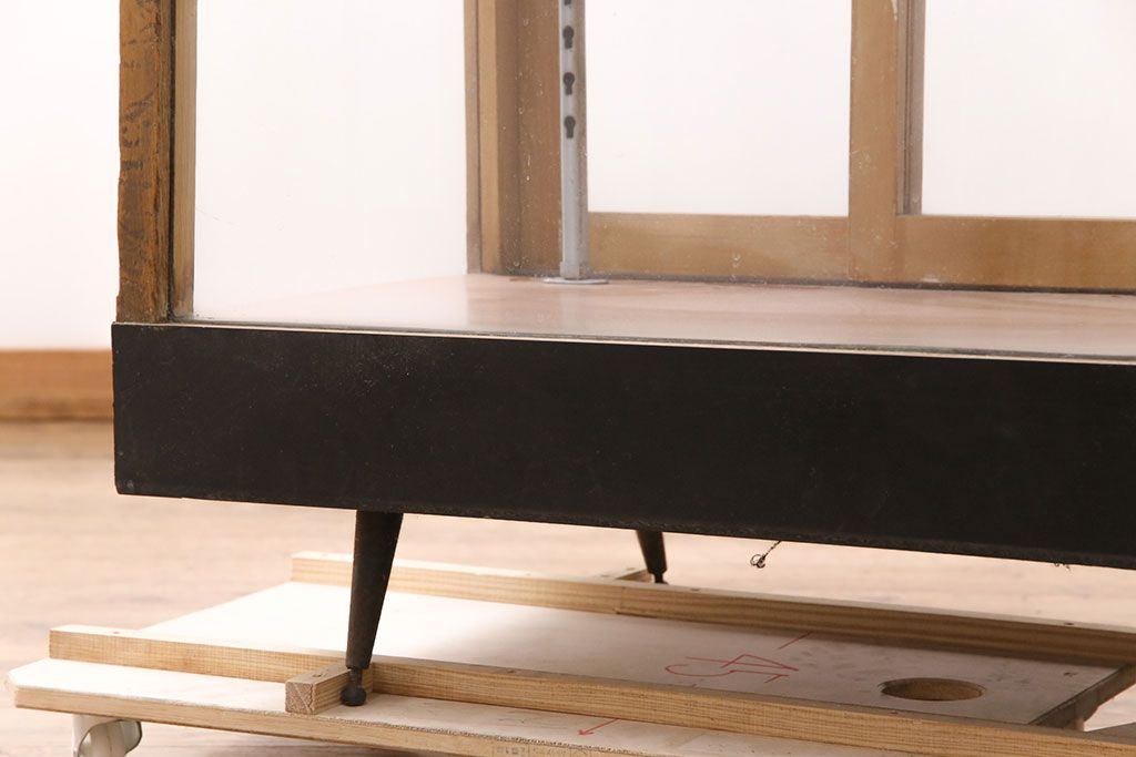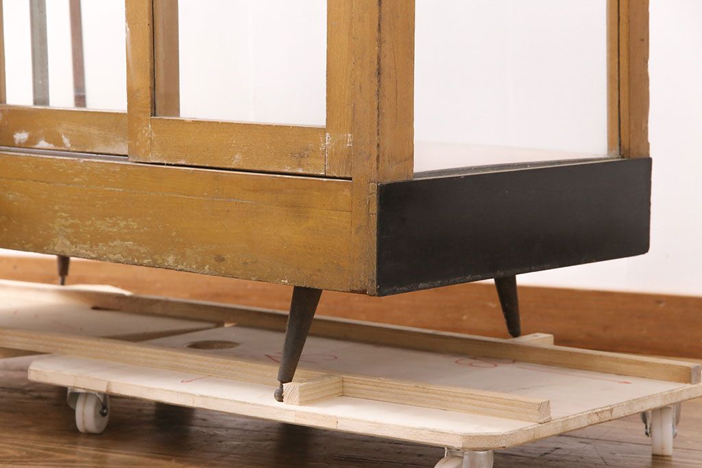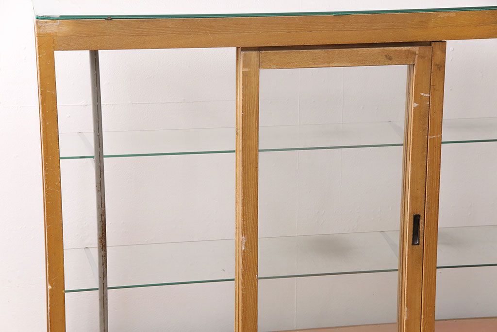 ラフジュ工房> 店舗什器 > 和製アンティーク ナラ材 激レアデザイン! 斜めL字型のガラスケース(ショーケース、陳列棚)(R-049580)