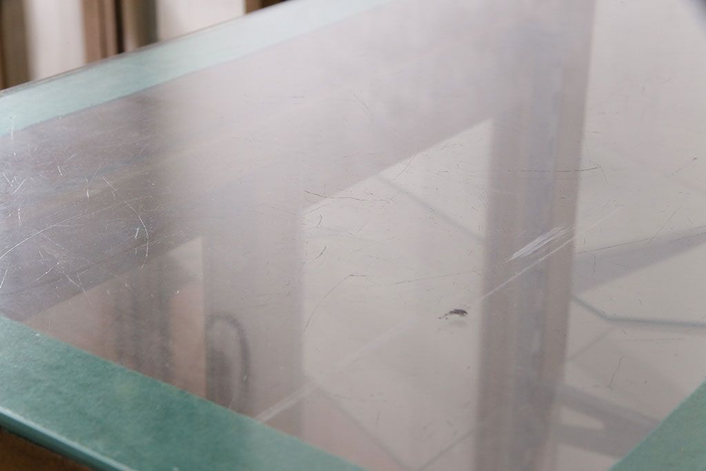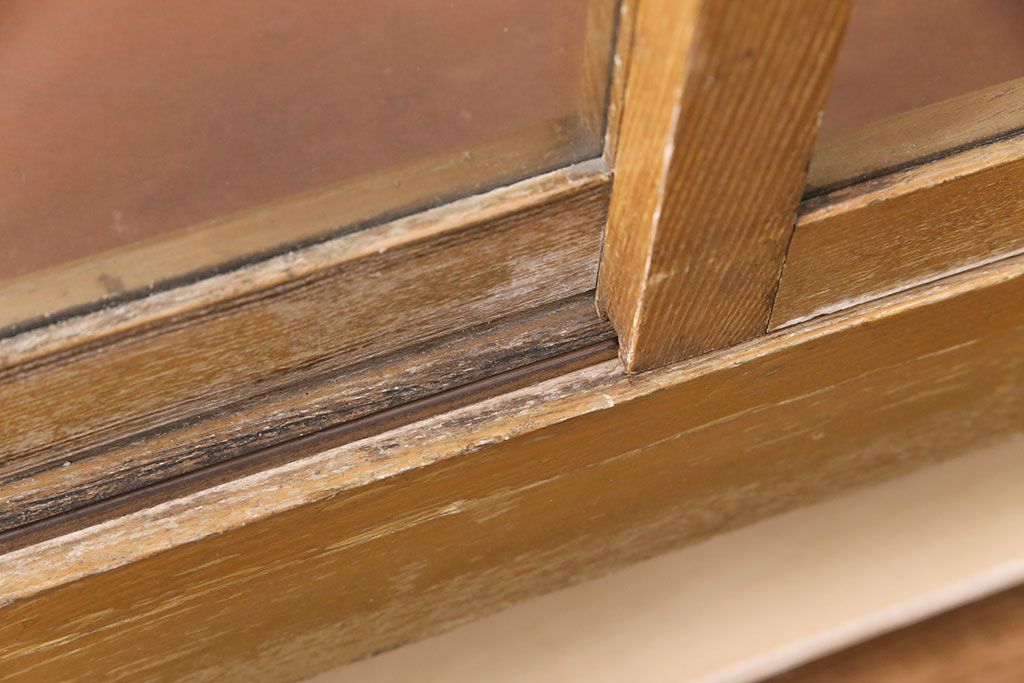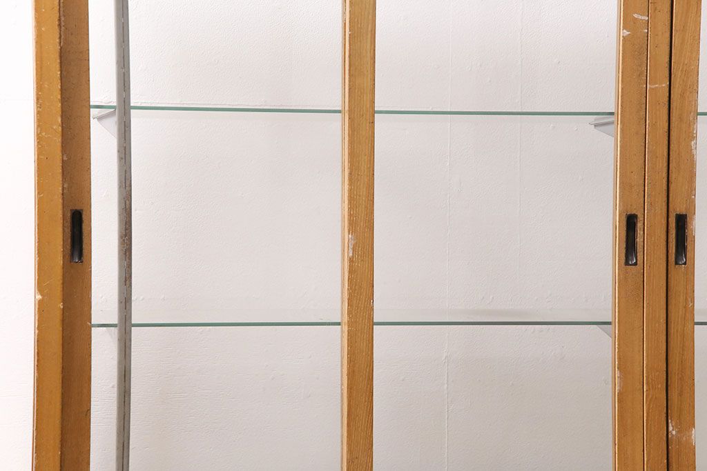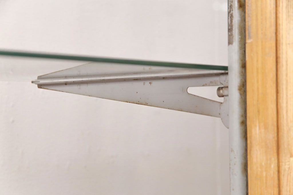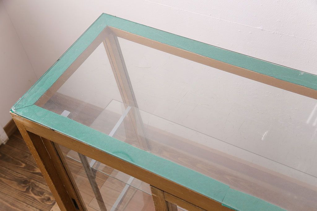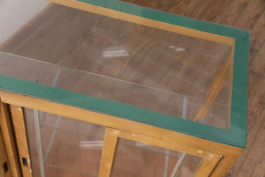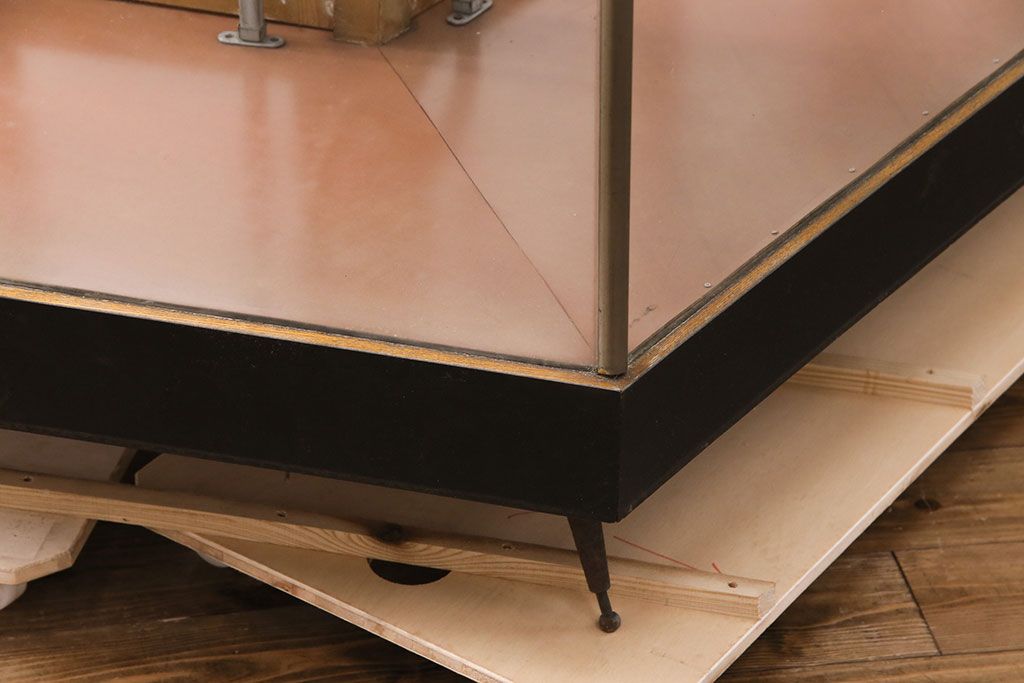 ラフジュ工房> 店舗什器 > 和製アンティーク ナラ材 激レアデザイン! 斜めL字型のガラスケース(ショーケース、陳列棚)(R-049580)
