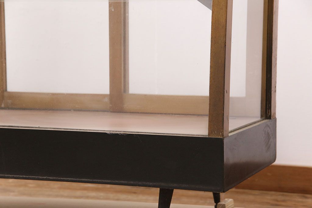和製アンティーク ナラ材 激レアデザイン! 斜めL字型のガラスケース(ショーケース、陳列棚)(R-049580)