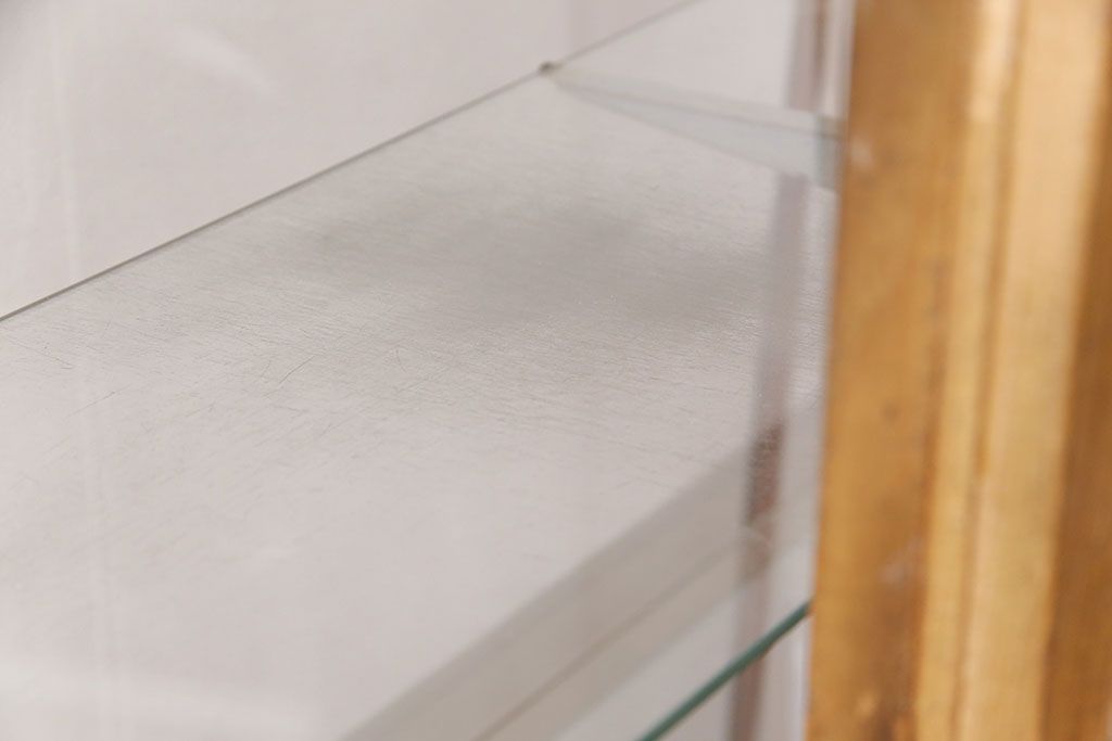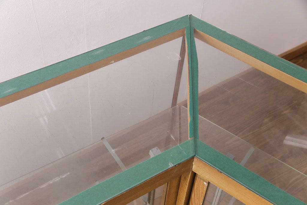 ラフジュ工房> ガラスケース・ショーケース > 和製アンティーク ナラ材 激レアデザイン! 斜めL字型のガラスケース(ショーケース、陳列棚)(R-049580)