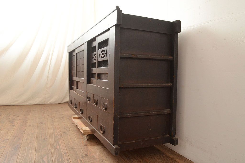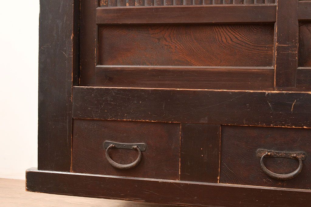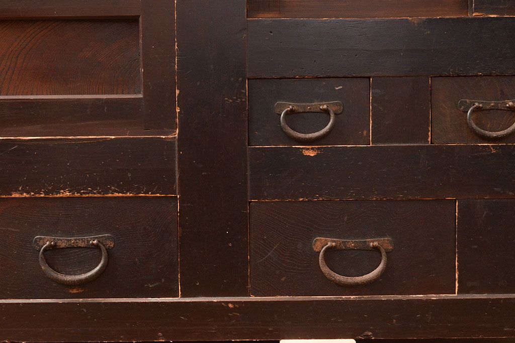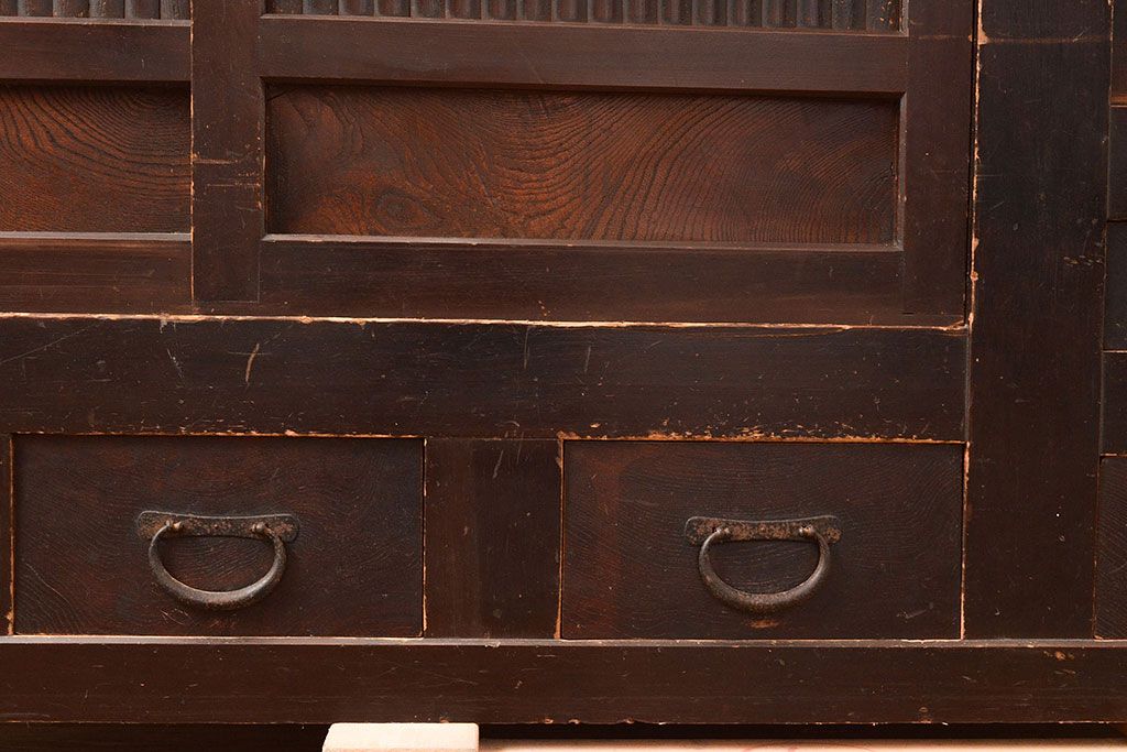 和箪笥> 水屋箪笥 > 和製アンティーク 明治期 丸桟仕上げ 近江水屋箪笥サイドボード(食器棚、キャビネット、収納棚)(R-048963)