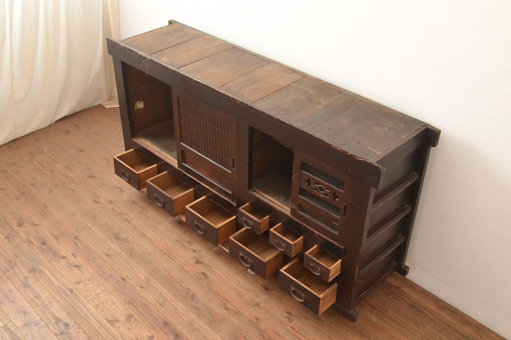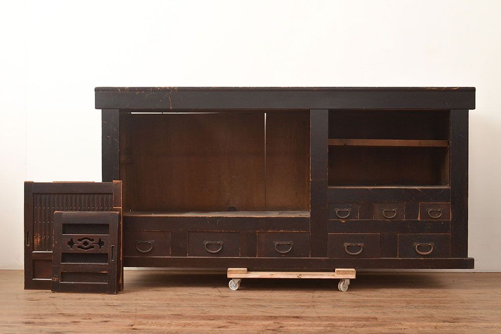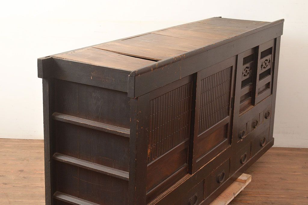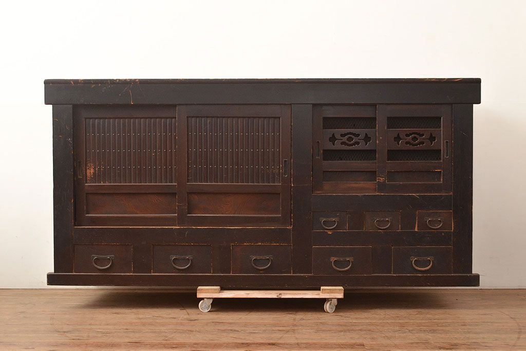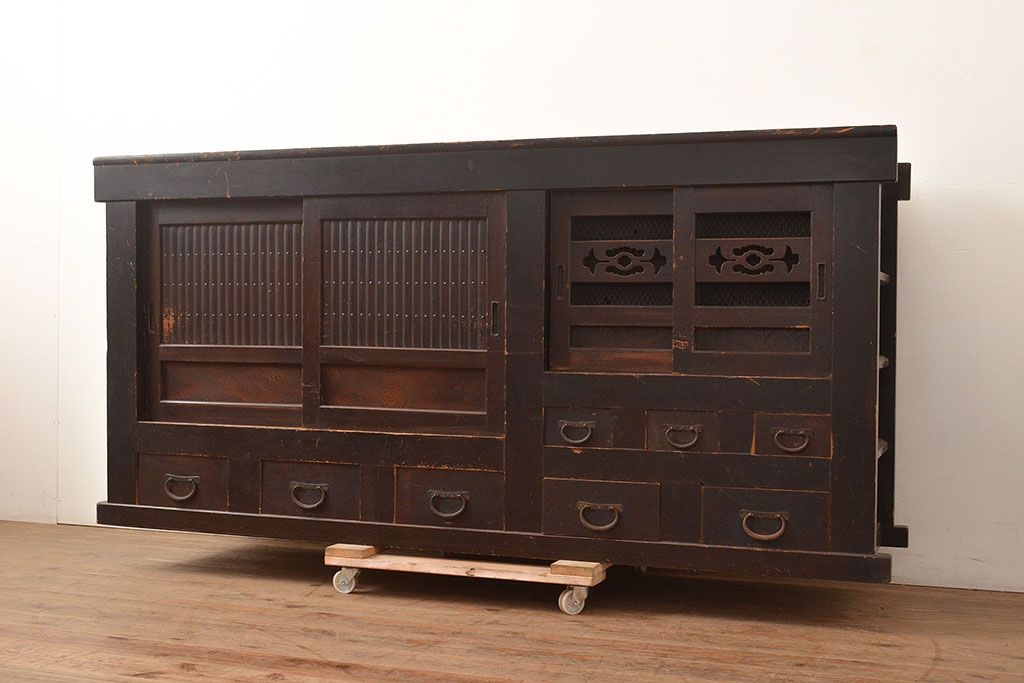 和箪笥> 水屋箪笥 > 和製アンティーク 明治期 丸桟仕上げ 近江水屋箪笥サイドボード(食器棚、キャビネット、収納棚)(R-048963)