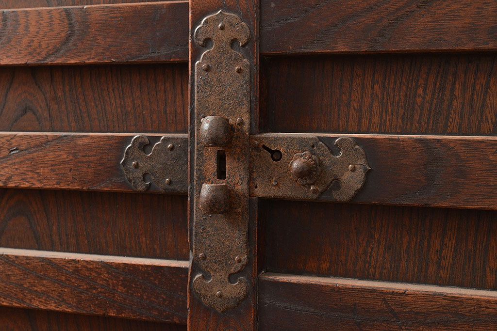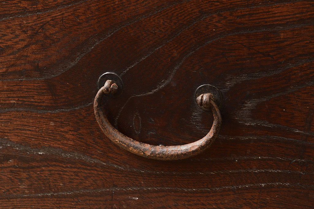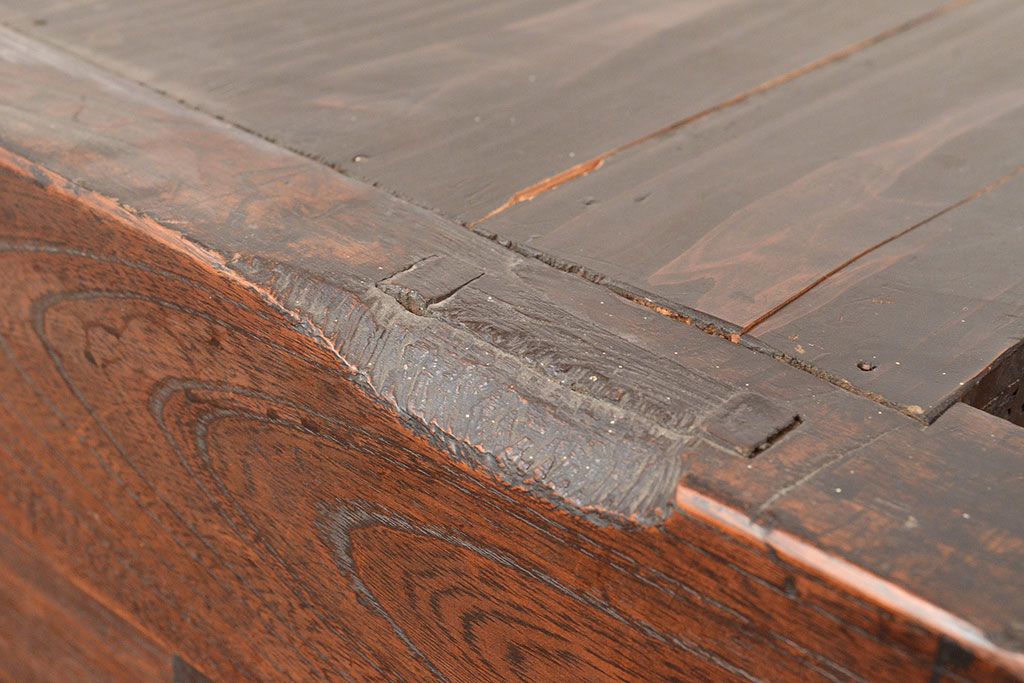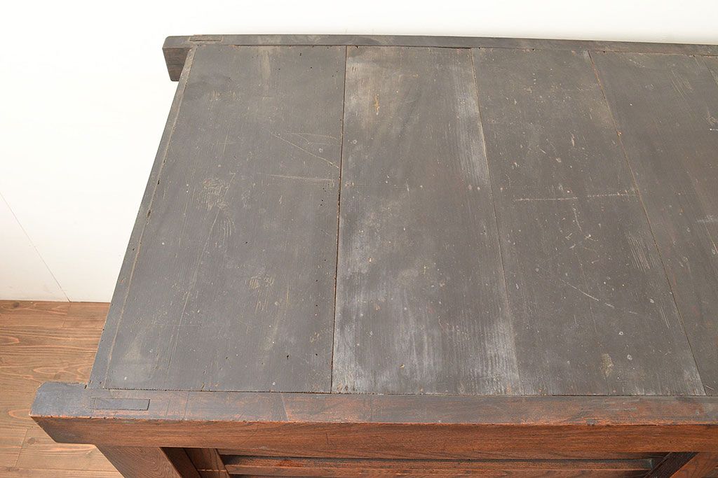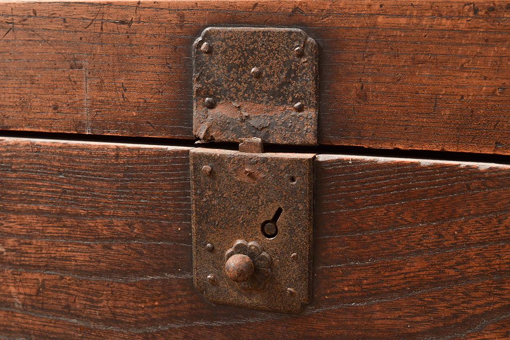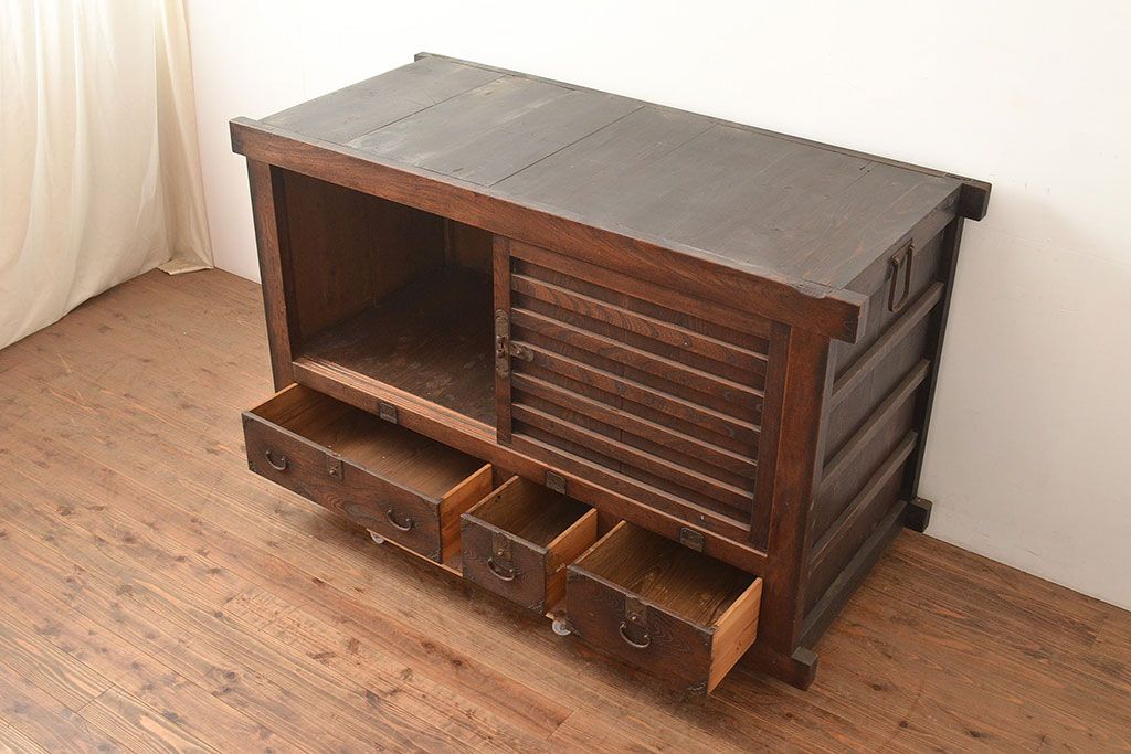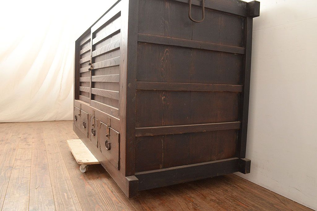 和箪笥 > 和製アンティーク 前面欅(ケヤキ)材 重厚な佇まいの大型帳場箪笥(水屋箪笥、サイドボード、テレビ台、テレビボード)(R-048964)