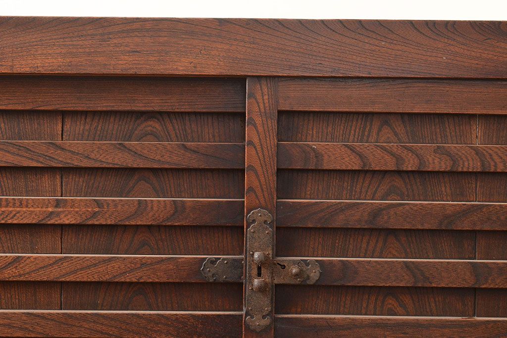 和箪笥> 帳場箪笥 > 和製アンティーク 前面欅(ケヤキ)材 重厚な佇まいの大型帳場箪笥(水屋箪笥、サイドボード、テレビ台、テレビボード)(R-048964)