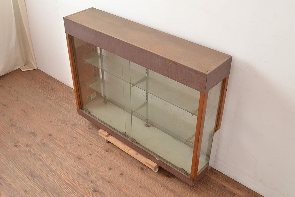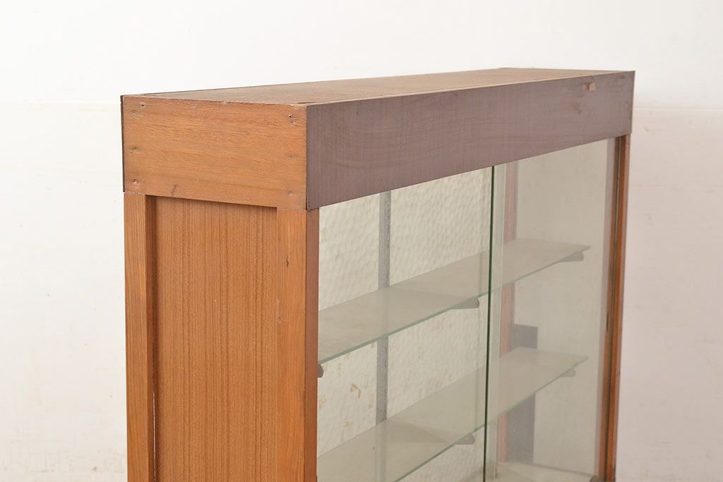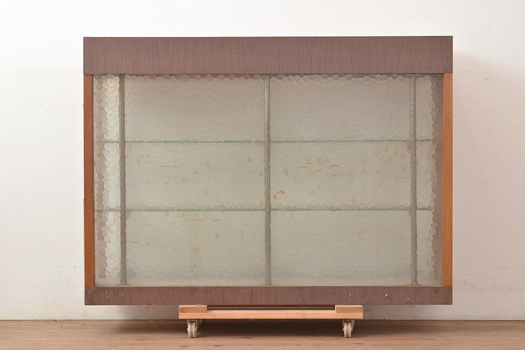 お問い合わせいただければ、優先してアップいたします。和製アンティーク 人気の薄型! モザイクガラスがおしゃれなガラスケース(ショーケース、陳列棚)(R-048670)です。