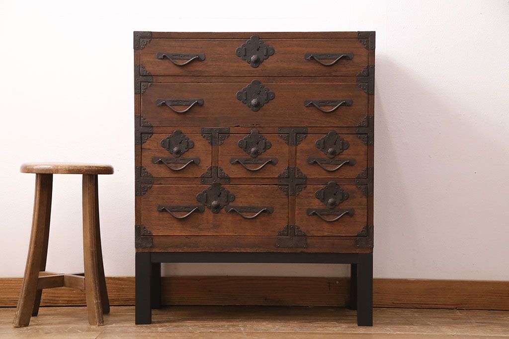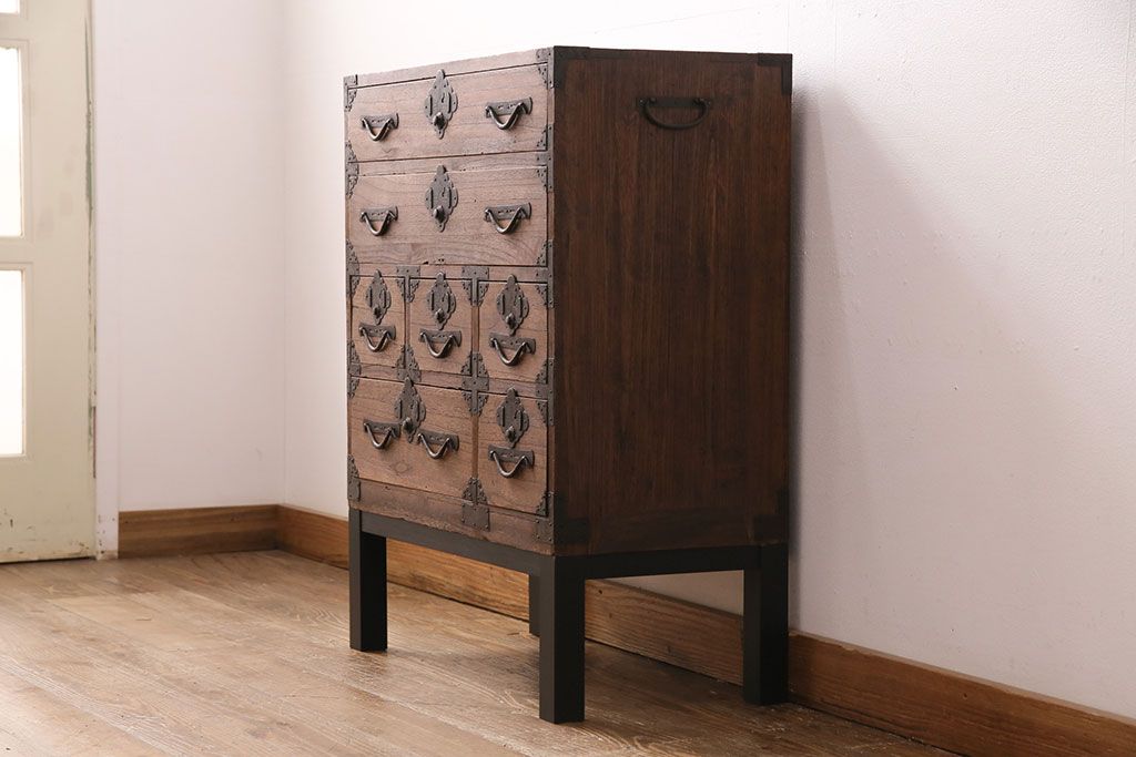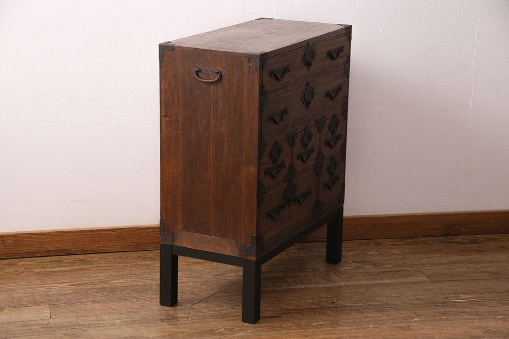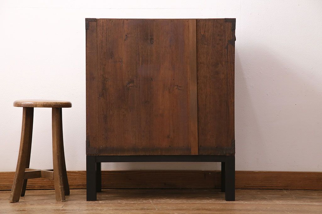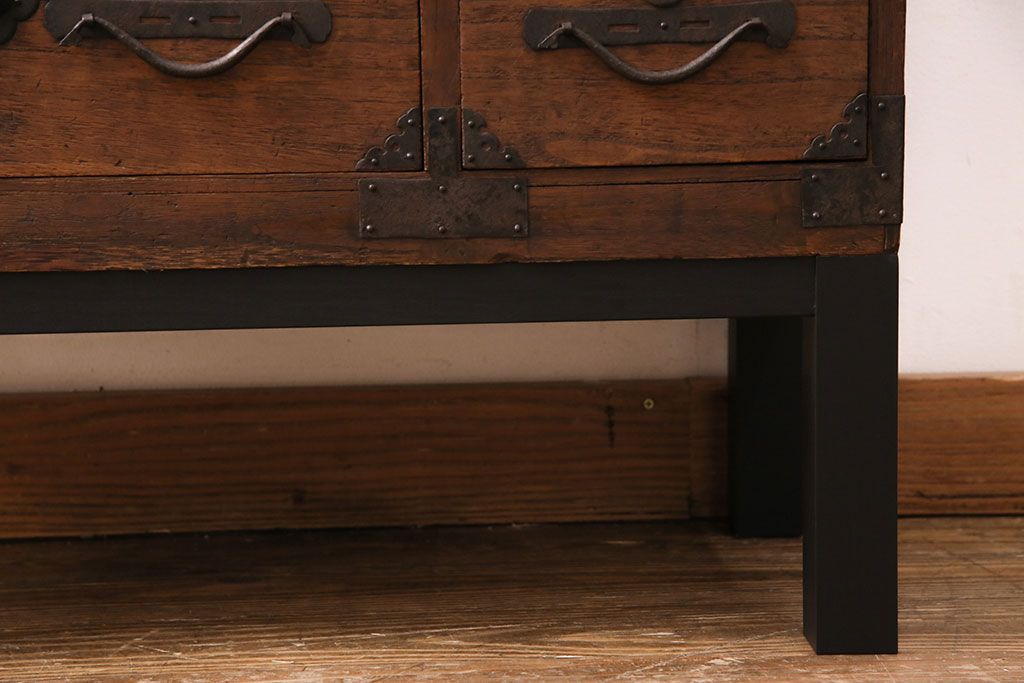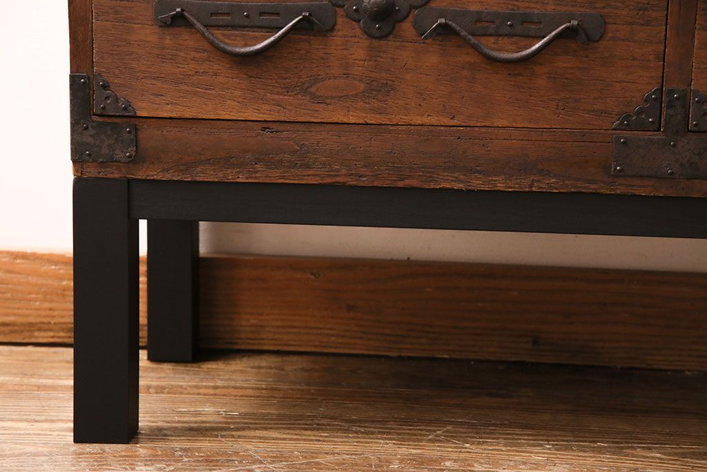 セミオーダー家具実績 > 明治大正期の小箪笥をリペア&カスタム!傷んだ木部の補修。マットブラックにペイントした木製脚を取り付け。(収納箪笥、時代箪笥、チェスト)
