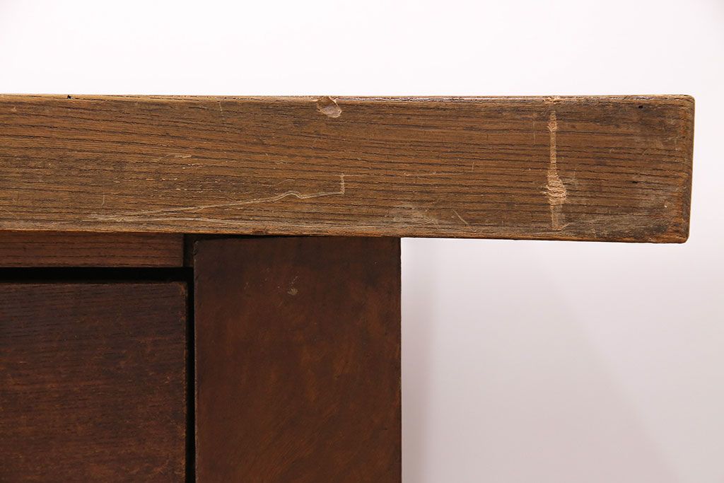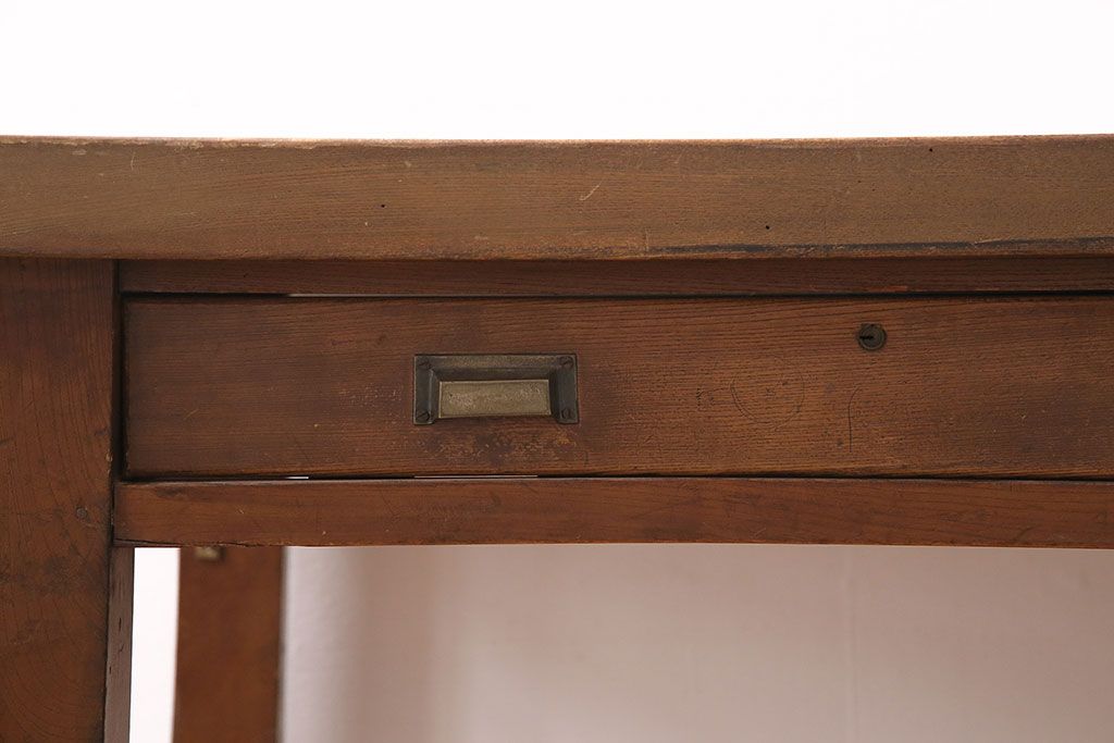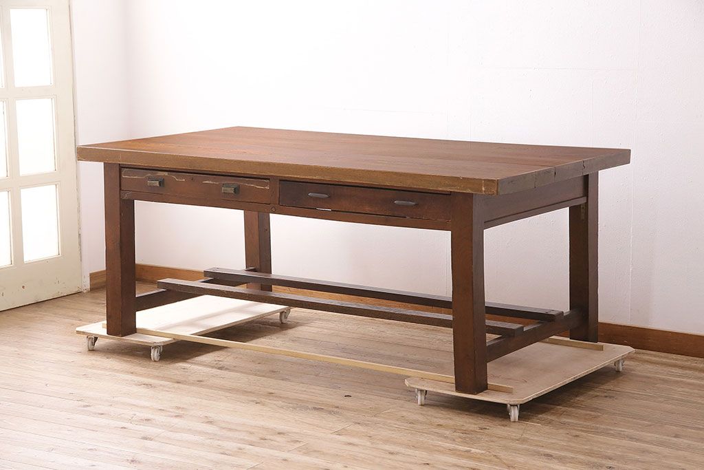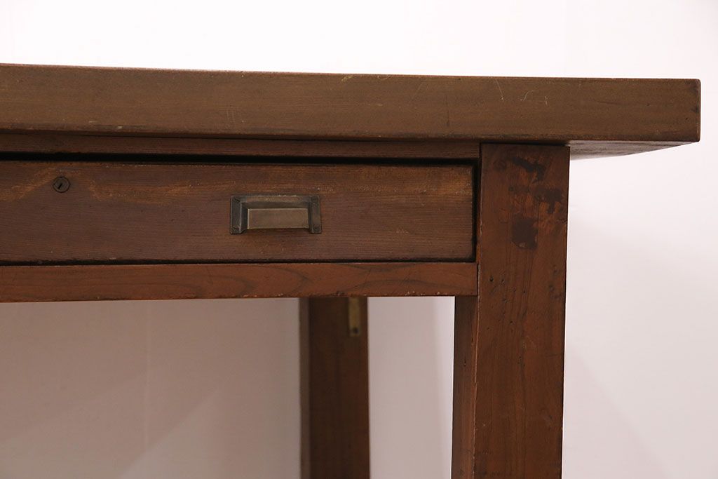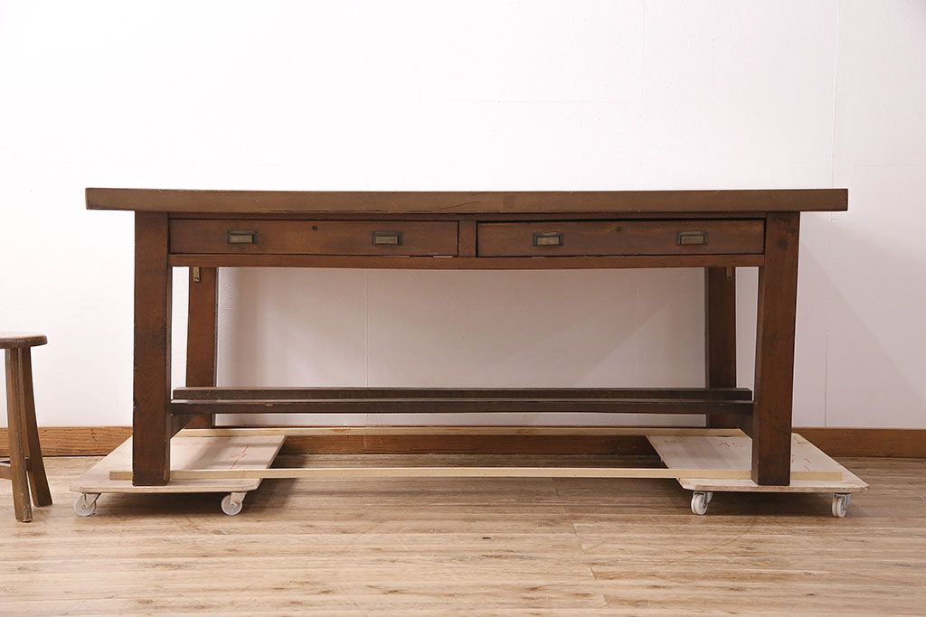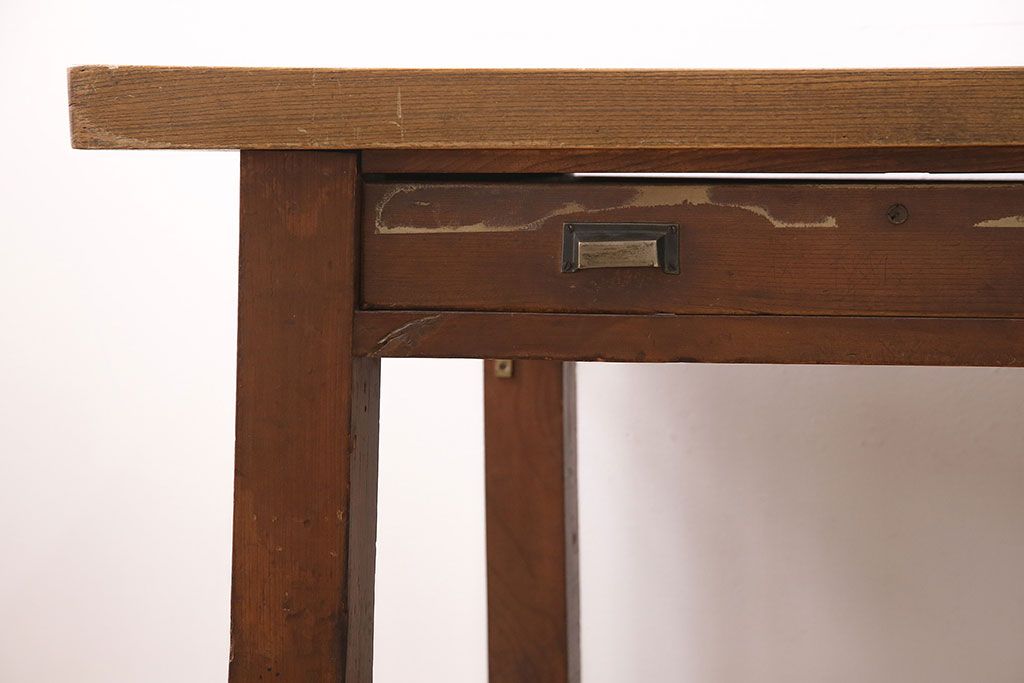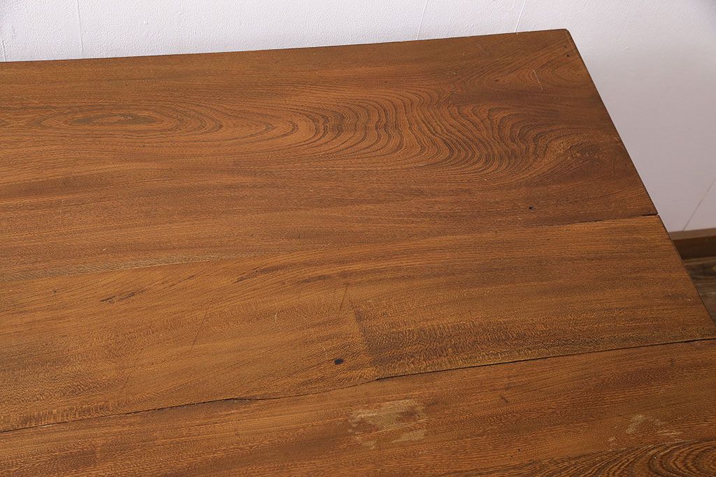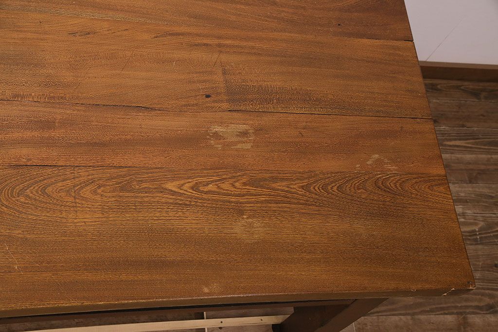 ラフジュ工房> テーブル> 作業台 > 和製アンティーク 特大サイズ 総ケヤキ材 天板極厚!木の味わいが楽しめる引き出し付きの作業台(ダイニングテーブル)(R-048829)