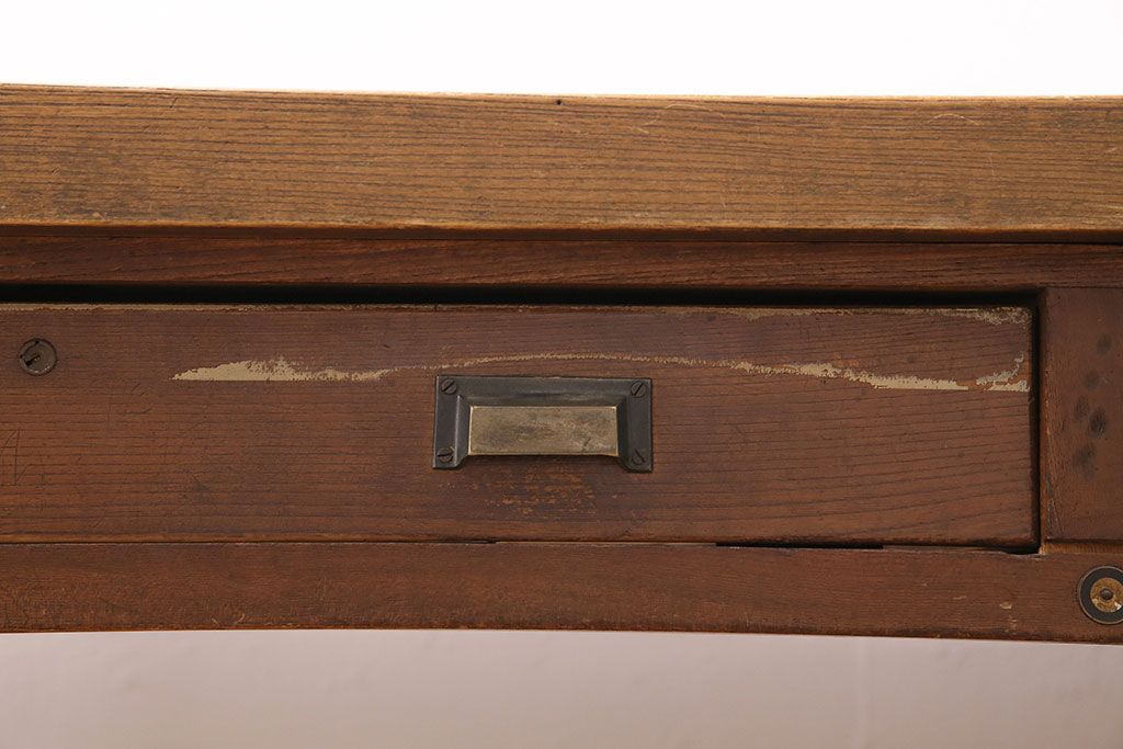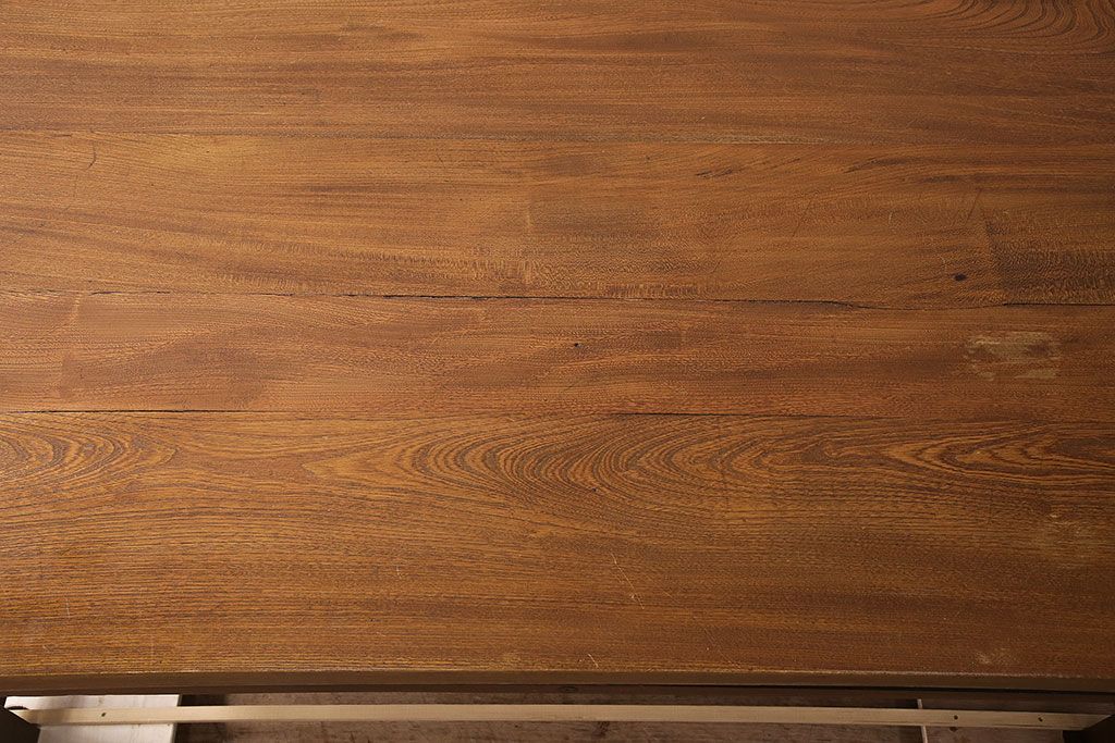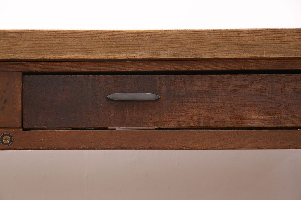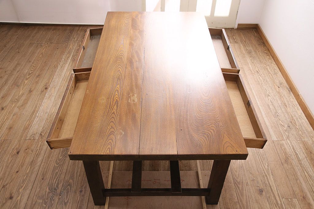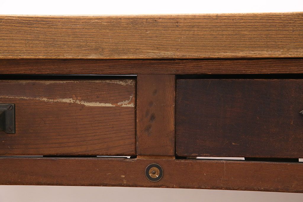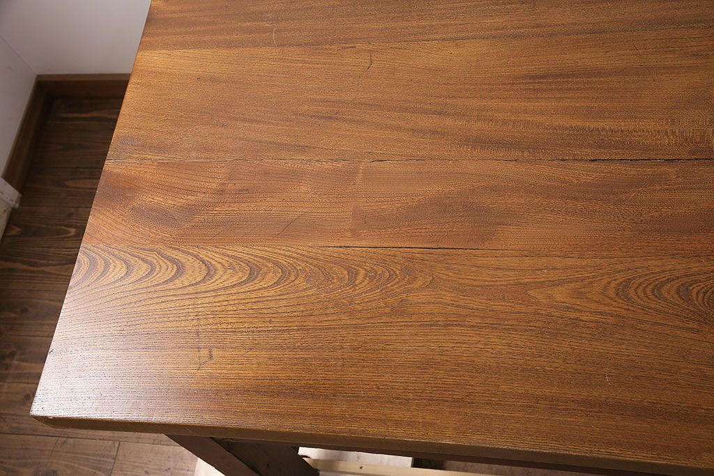 和製アンティーク 特大サイズ 総ケヤキ材 天板極厚!木の味わいが楽しめる引き出し付きの作業台(ダイニングテーブル)(R-048829)