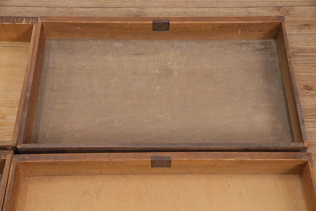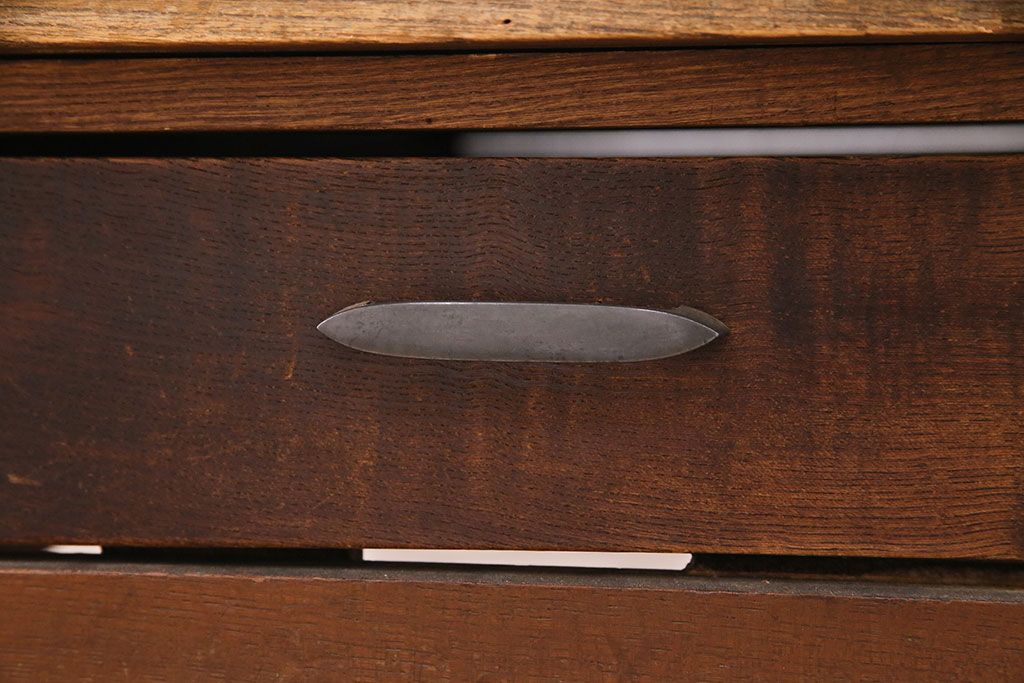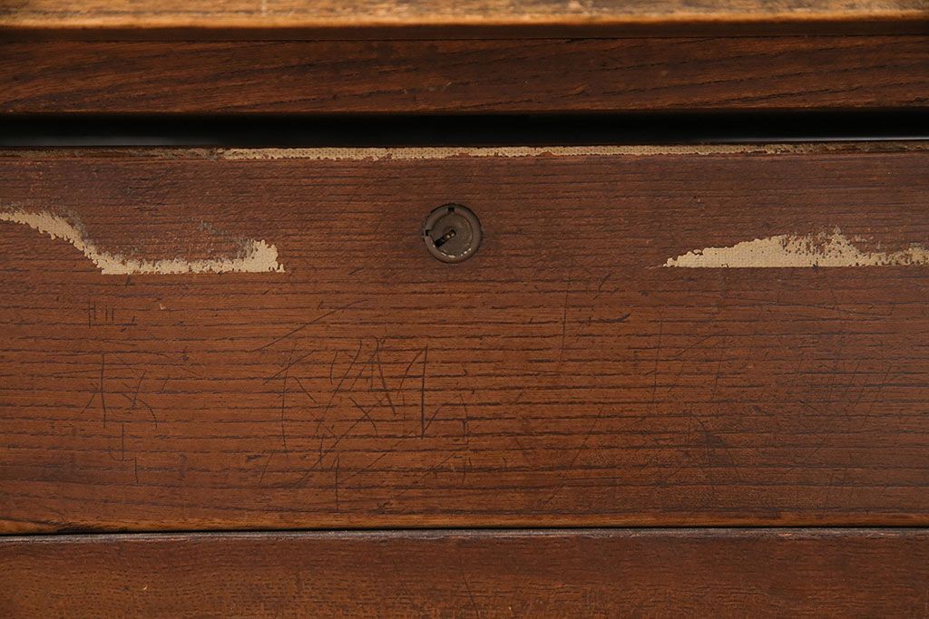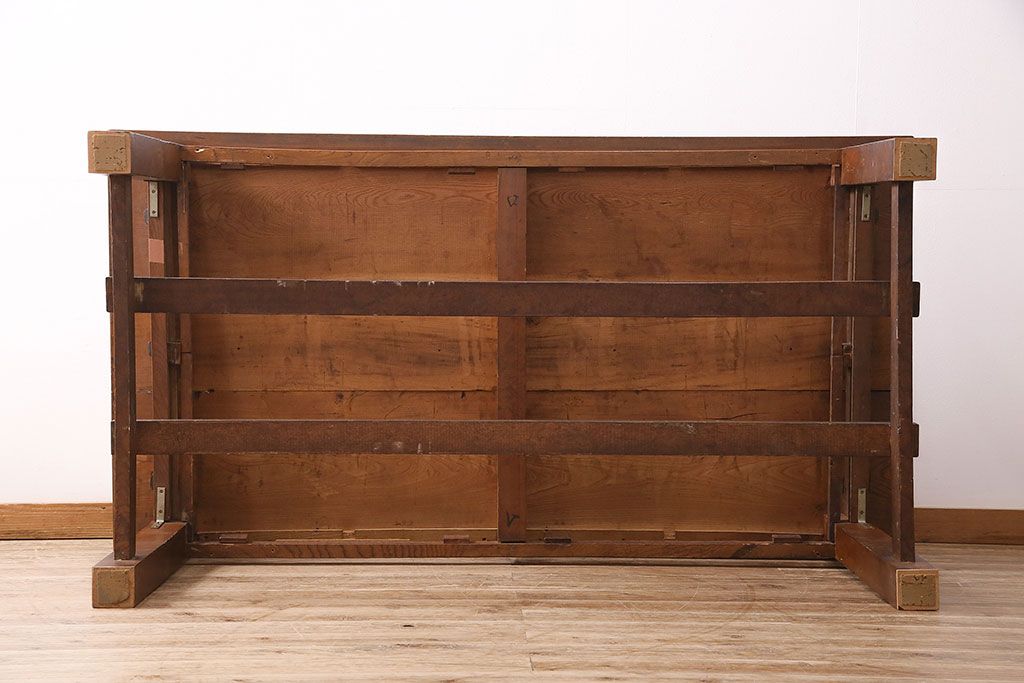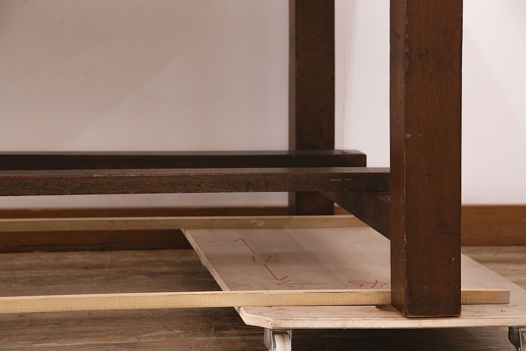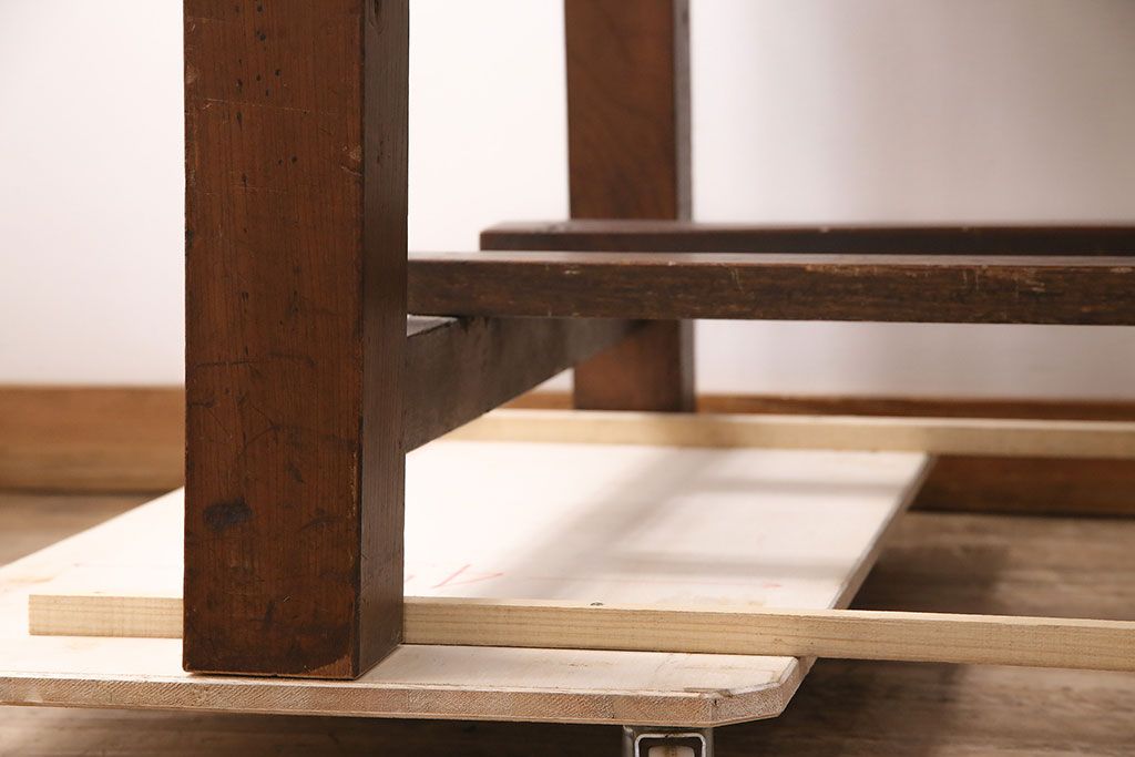 和製アンティーク 特大サイズ 総ケヤキ材 天板極厚!木の味わいが楽しめる引き出し付きの作業台(ダイニングテーブル)(R-048829)