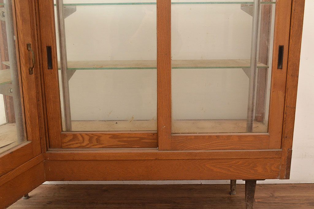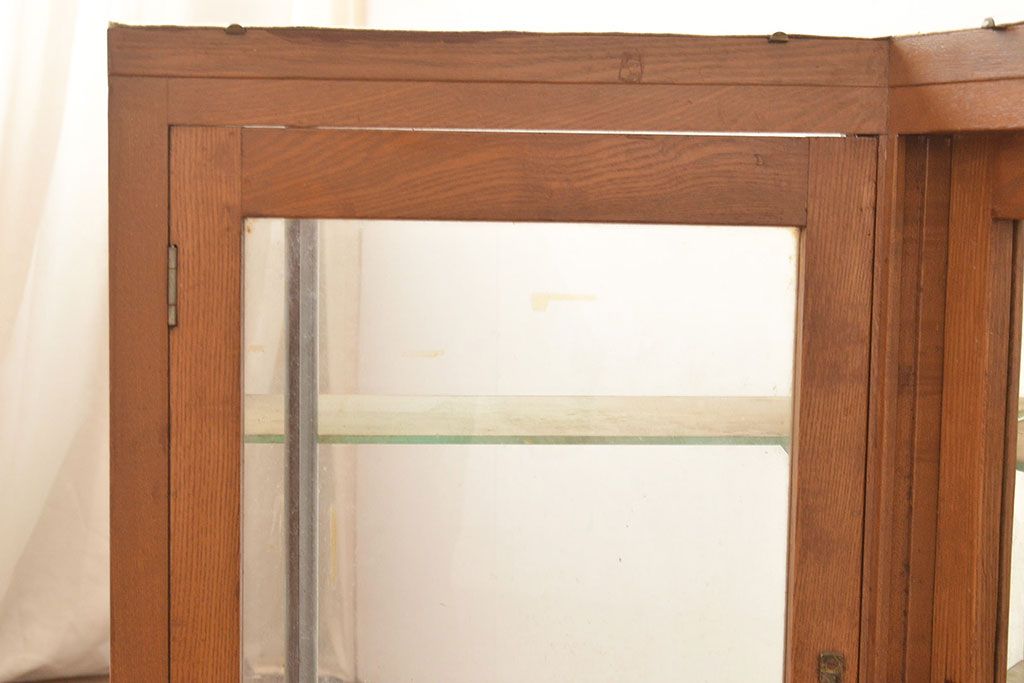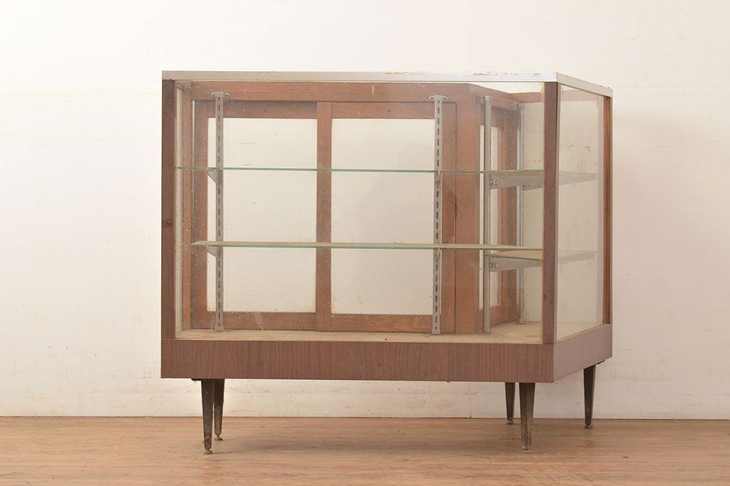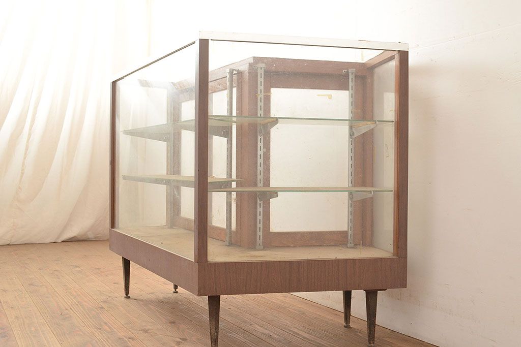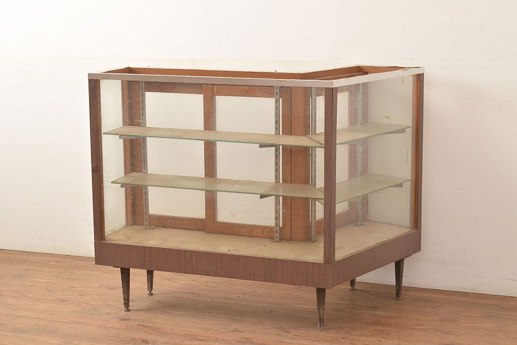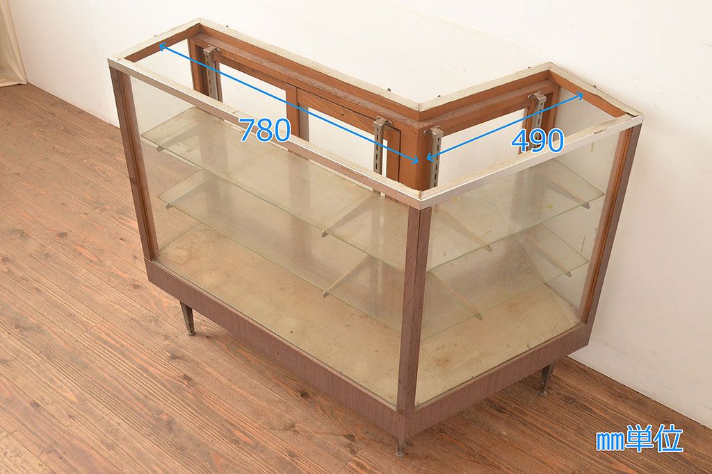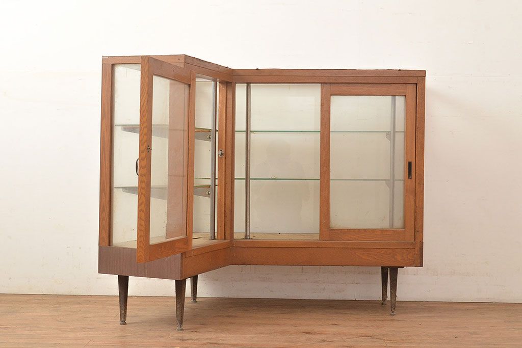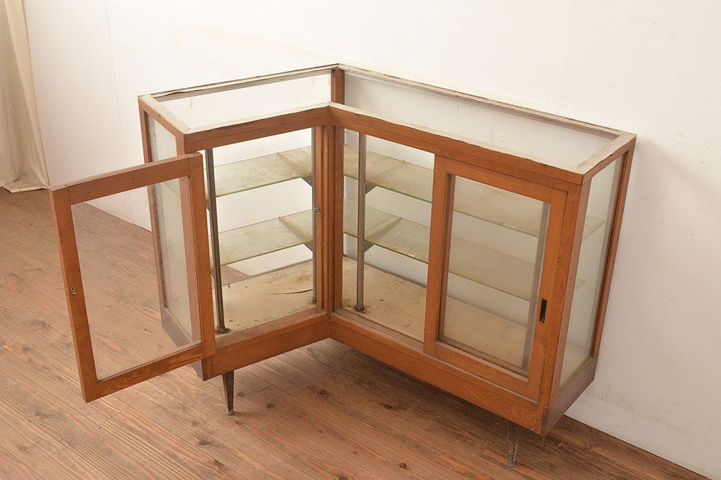 昭和レトロ 珍しいデザイン! 斜めL字型のガラスケース(ショーケース、陳列棚)(R-048736)