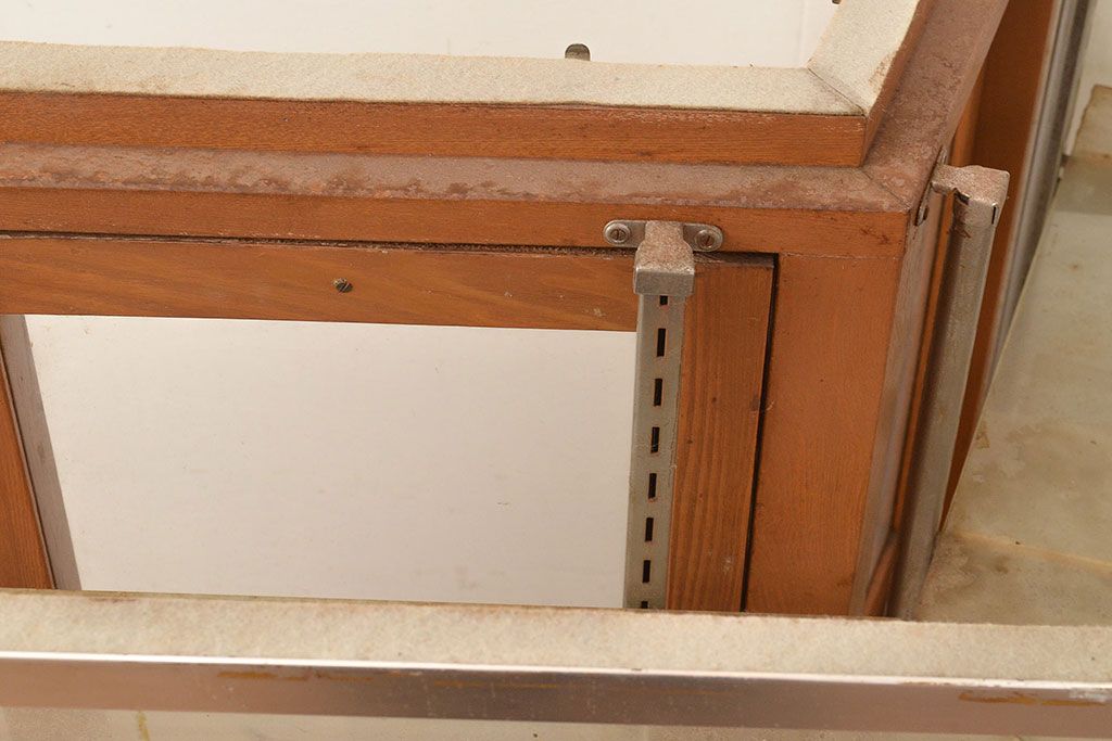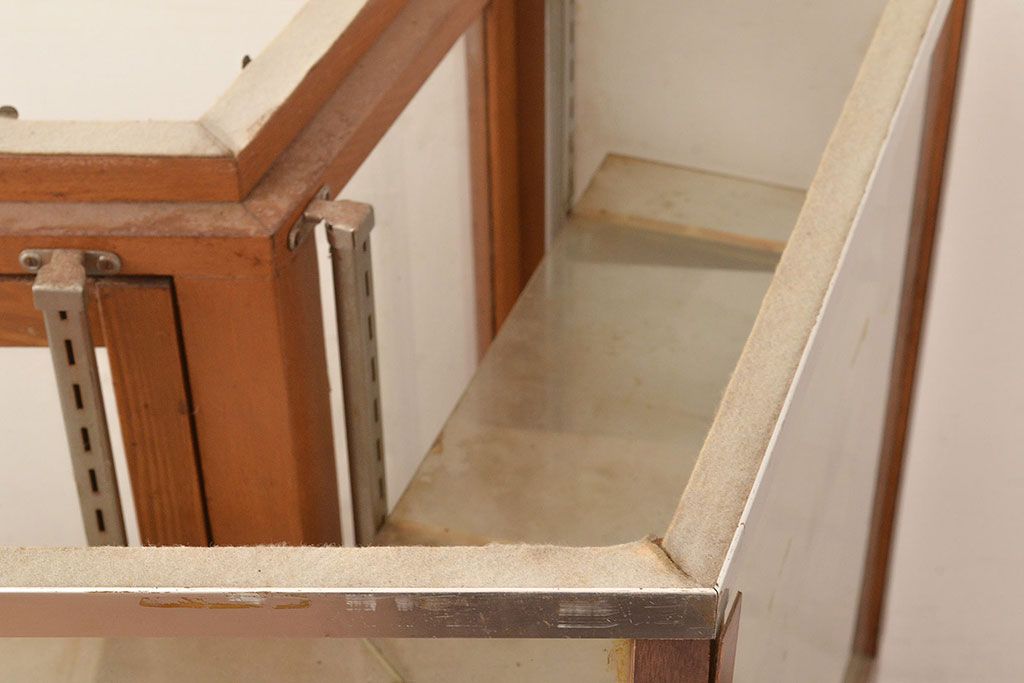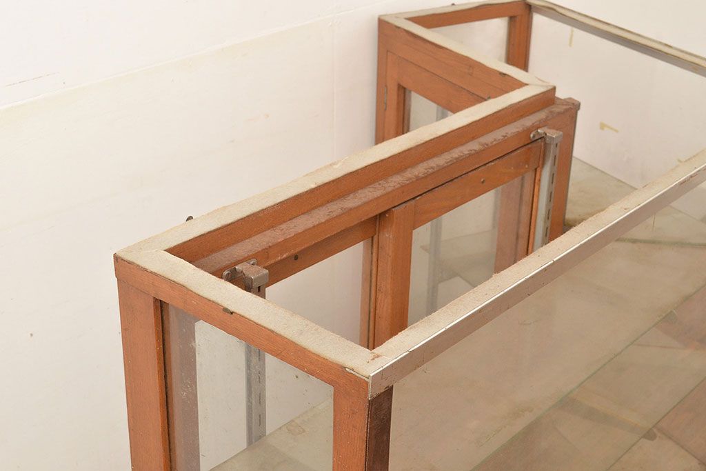 ラフジュ工房> 店舗什器 > 昭和レトロ 珍しいデザイン! 斜めL字型のガラスケース(ショーケース、陳列棚)(R-048736)
