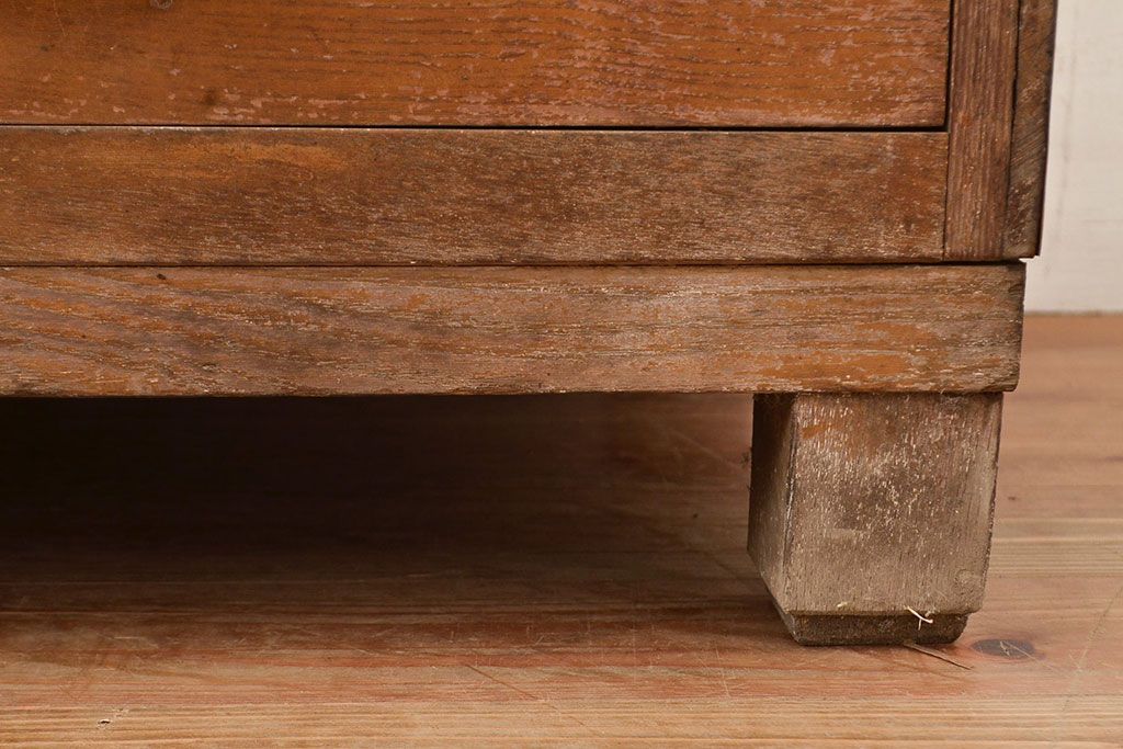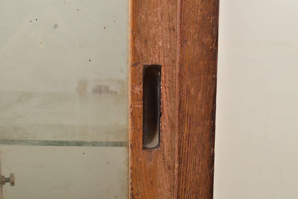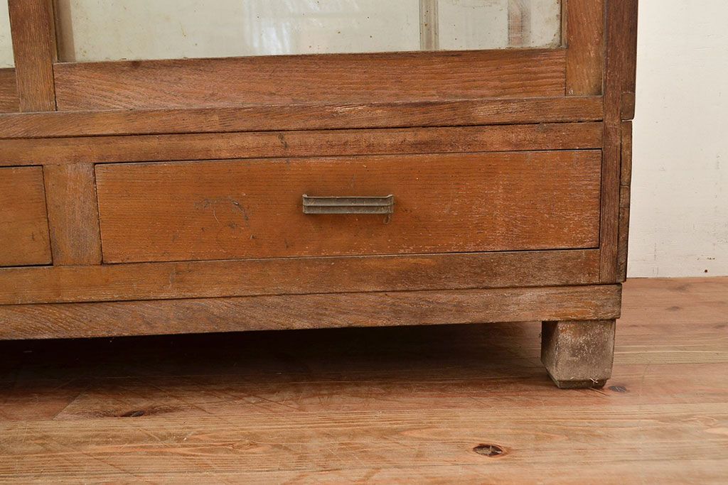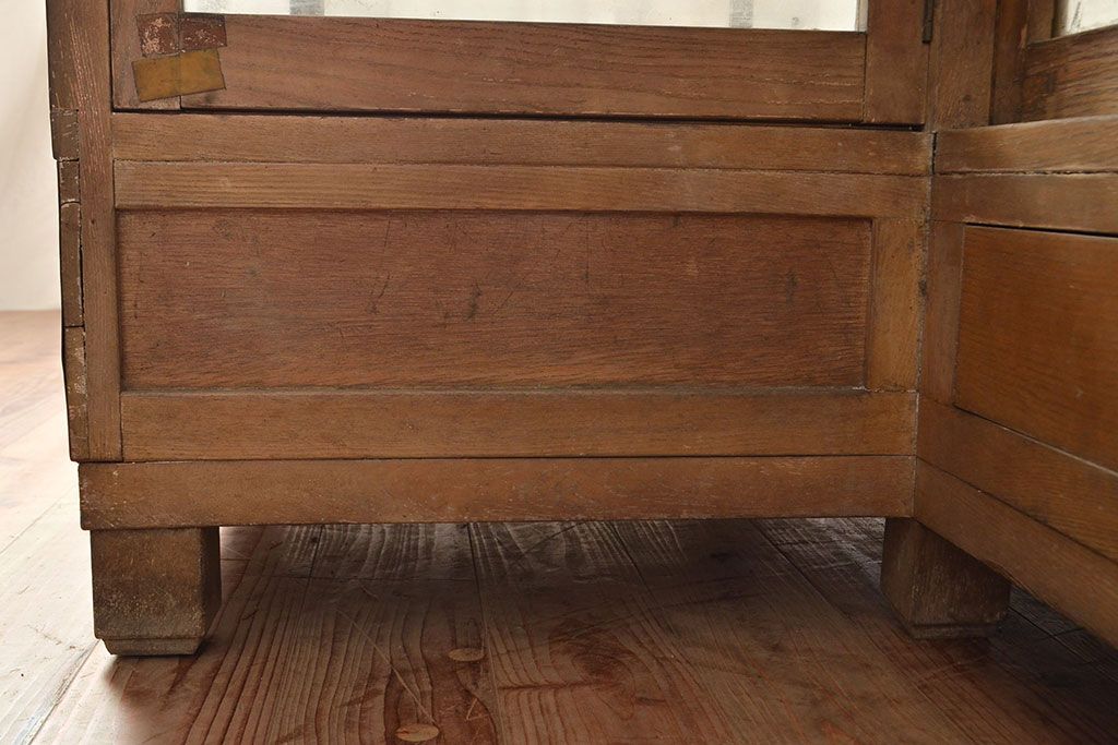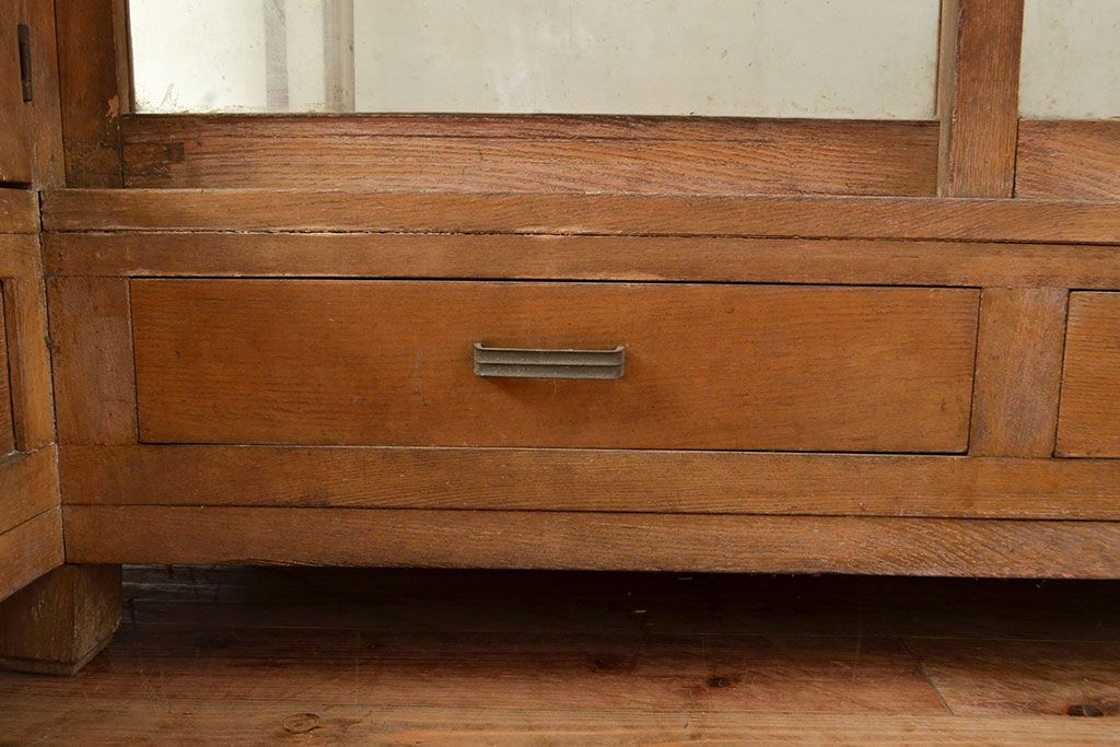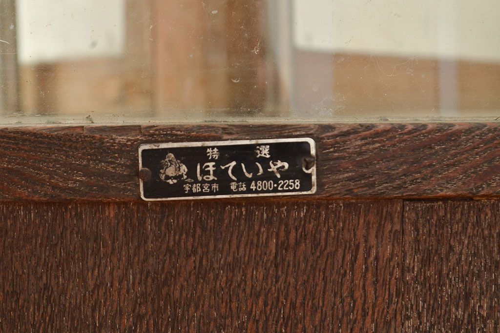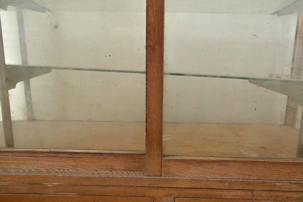 ラフジュ工房> 店舗什器 > 和製アンティーク 昭和中期 ナラ材製のR型ガラスケース(ショーケース、曲げガラス、L型ガラスケース、Rガラス、店舗什器、陳列棚)(R-049093)