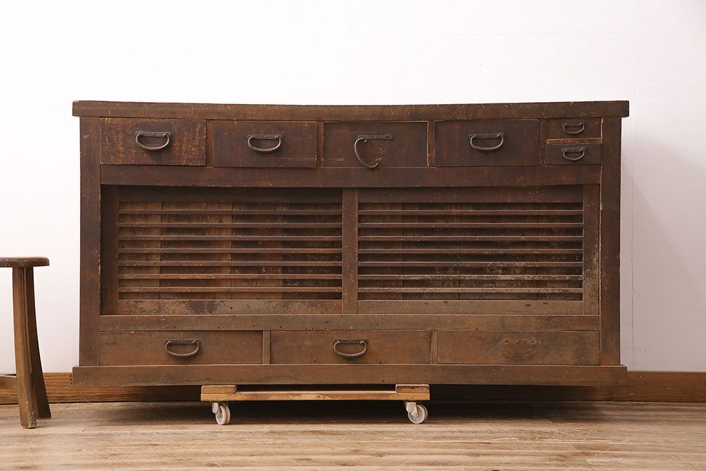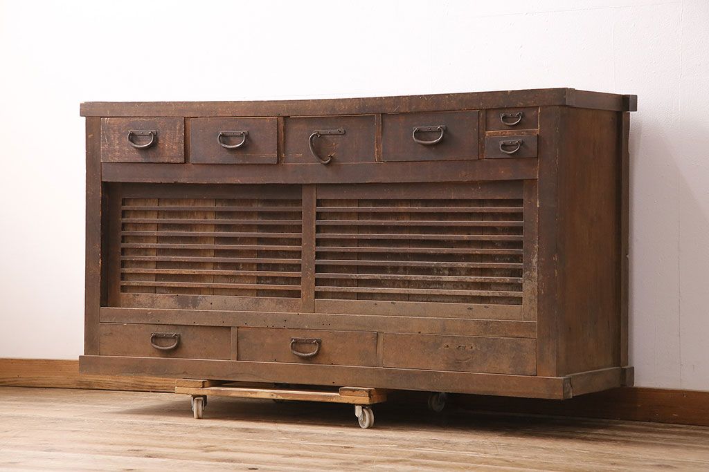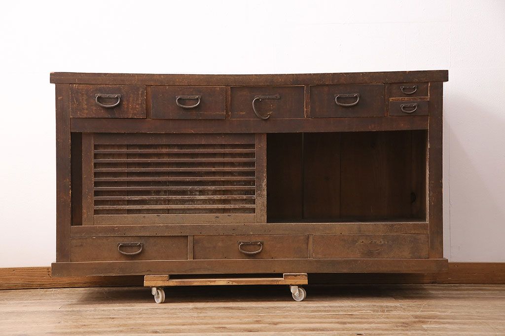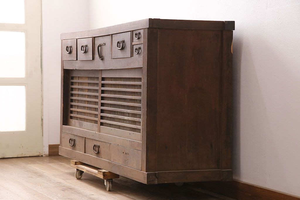 ラフジュ工房> キャビネット・戸棚> テレビ台・ローボード > 和製アンティーク 飛騨(岐阜)産 ヒノキ材 明治・大正期の重ね戸棚・下段(サイドボード、収納棚)(R-048627)