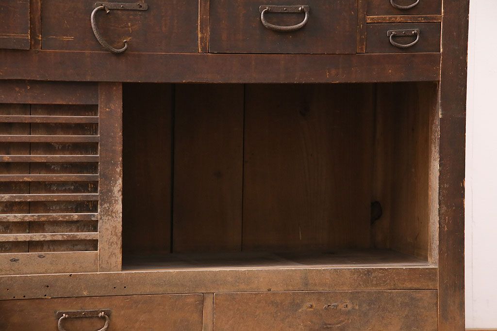 ラフジュ工房> キャビネット・戸棚> サイドボード > 和製アンティーク 飛騨(岐阜)産 ヒノキ材 明治・大正期の重ね戸棚・下段(サイドボード、収納棚)(R-048627)
